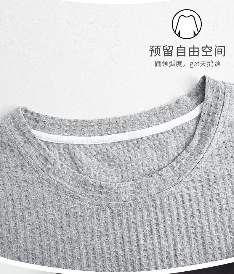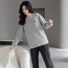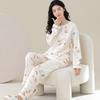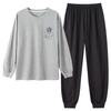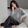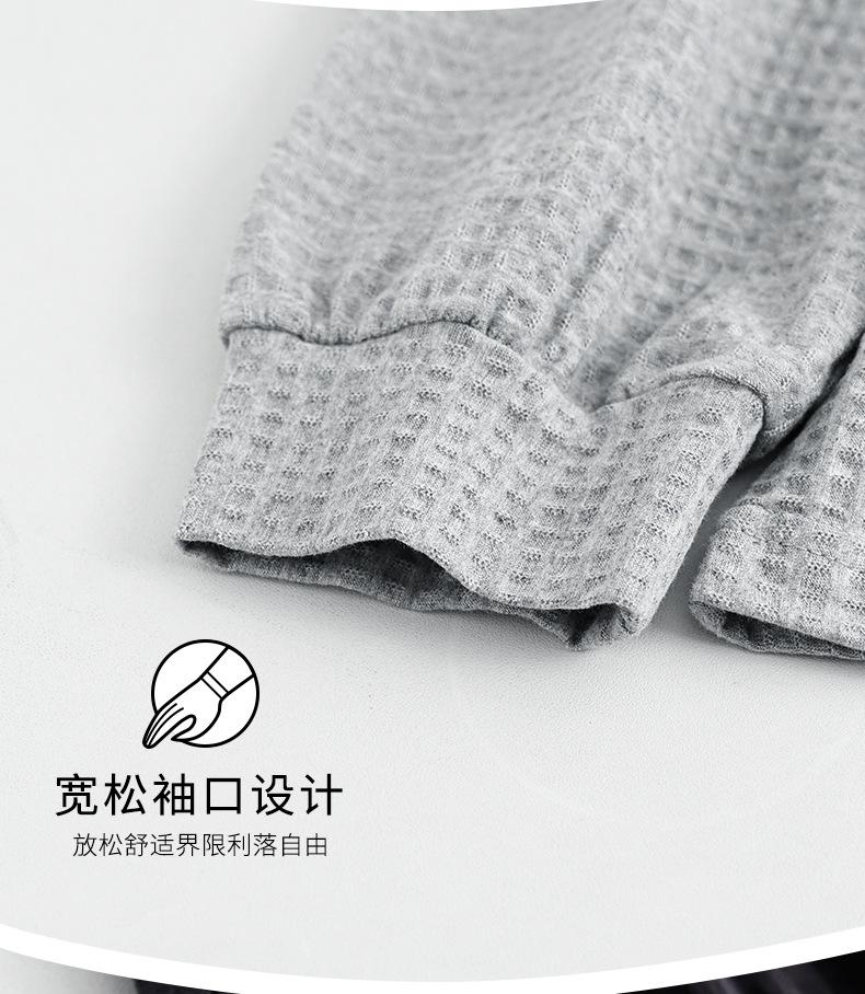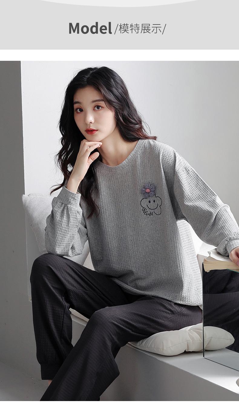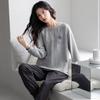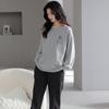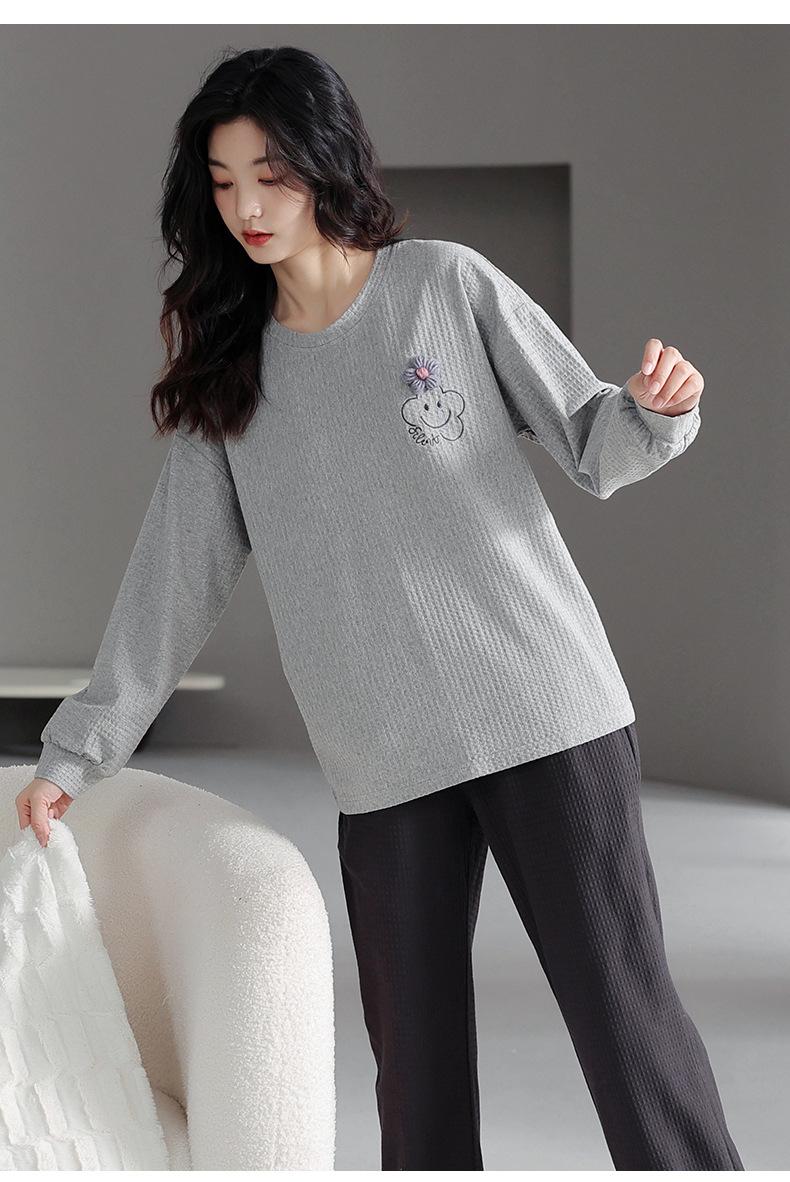 Pijama de manga larga para mujer de algodón, pantalones gofrados pull-up, jersey de cuello redondo, casual holgado de manga larga para mujer para estar en casa