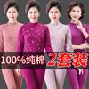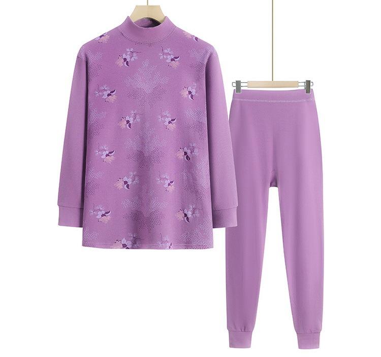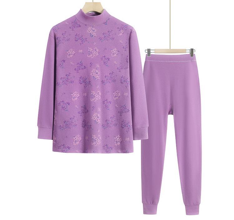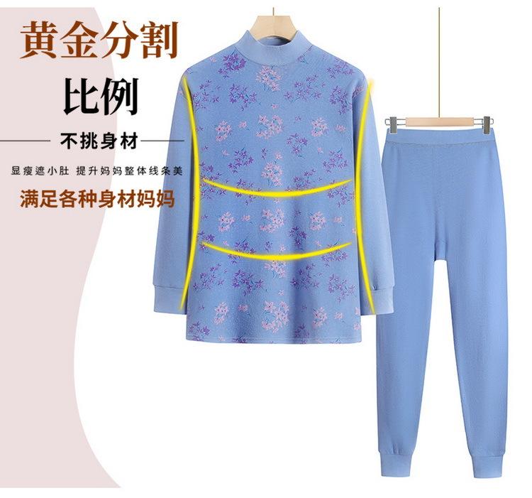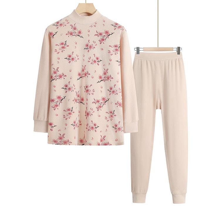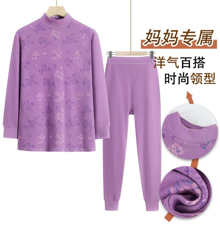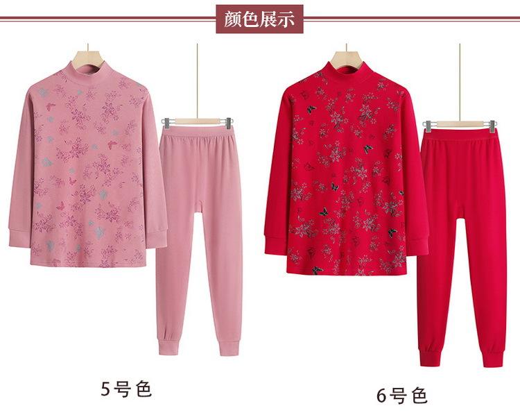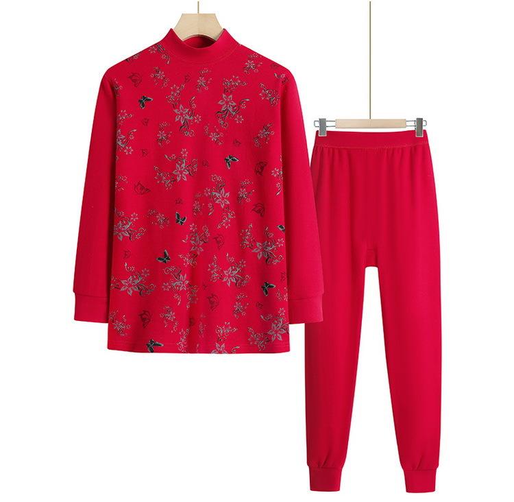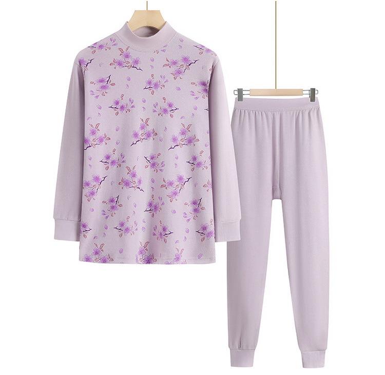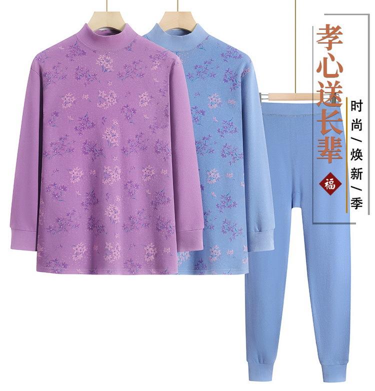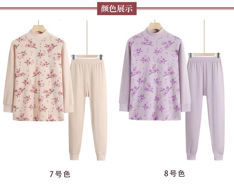Traje de ropa interior de algodón para madre, ropa de otoño de cuello alto para mujer, pantalones largos, ropa interior térmica para mediana edad y ancianos, suéter de algodón de cuello bajo