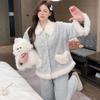 Pijamas de mujer de otoño e invierno de manga larga de franela gruesa de forro polar coral, traje de estilo coreano, ropa de casa dulce y linda de princesa con forro polar