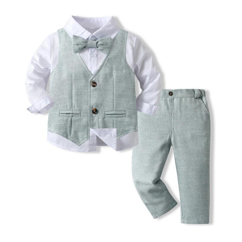 Traje de niño de comercio exterior, chaleco de traje pequeño, camisa de manga larga con lazo para niños de primavera, traje de tres piezas para niños coreanos