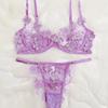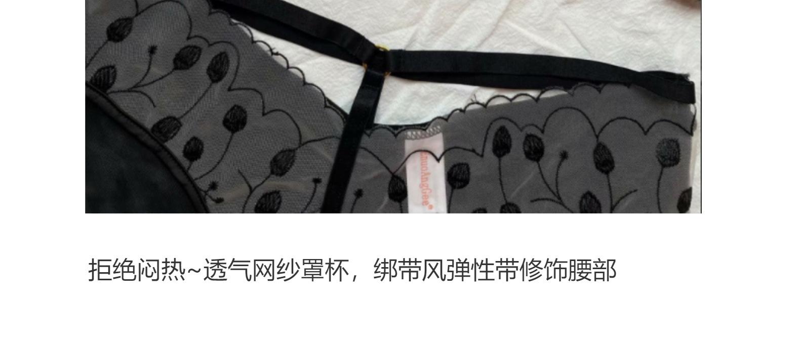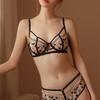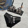 Lencería Sexy Francesa, Bordado Contrastante Ultradelgado, Sujetador de Encaje Transparente, Pechos Grandes, Conjunto de Sujetador Talla Pequeña y Grande