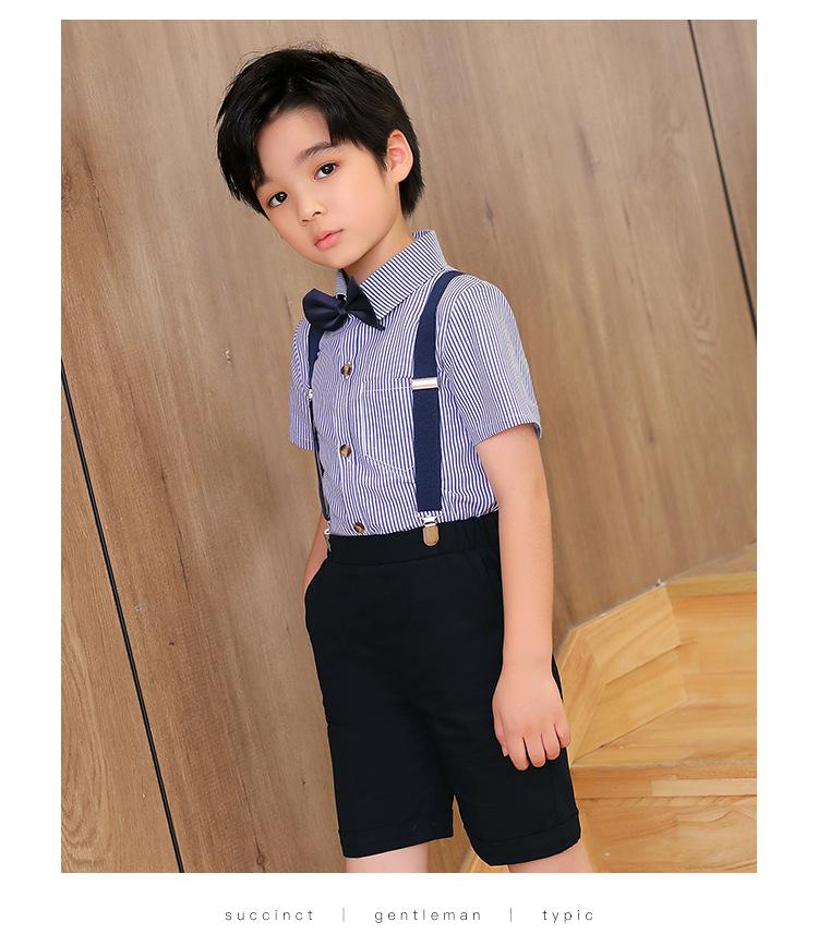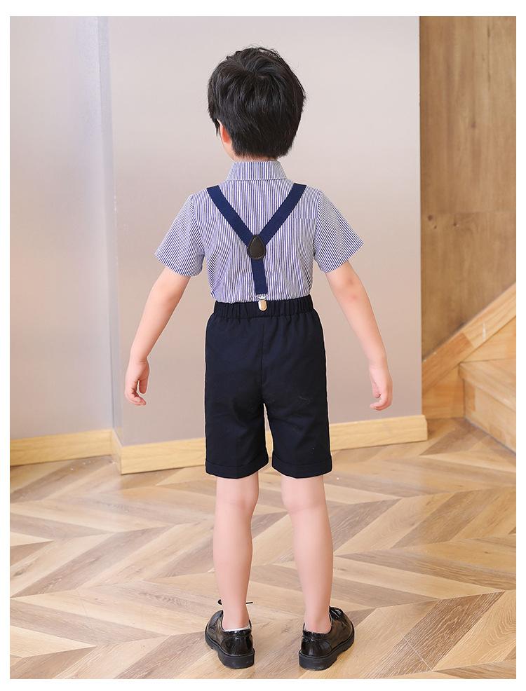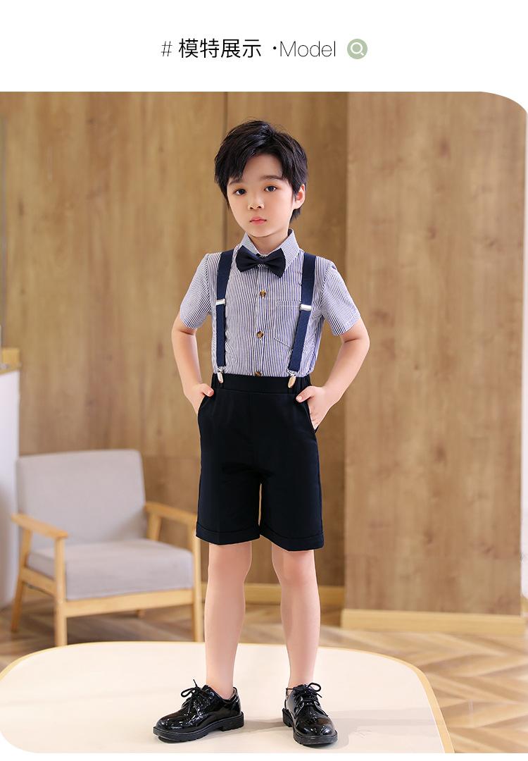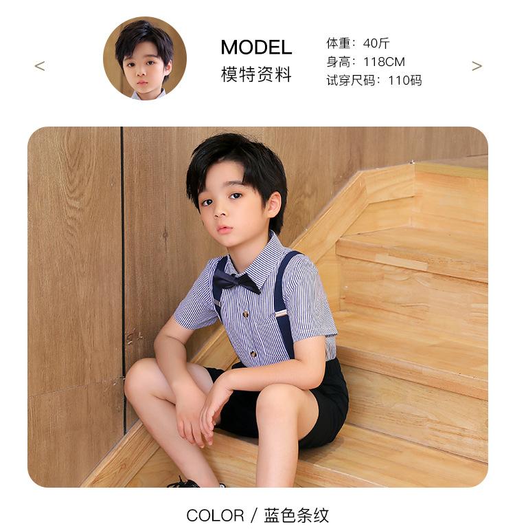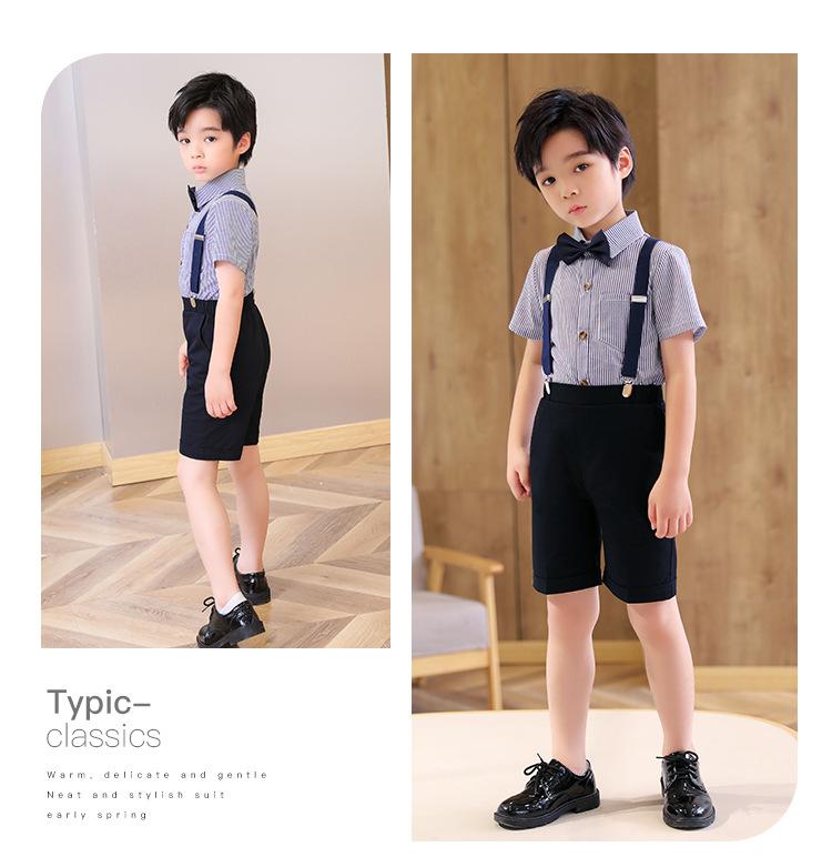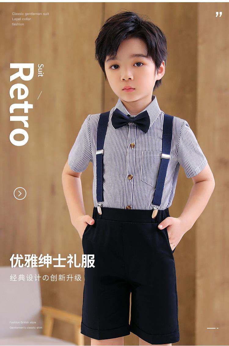Vestido infantil de verano, nuevo, británico, a rayas, con tirantes, camisa de manga corta, traje de presentador coral.