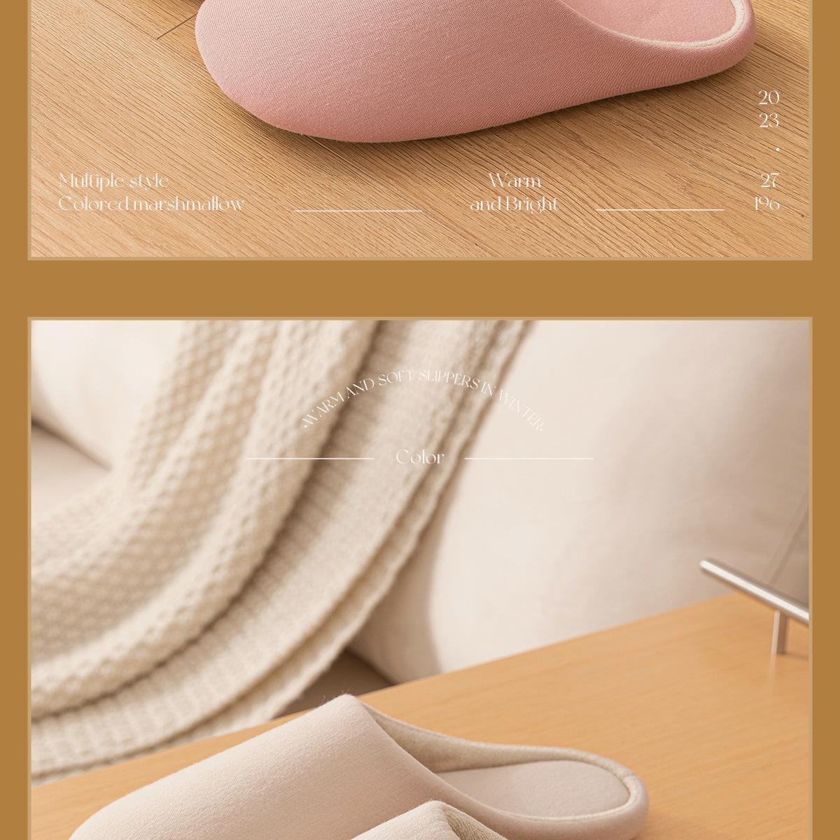 Nuevas zapatillas de algodón sencillas de suela gruesa, otoño e invierno, antideslizantes, cálidas y antideslizantes, zapatillas de algodón para parejas, zapatillas de lana para interiores de casa para mujer