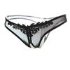 Tanga sexy de encaje con lazo y perlas para mujer, perspectiva tentadora, N15