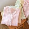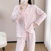 Pijama de Pantalón Corto de Manga Corta para Mujer Primavera y Verano Gasa Doble Ropa para el Hogar Estilo Coreano Talla Grande Solapa Crepé Algodón Pijama