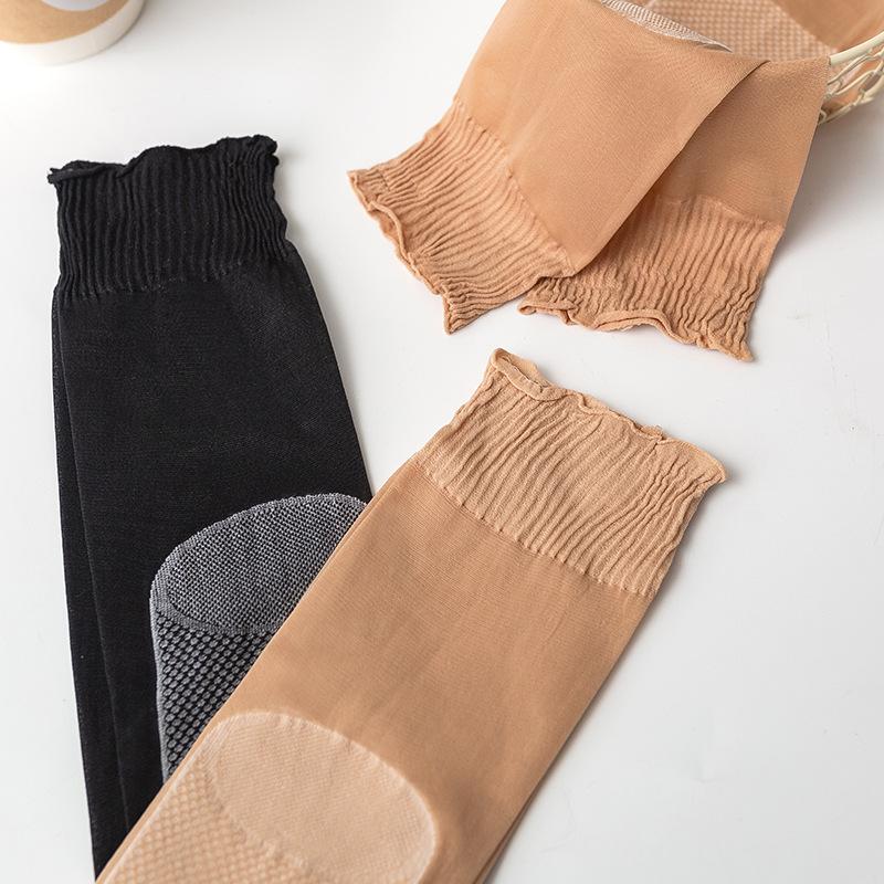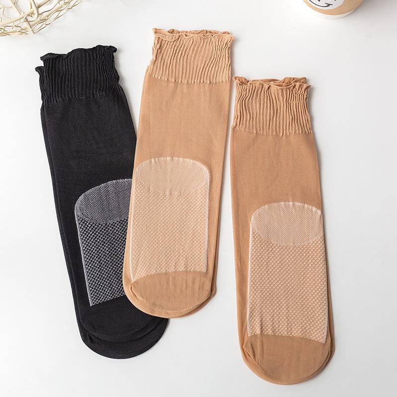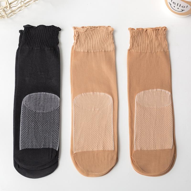 Medias Cortas de Seda para Primavera y Verano para Mujer de Terciopelo Finas con Borde de Oreja y Fondo de Masaje Medias Cortas de Seda Calcetines Invisibles Antideslizantes