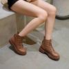 Botas Martin de Tacón Bajo, Estilo Británico de Caña Alta, Zapatos de Cuero de Caña Media, Botas de Mujer, Zapatos de Invierno de Suela Gruesa, Estilo Retro Vintage