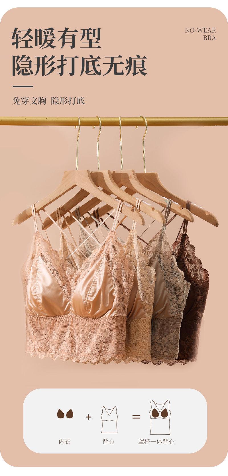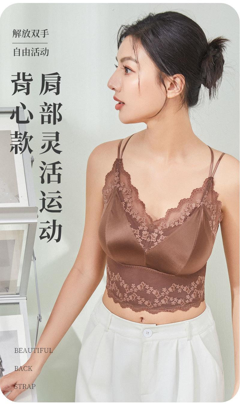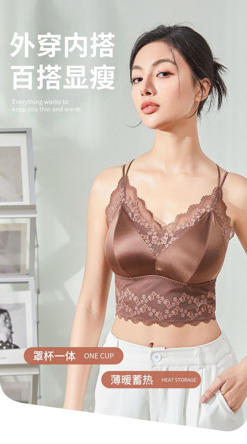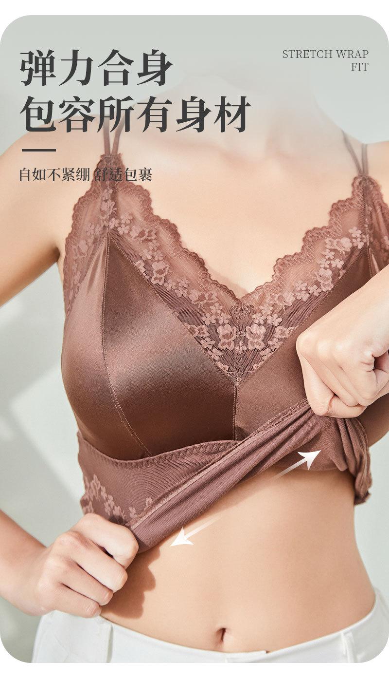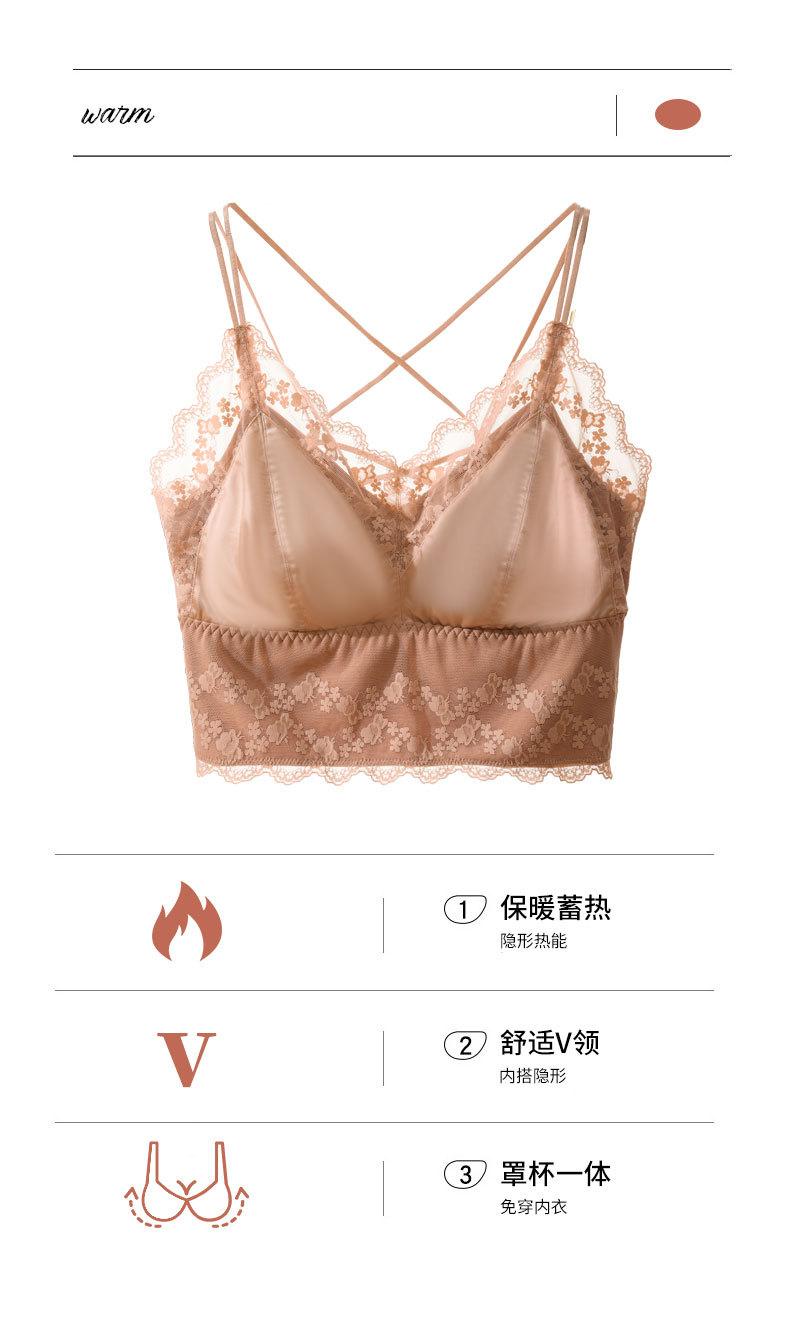 Nueva ropa interior de encaje de otoño e invierno con cuello en V, chaleco térmico sexy para mujer, cabestrillo forrado de vellón grueso con almohadilla para el pecho, limpieza de espalda de belleza