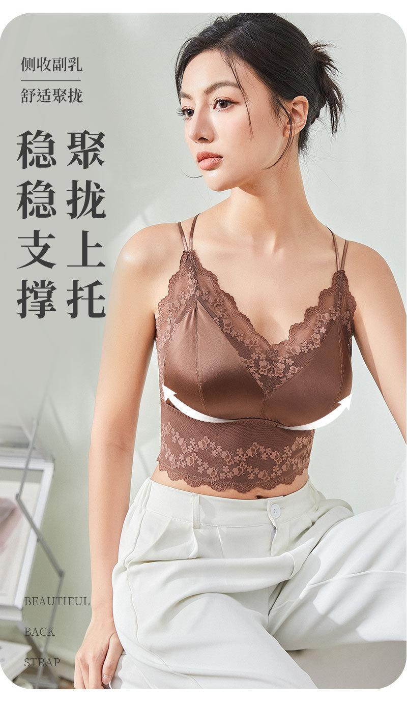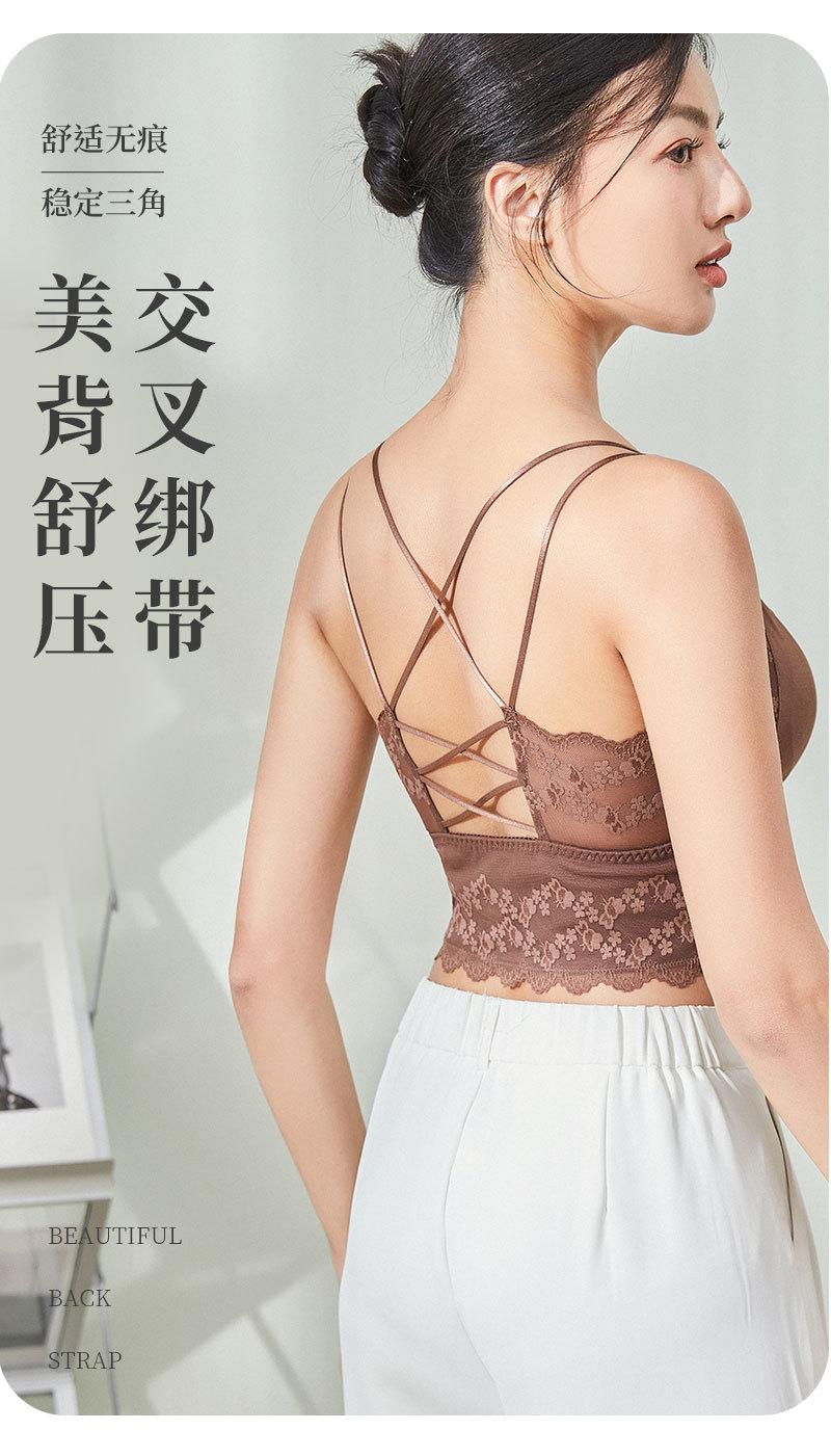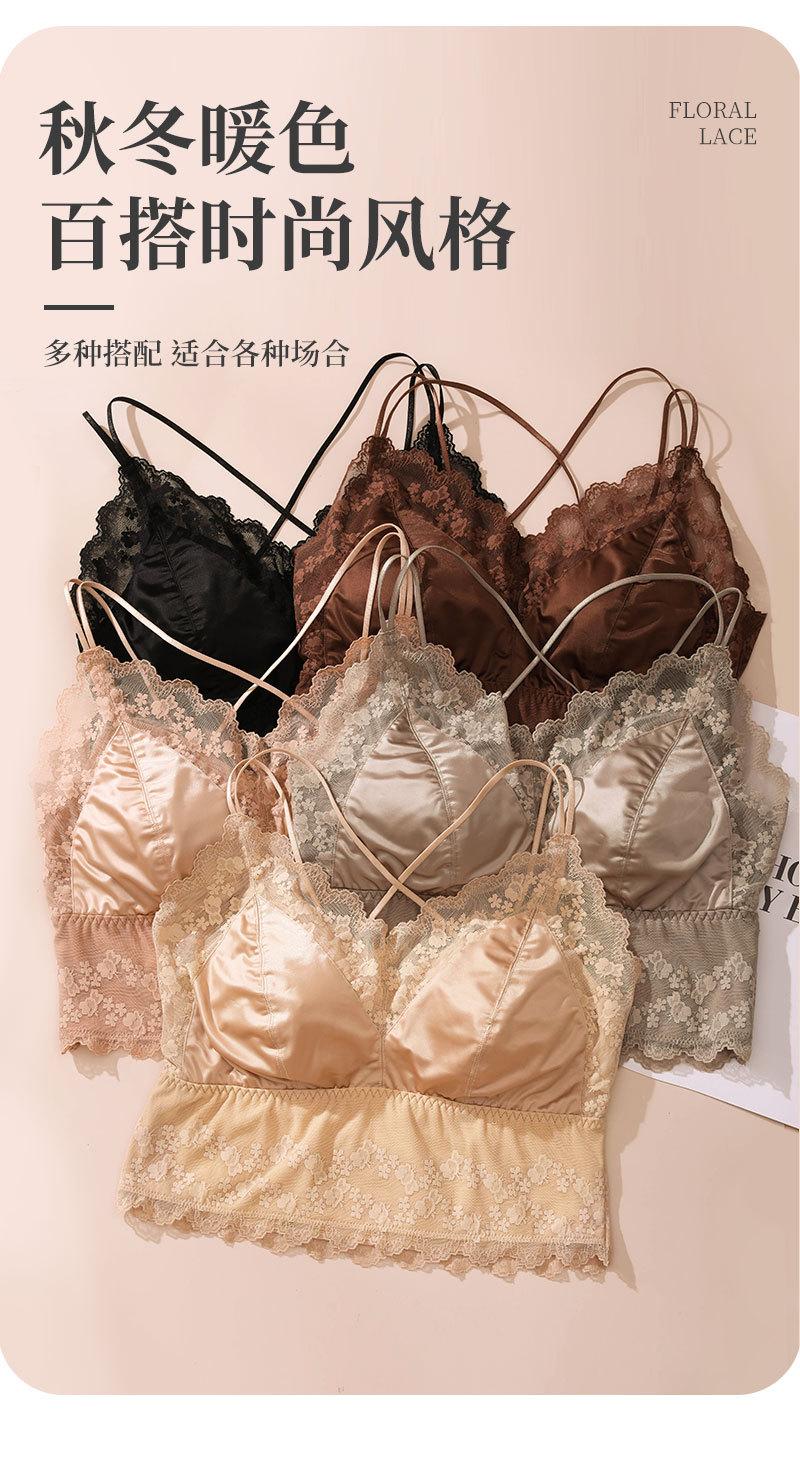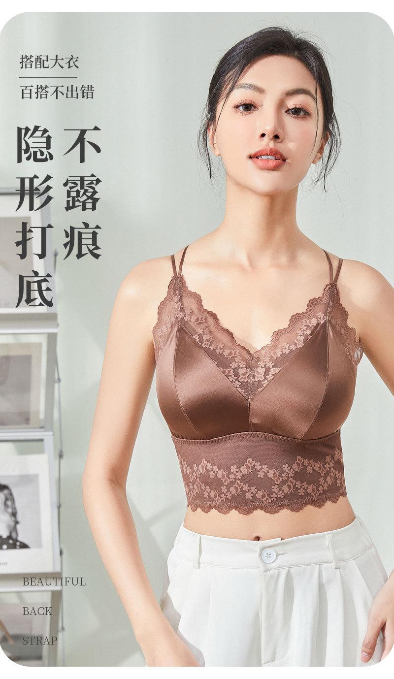 Nueva ropa interior de encaje de otoño e invierno con cuello en V, chaleco térmico sexy para mujer, cabestrillo forrado de vellón grueso con almohadilla para el pecho, limpieza de espalda de belleza