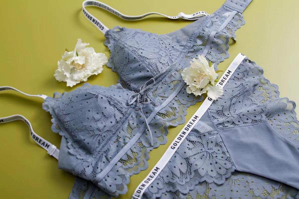 Ropa Interior Francesa Transfronteriza, Copa Triangular Delgada, Sujetador Sin Varillas, Busto Grande, Conjunto de Ropa Interior Sexy de Encaje, Sujetador