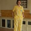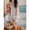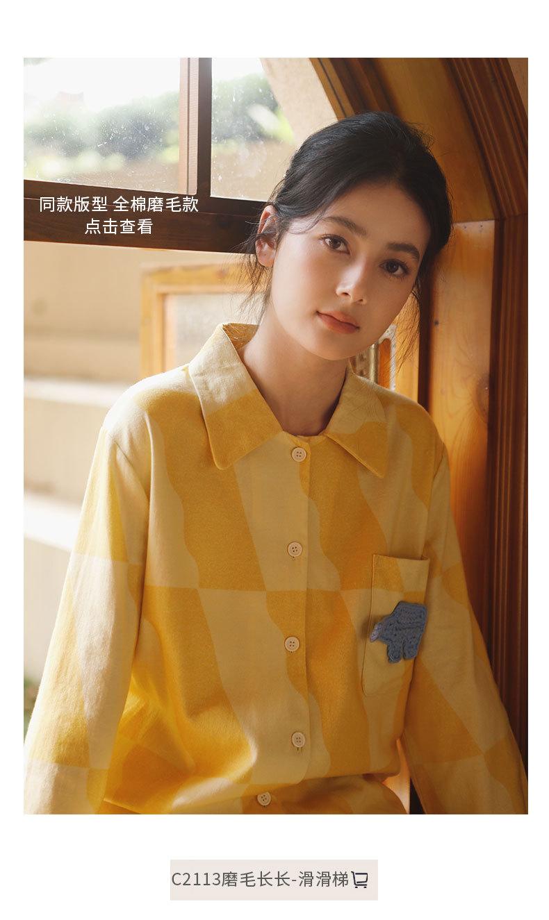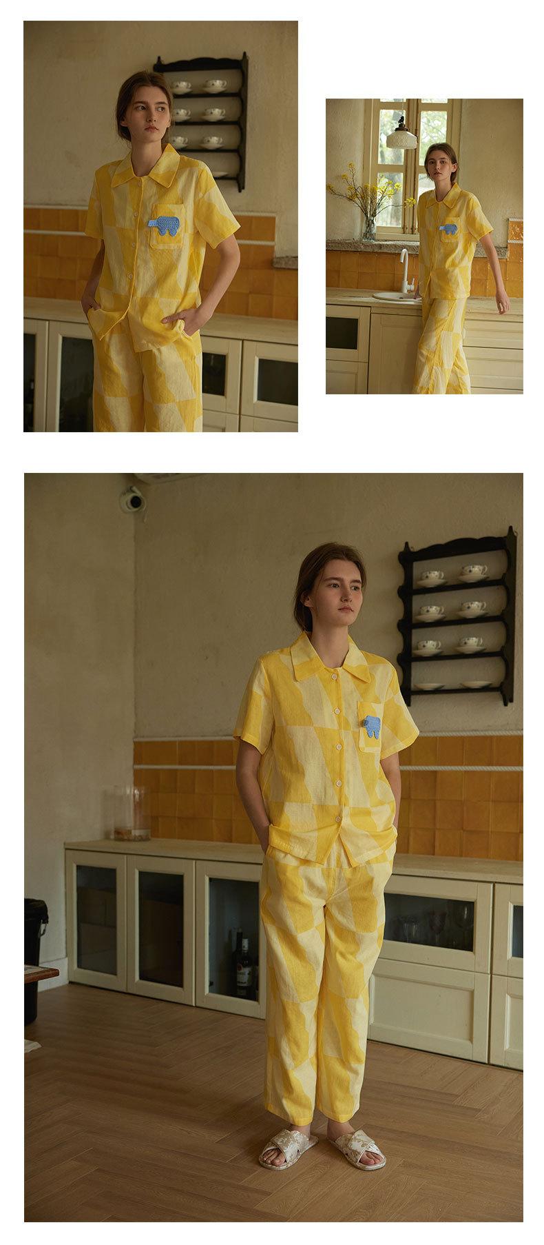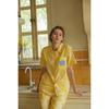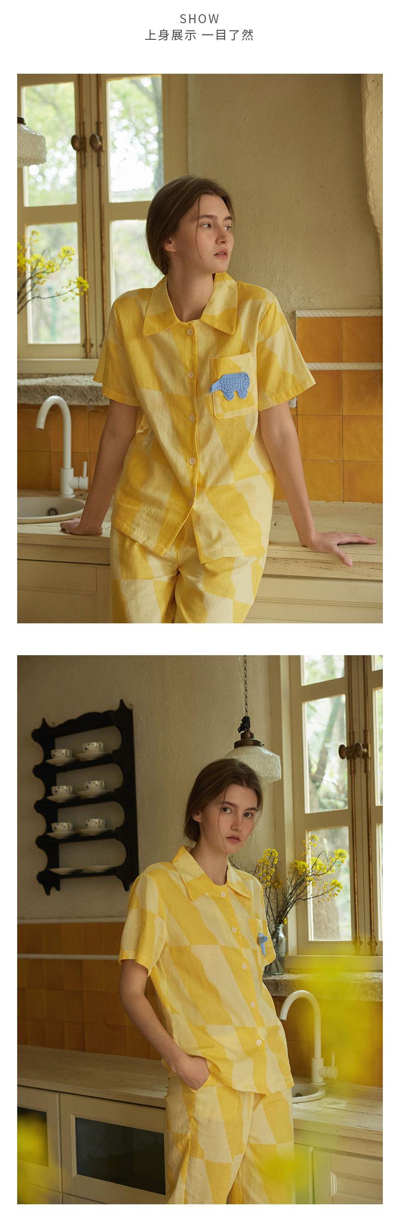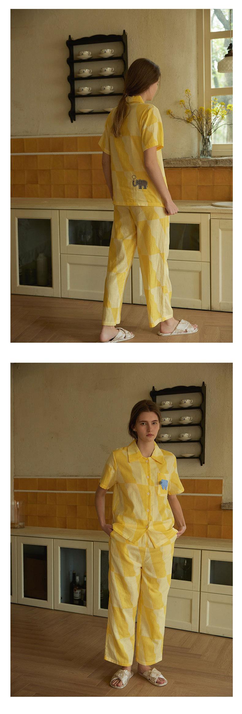 Nuevo Algodón Gasa Doble Capa Solapa Elefante de Dibujos Animados Bolsillo Espalda Bordado Manga Larga Conjunto de Pijama para Casa