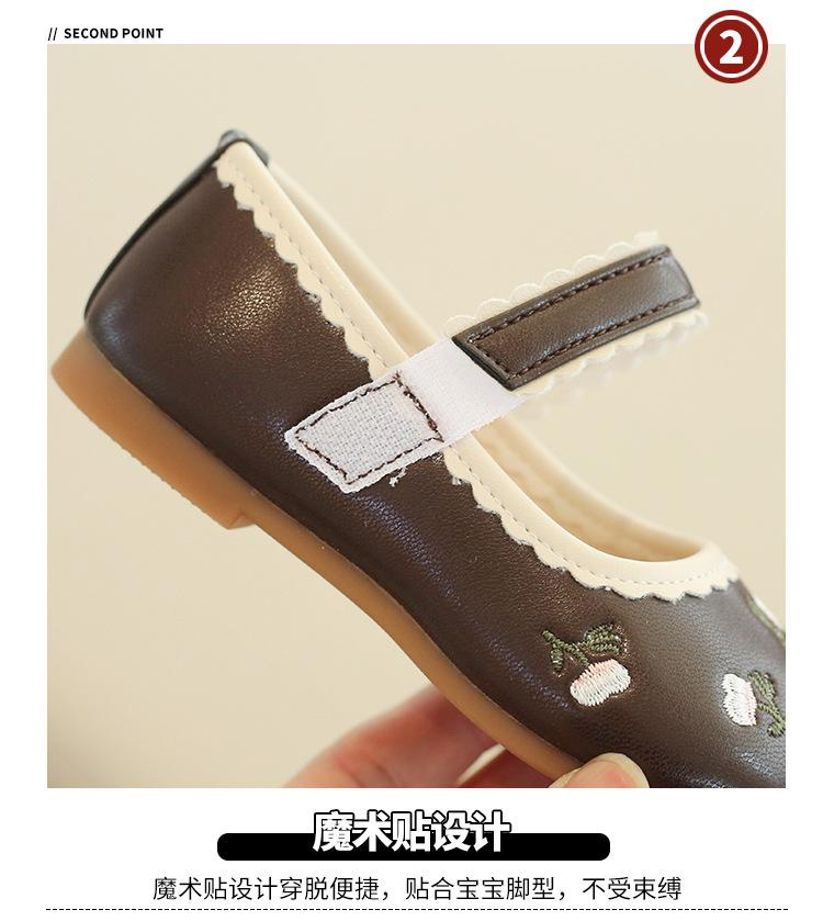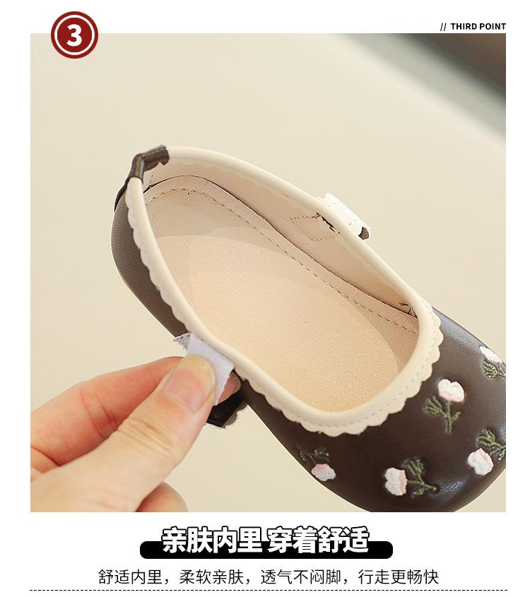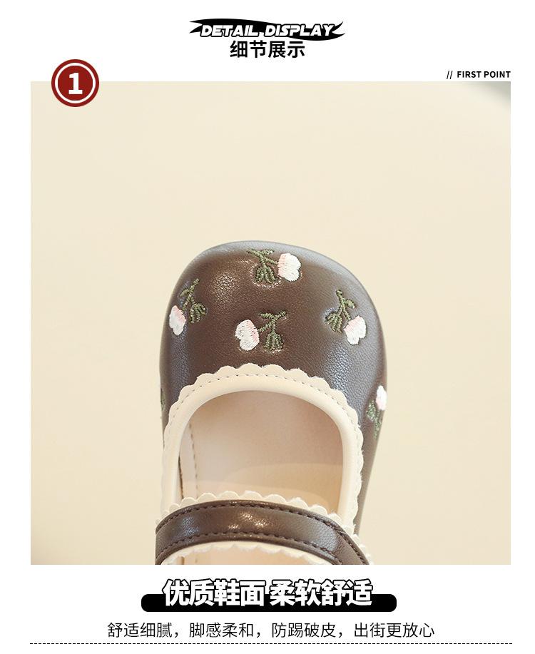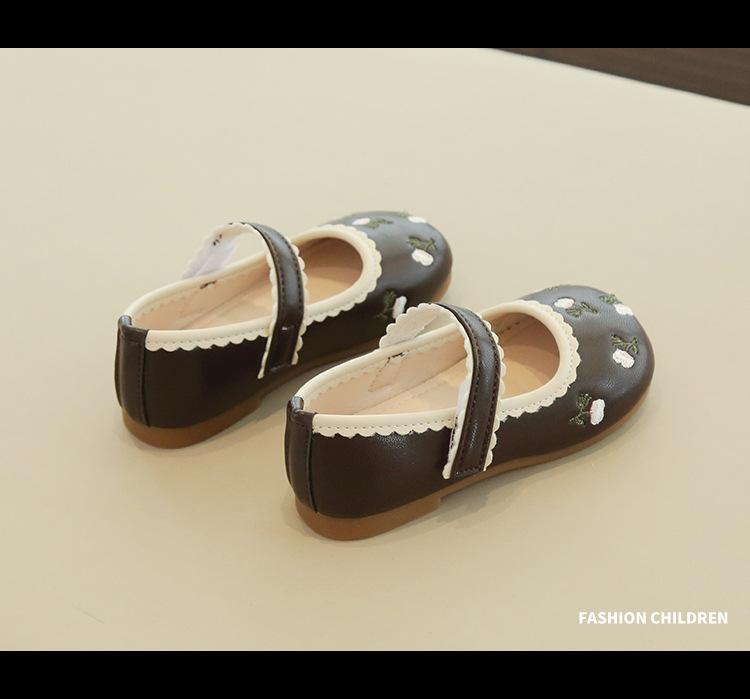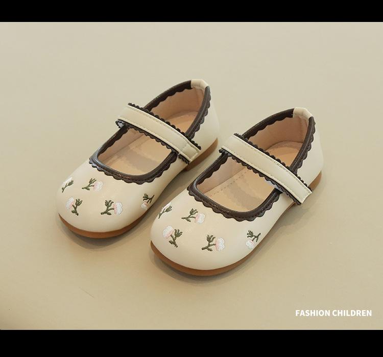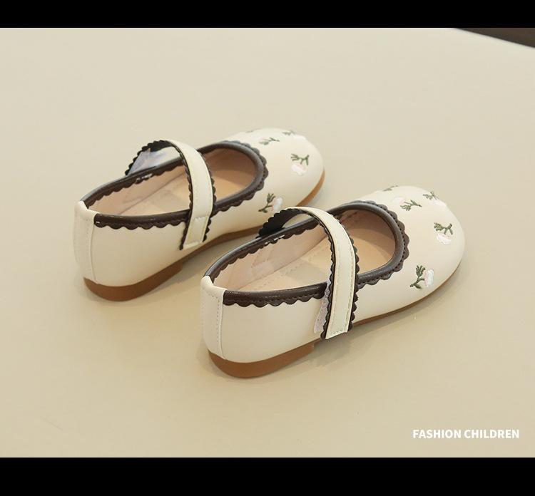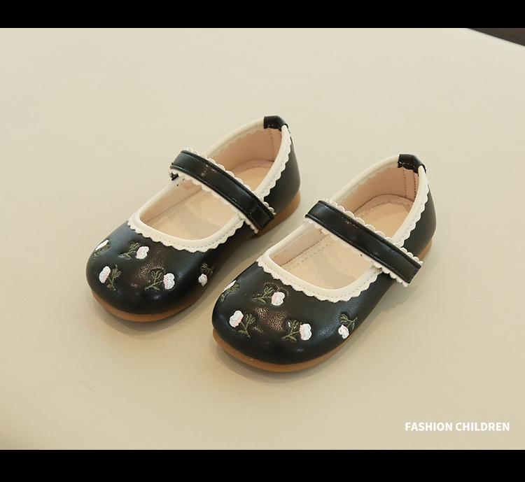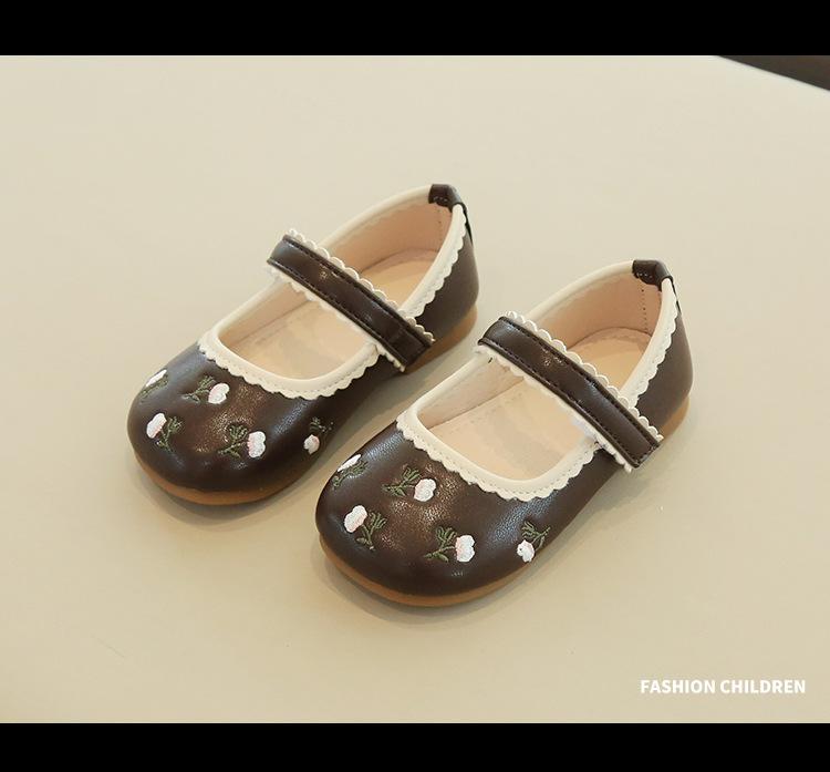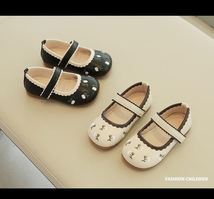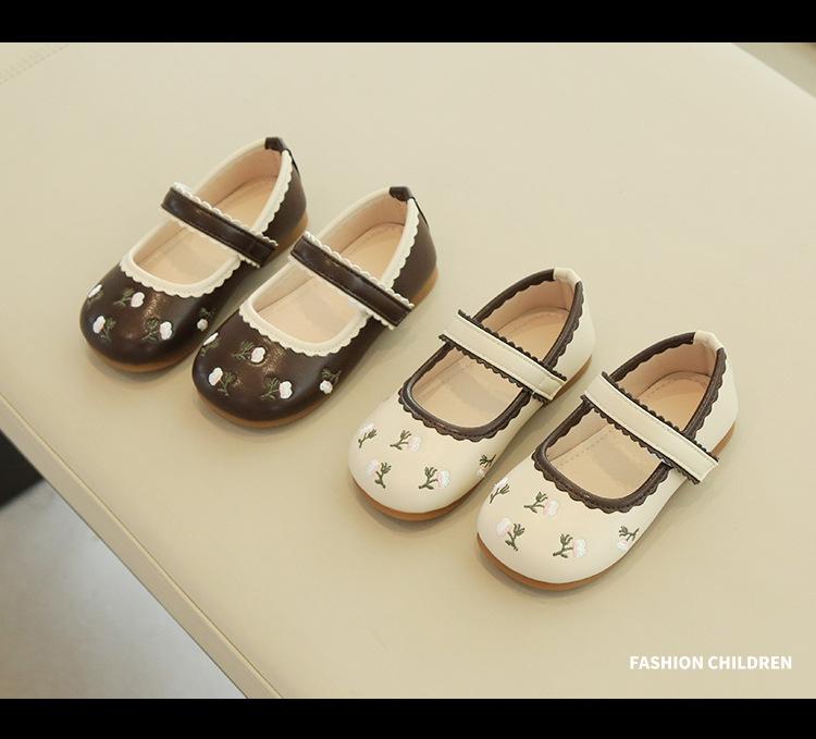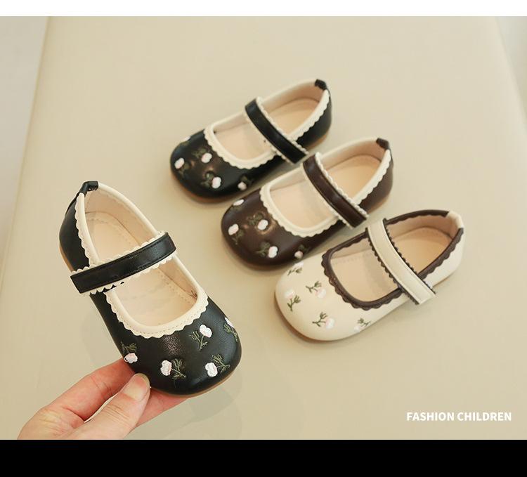 Zapatos de Cuero para Niños 2024 Otoño Nuevos Zapatos para Niñas Flores Bordadas Zapatos de Princesa para Bebé Niña Moda Diaria Transfronterizo