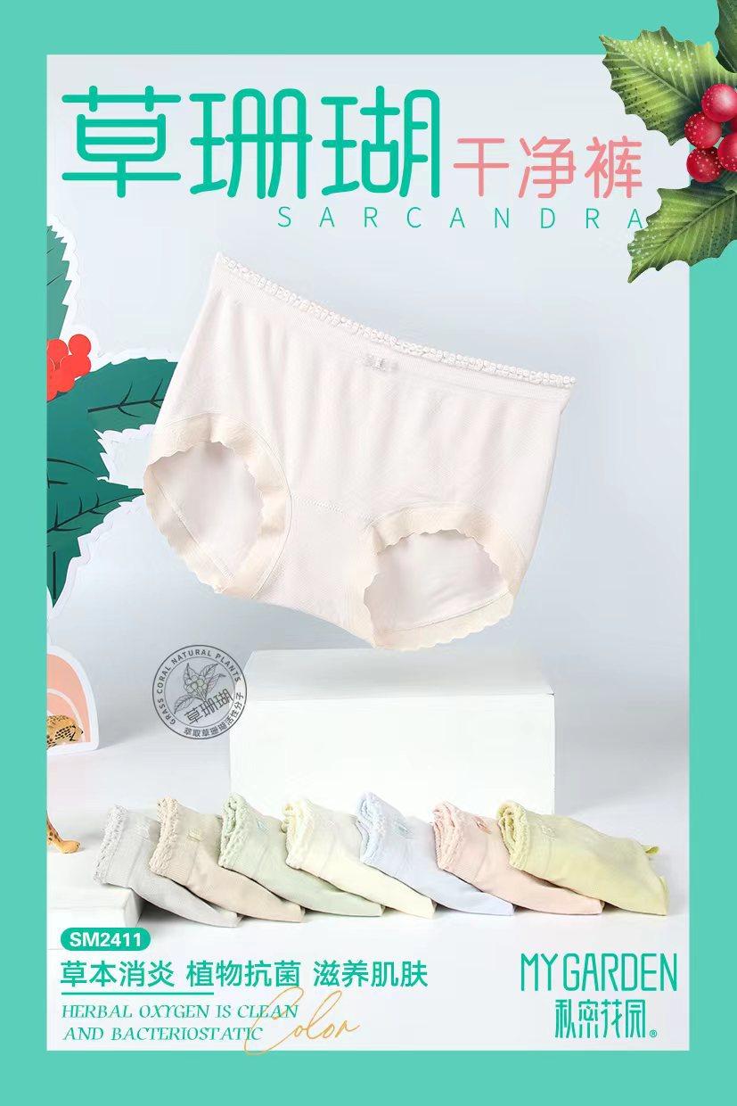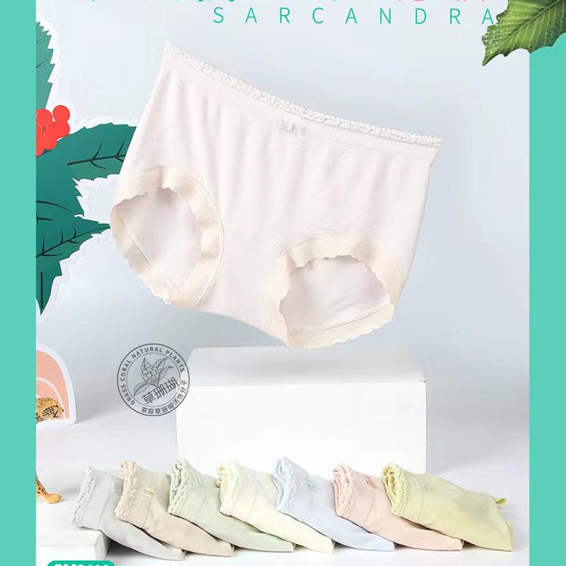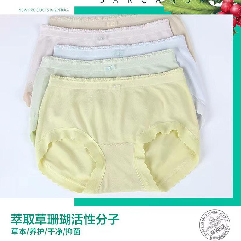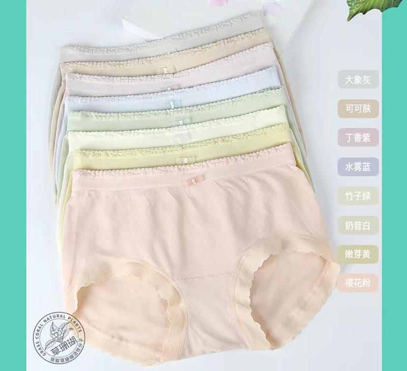 Ropa interior femenina de cintura media con encaje jacquard modal coral hierba, sin costuras, súper elástica, cómoda y antibacteriana.