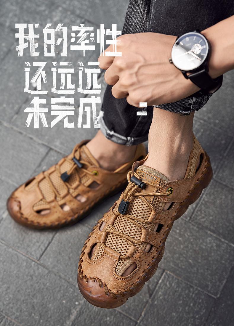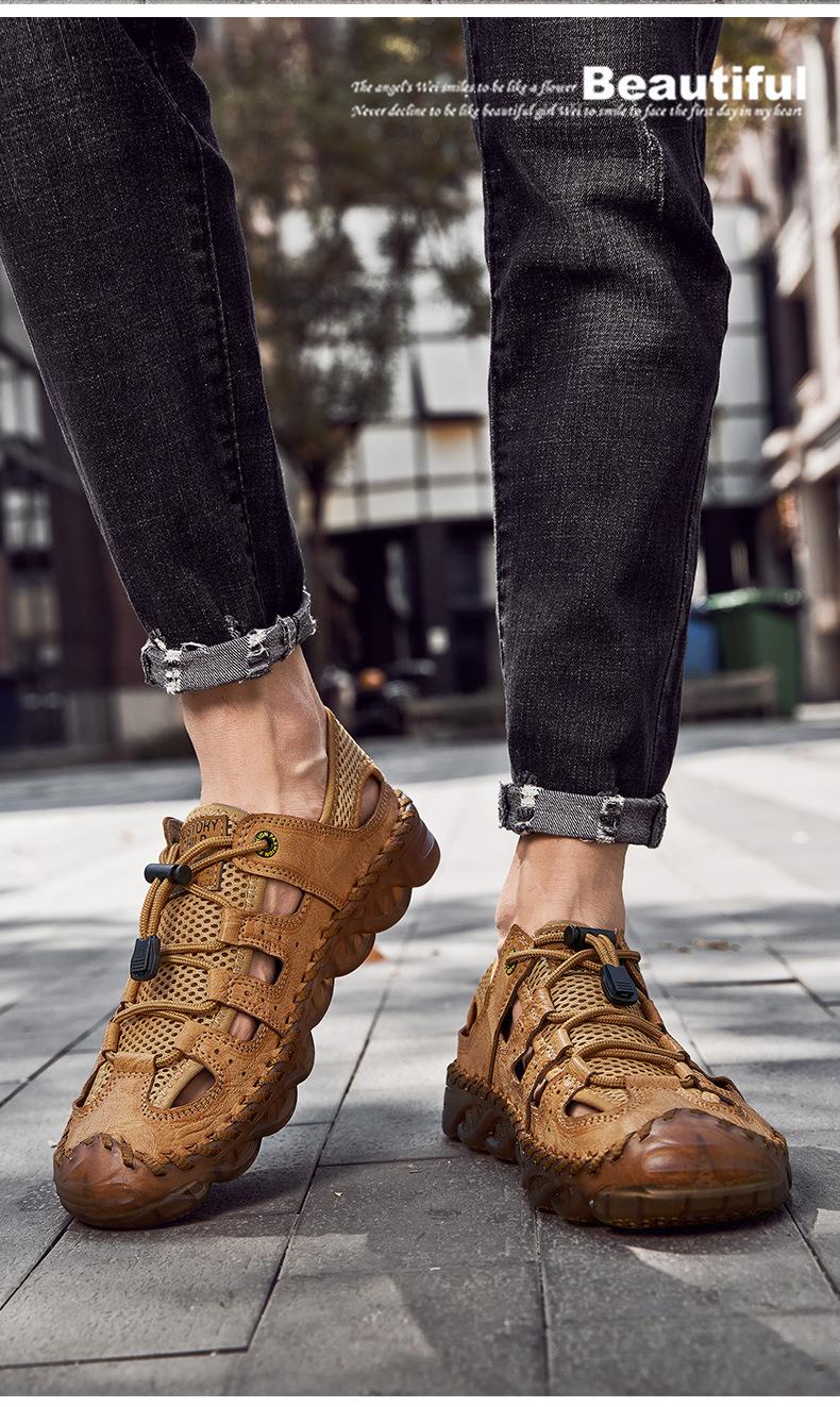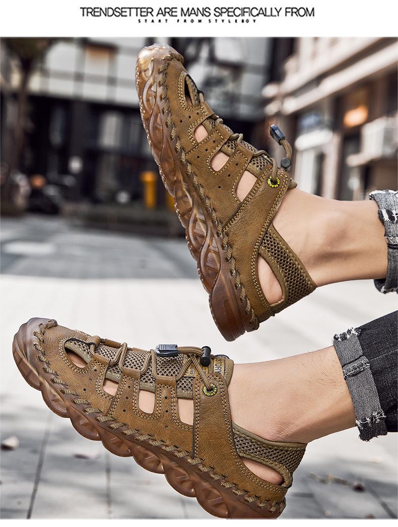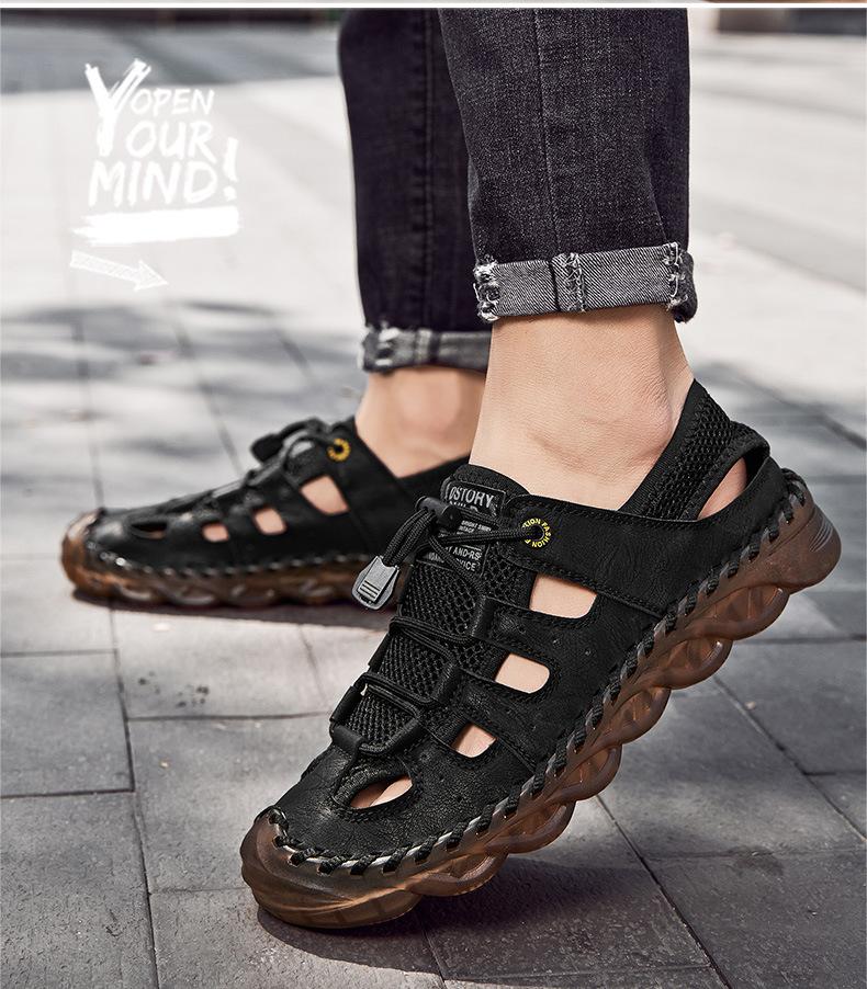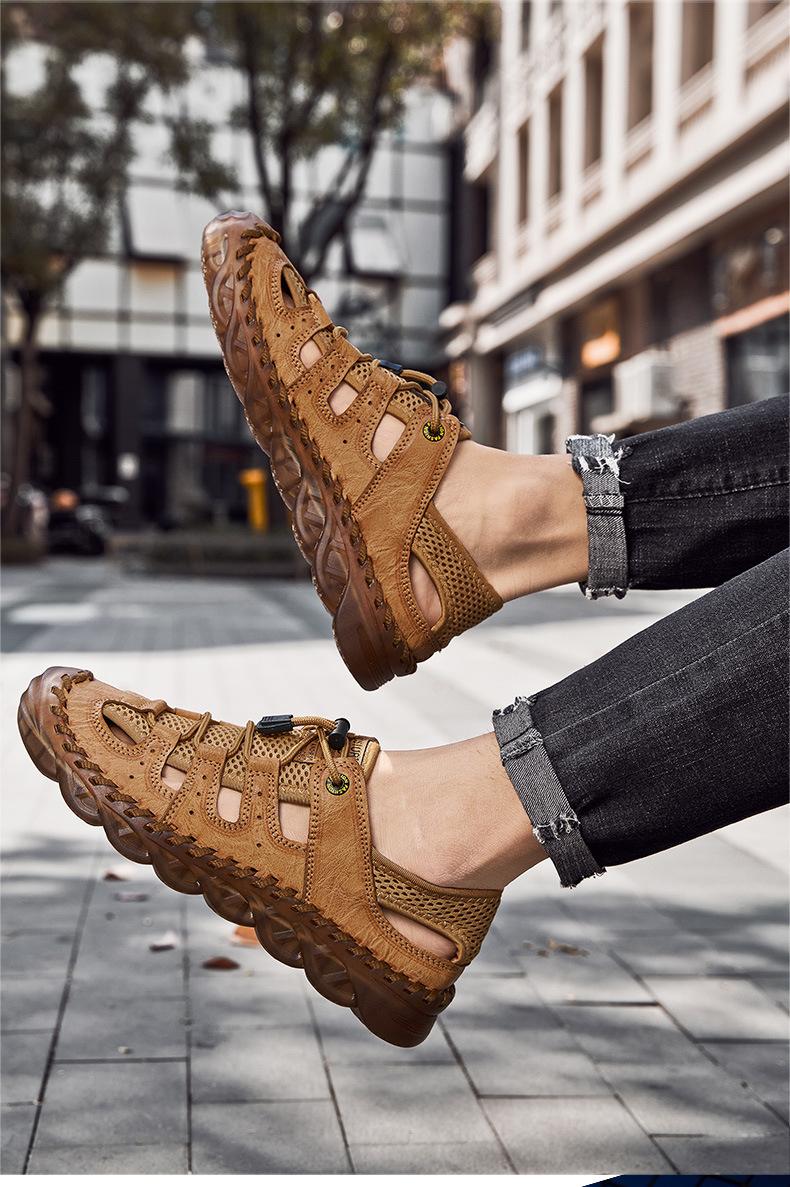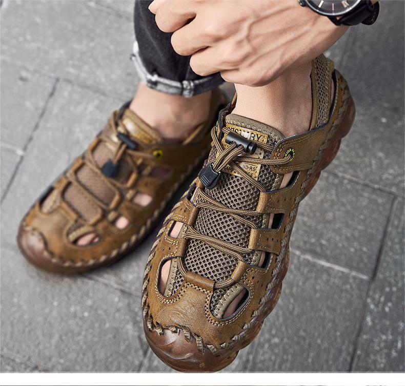 Sandalias informales de talla grande para hombre, zapatos de playa transpirables y huecos, para exteriores, de moda, hechos a mano, para primavera y verano, transfronterizos