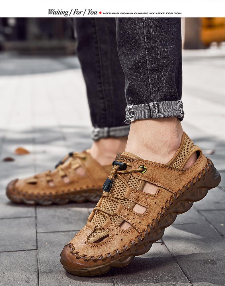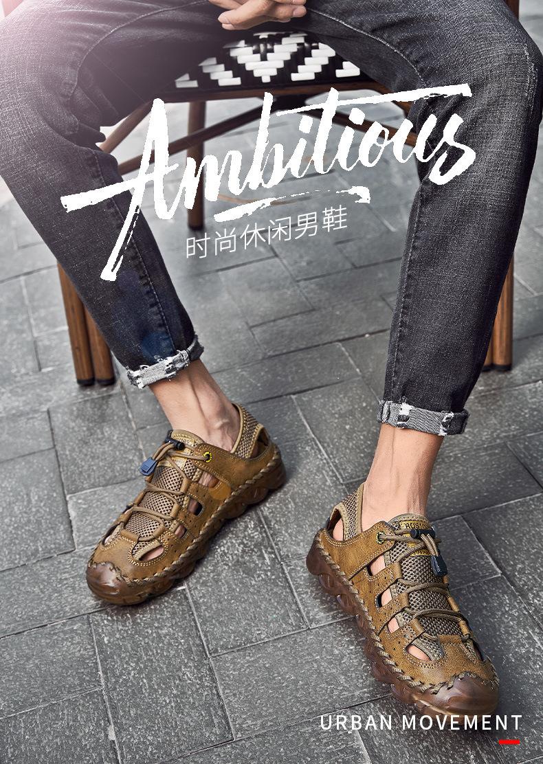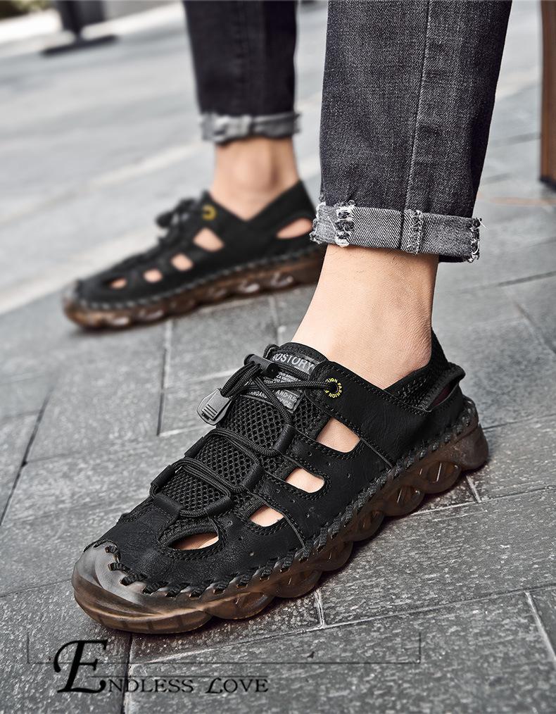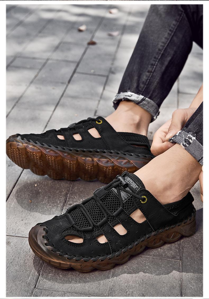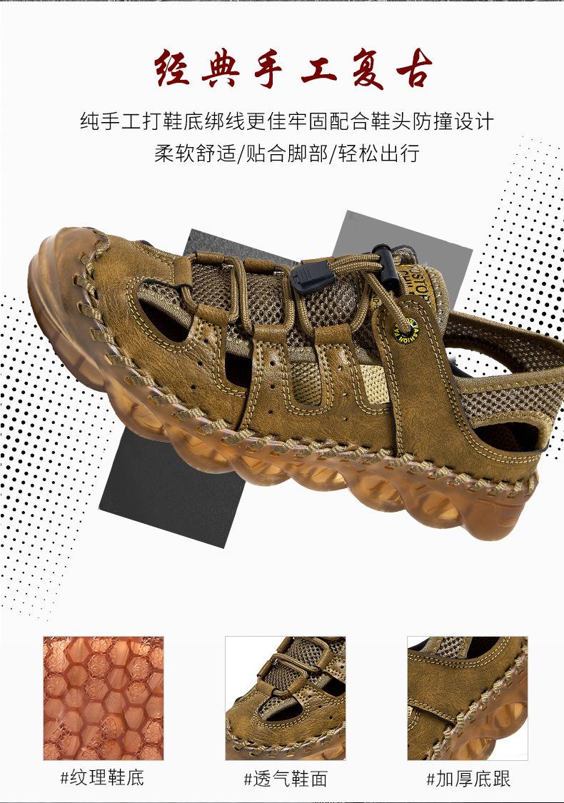 Sandalias informales de talla grande para hombre, zapatos de playa transpirables y huecos, para exteriores, de moda, hechos a mano, para primavera y verano, transfronterizos