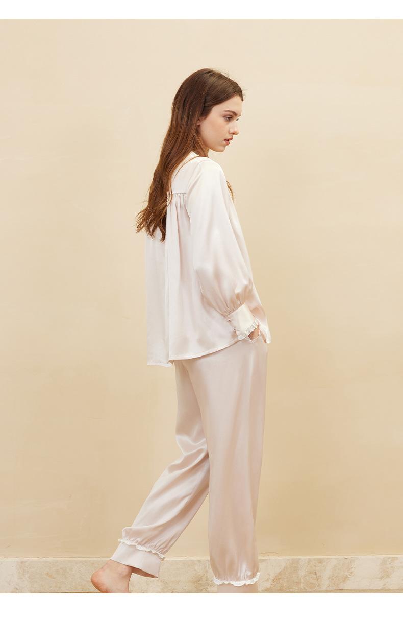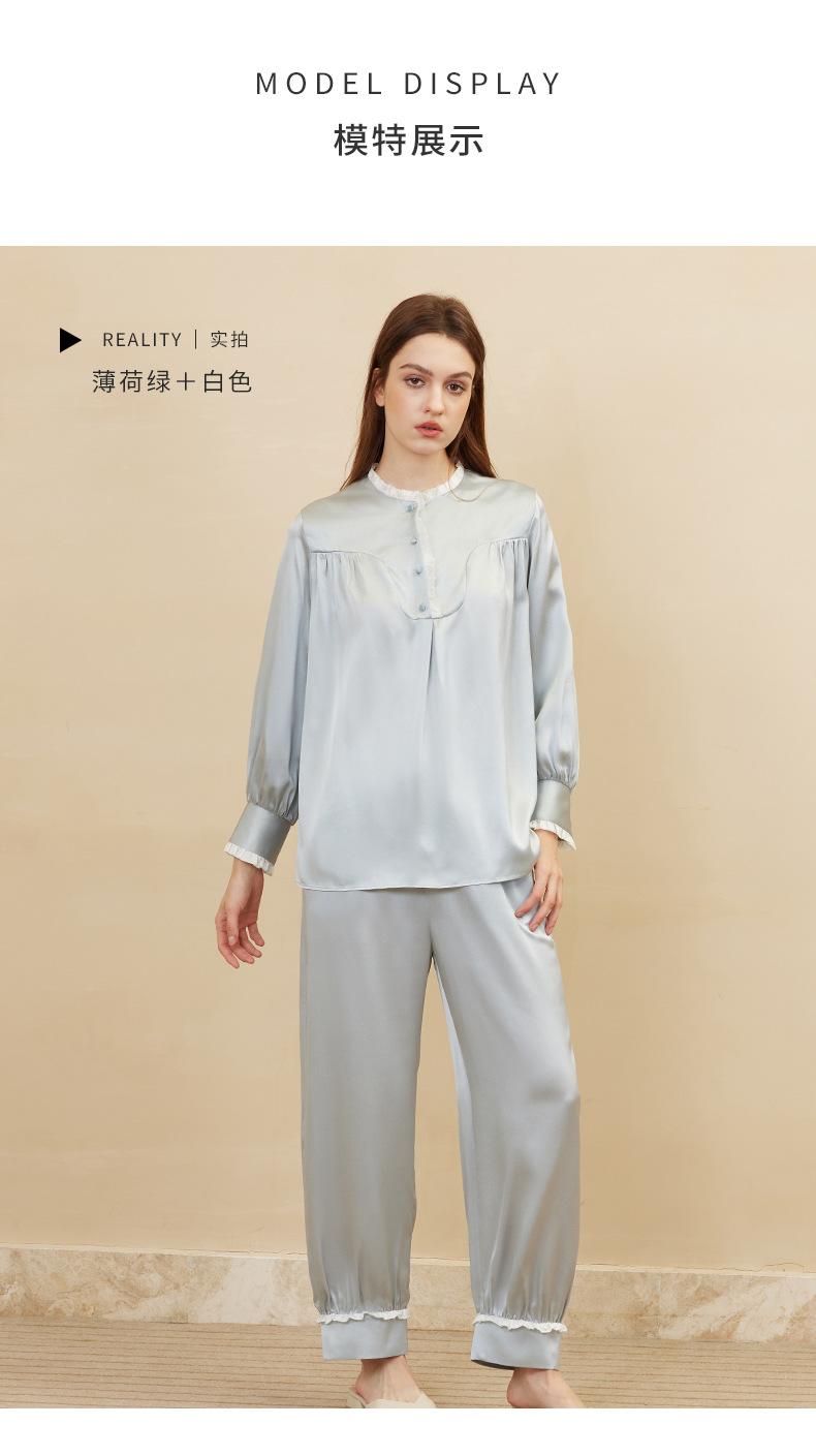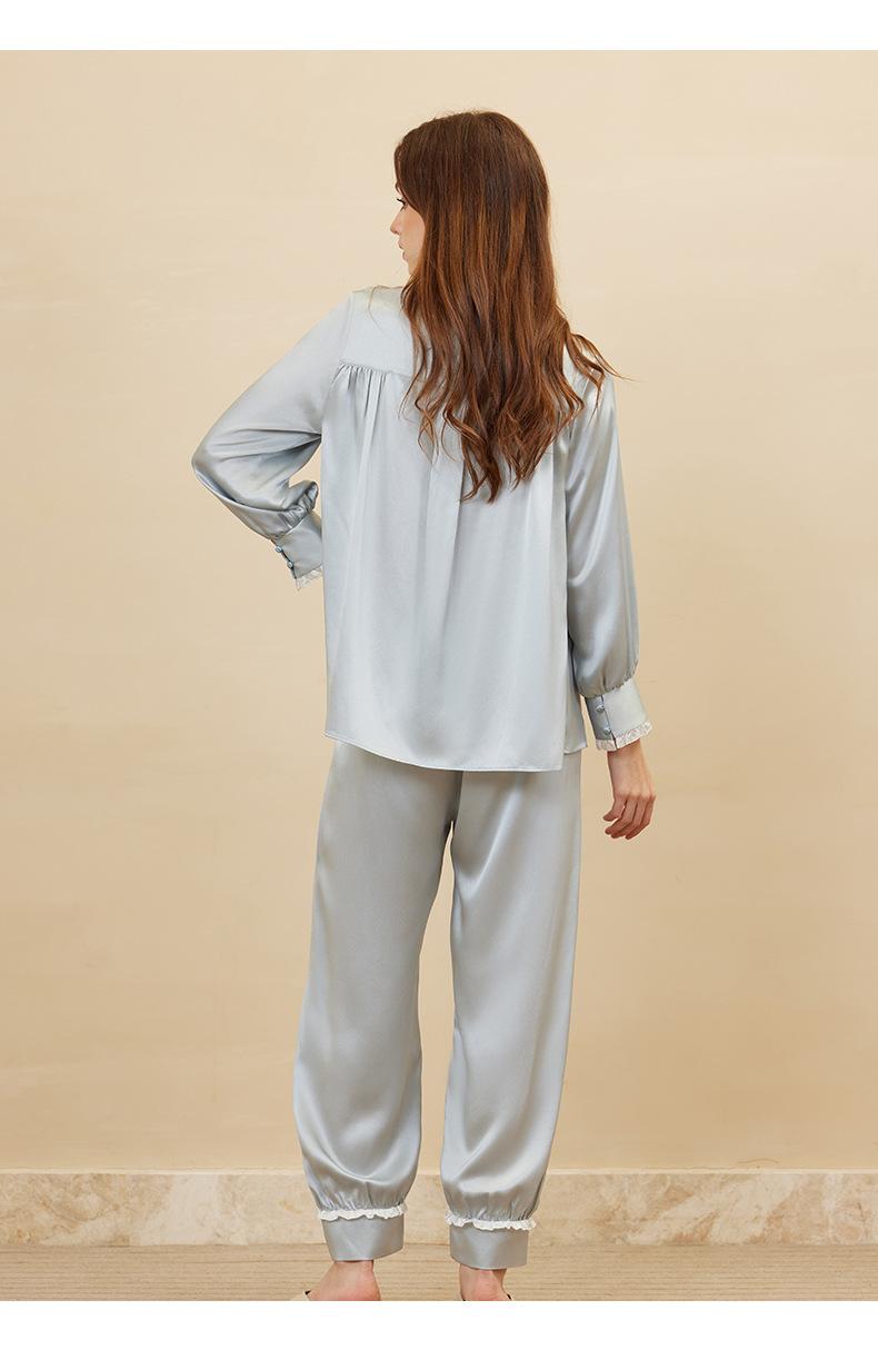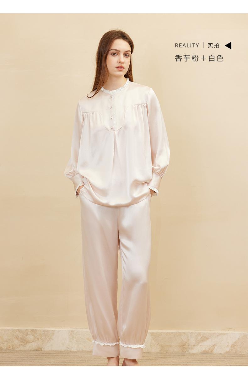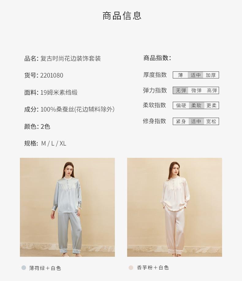 Bordado de Mariposas Primavera y Verano Nuevo Moda Retro Decoración de Encaje Conjunto de Pijama de Seda de Alta Gama Seda de Morera Ropa para el Hogar