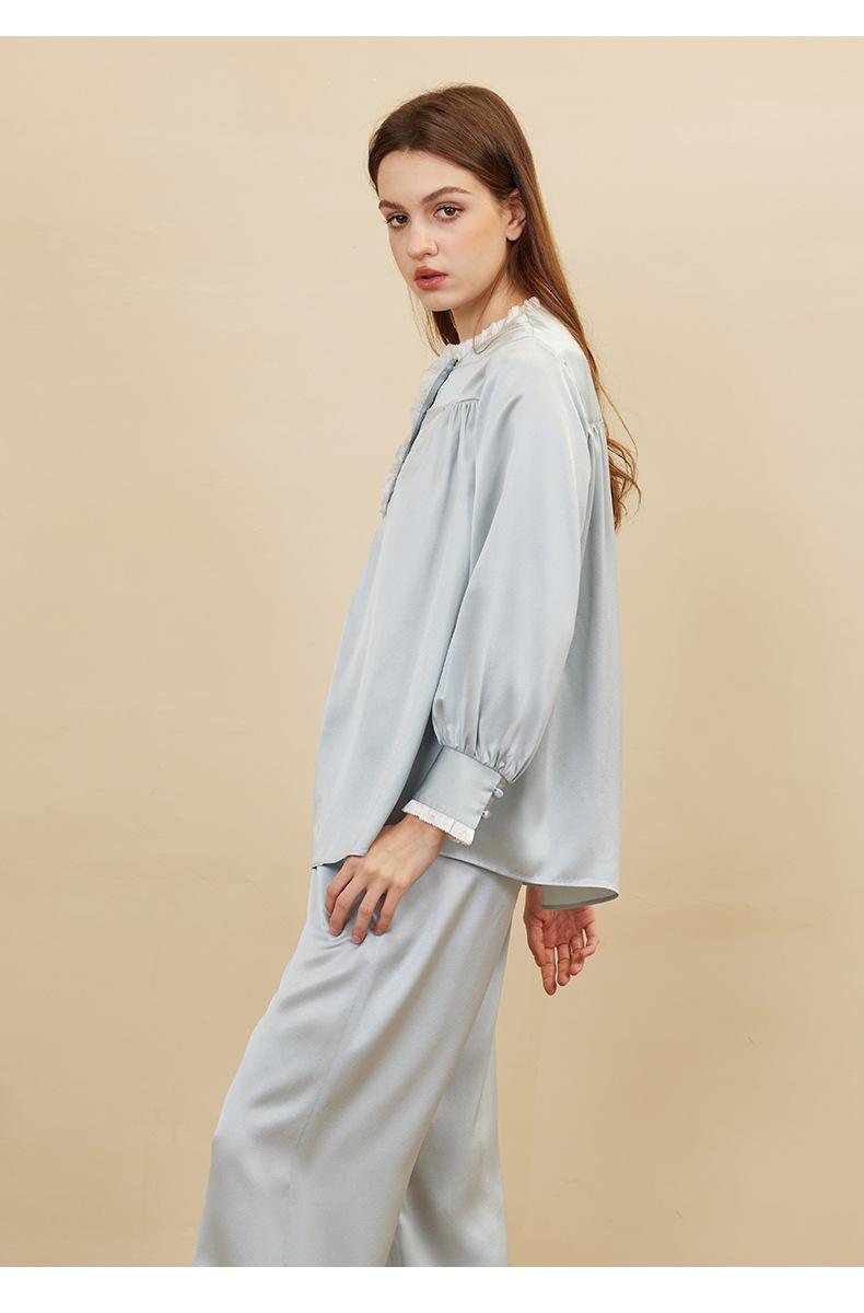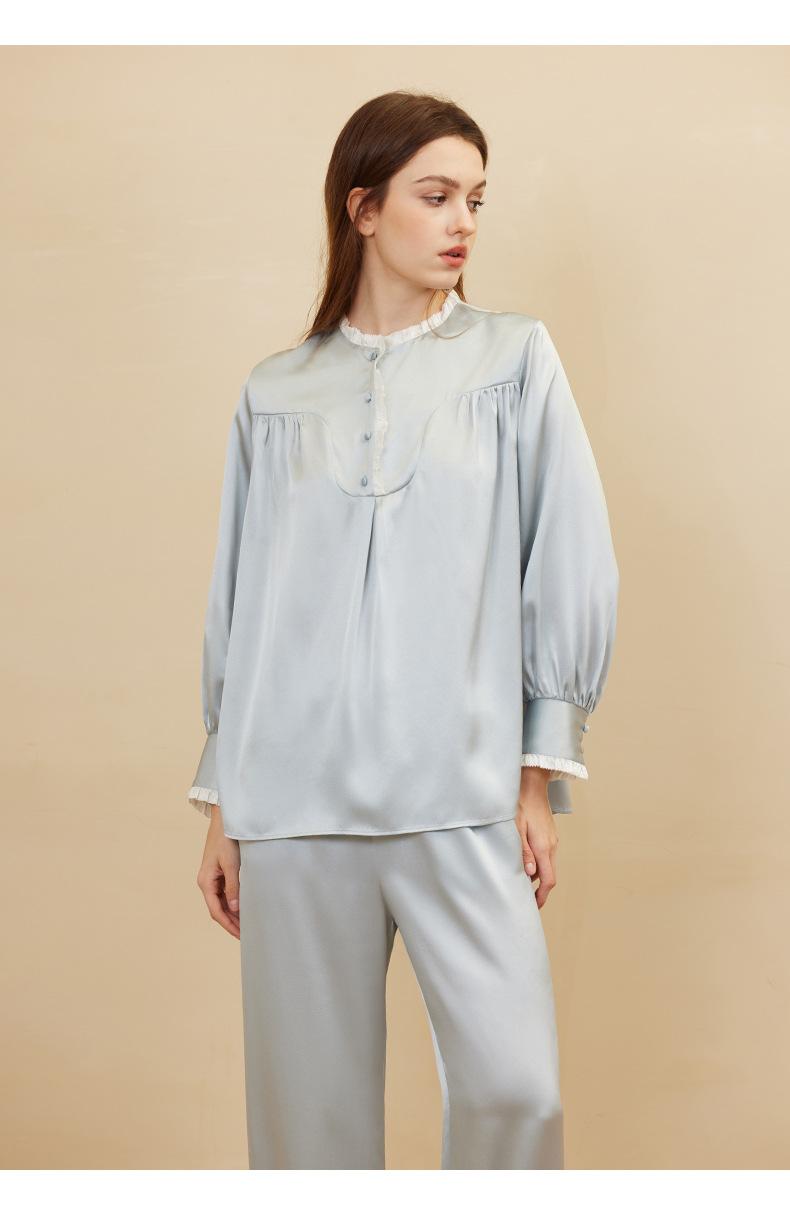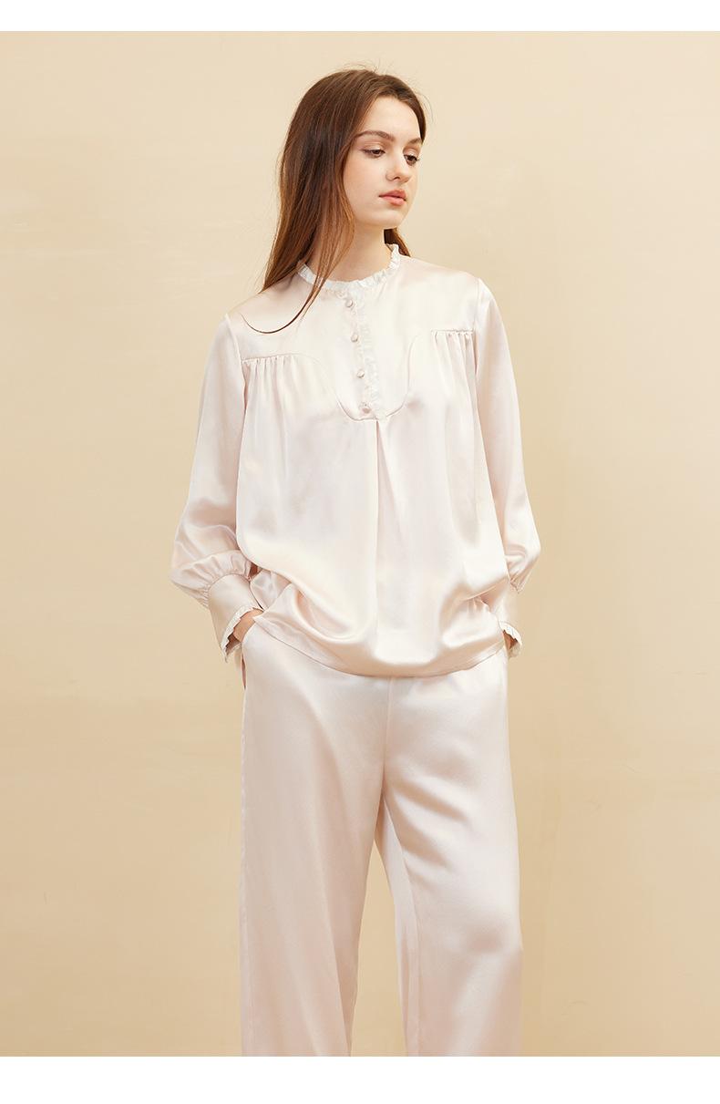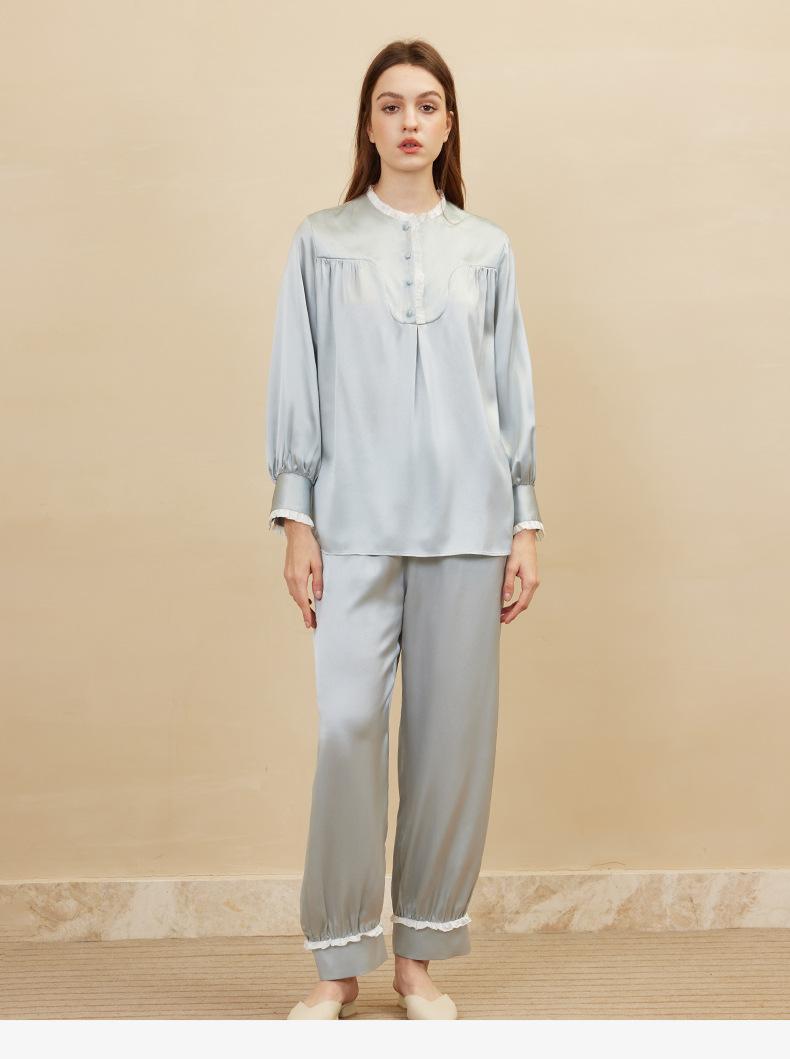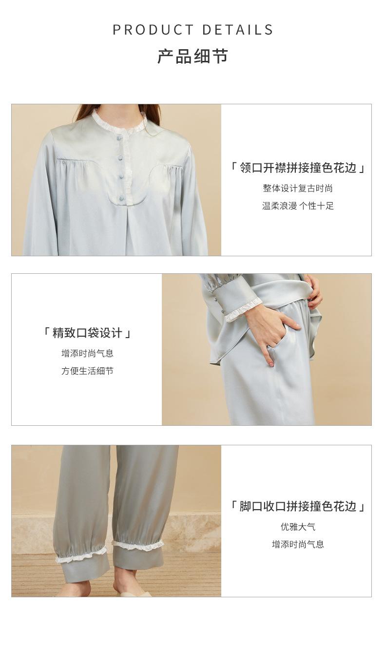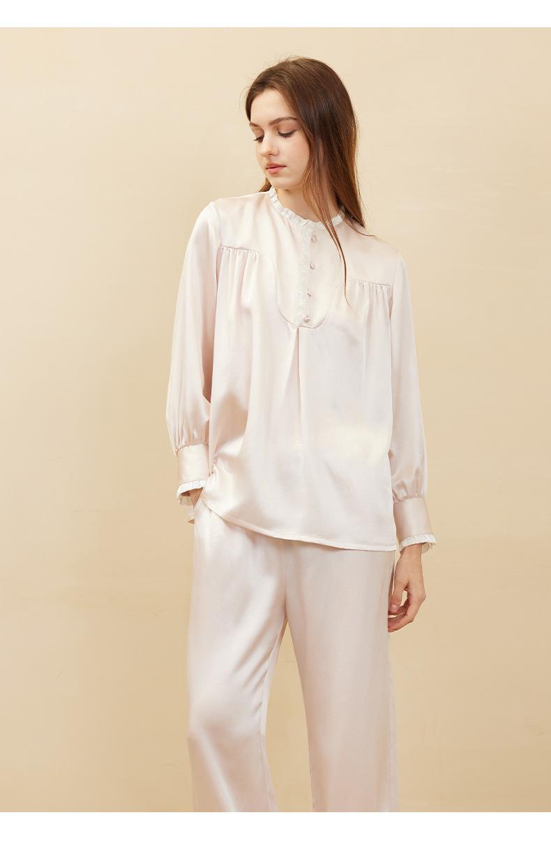 Bordado de Mariposas Primavera y Verano Nuevo Moda Retro Decoración de Encaje Conjunto de Pijama de Seda de Alta Gama Seda de Morera Ropa para el Hogar