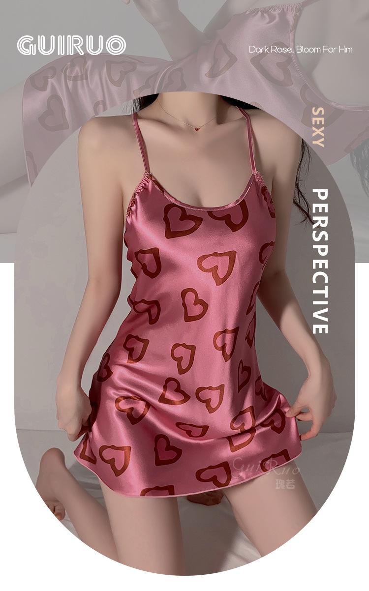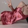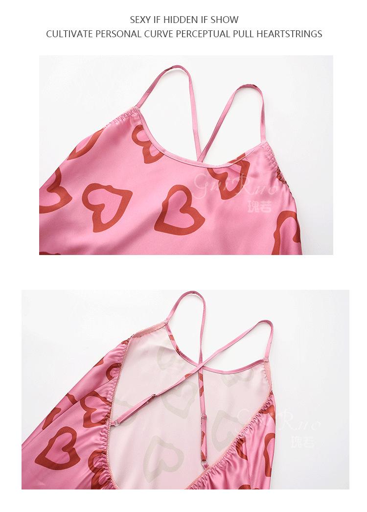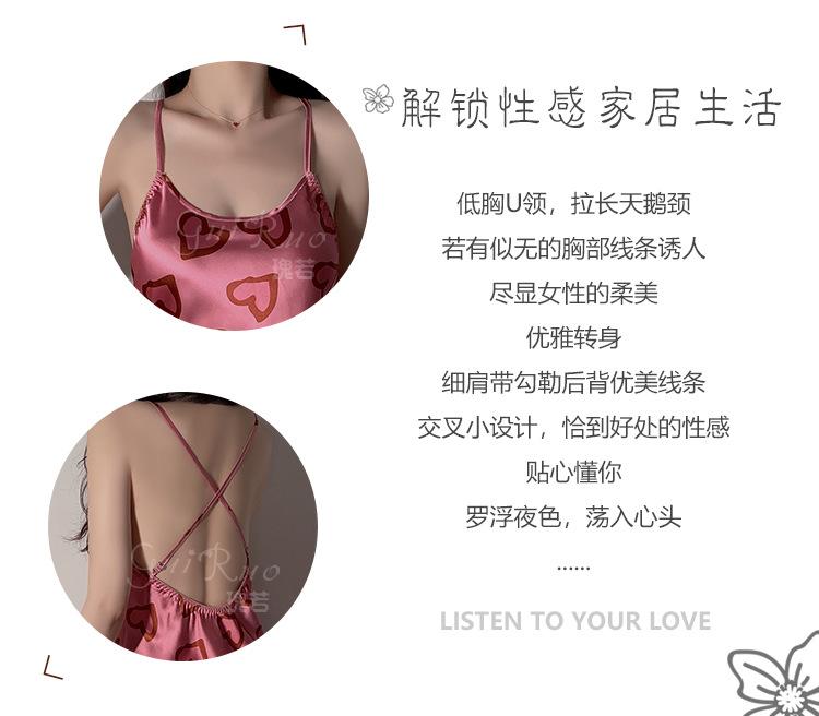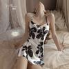 Pijama de seda helada Guiruo de verano, sexy, de talla grande, para mujer, sencillo, con estampado francés, camisón con tirantes, ropa de casa, traje 4306