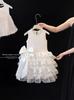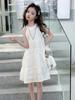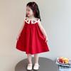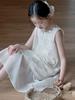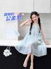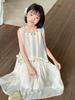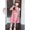 Vestido coreano de verano de dibujos animados sin mangas para niñas, moda infantil 2024, vestido de princesa de malla a rayas