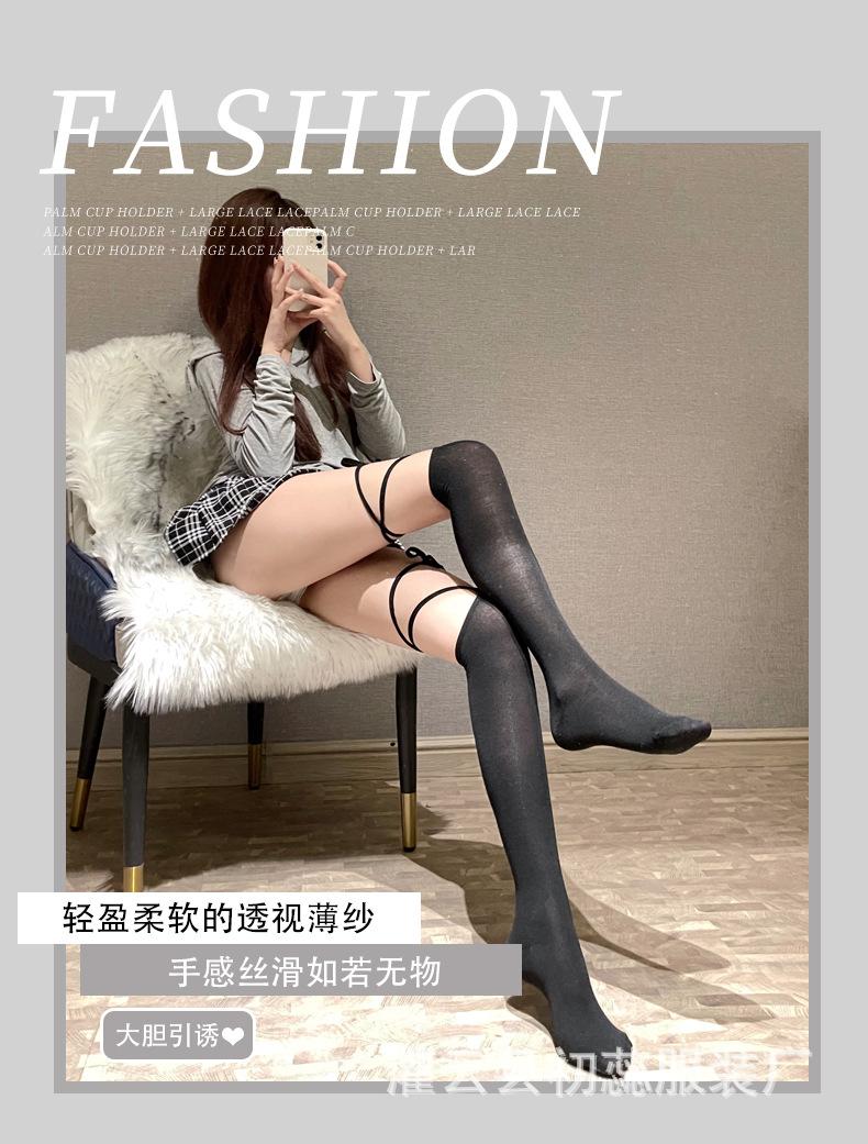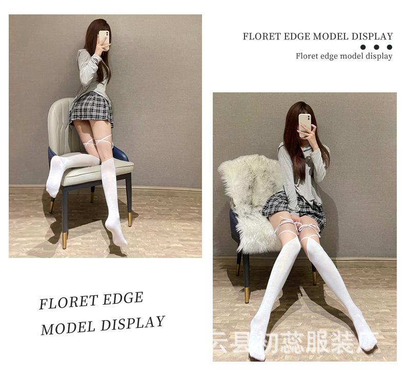 Calcetines lindos de estudiante JK Lolita Calcetines distintivos japoneses con correa cruzada por encima de la rodilla Calcetines largos de algodón de media altura para mujer