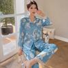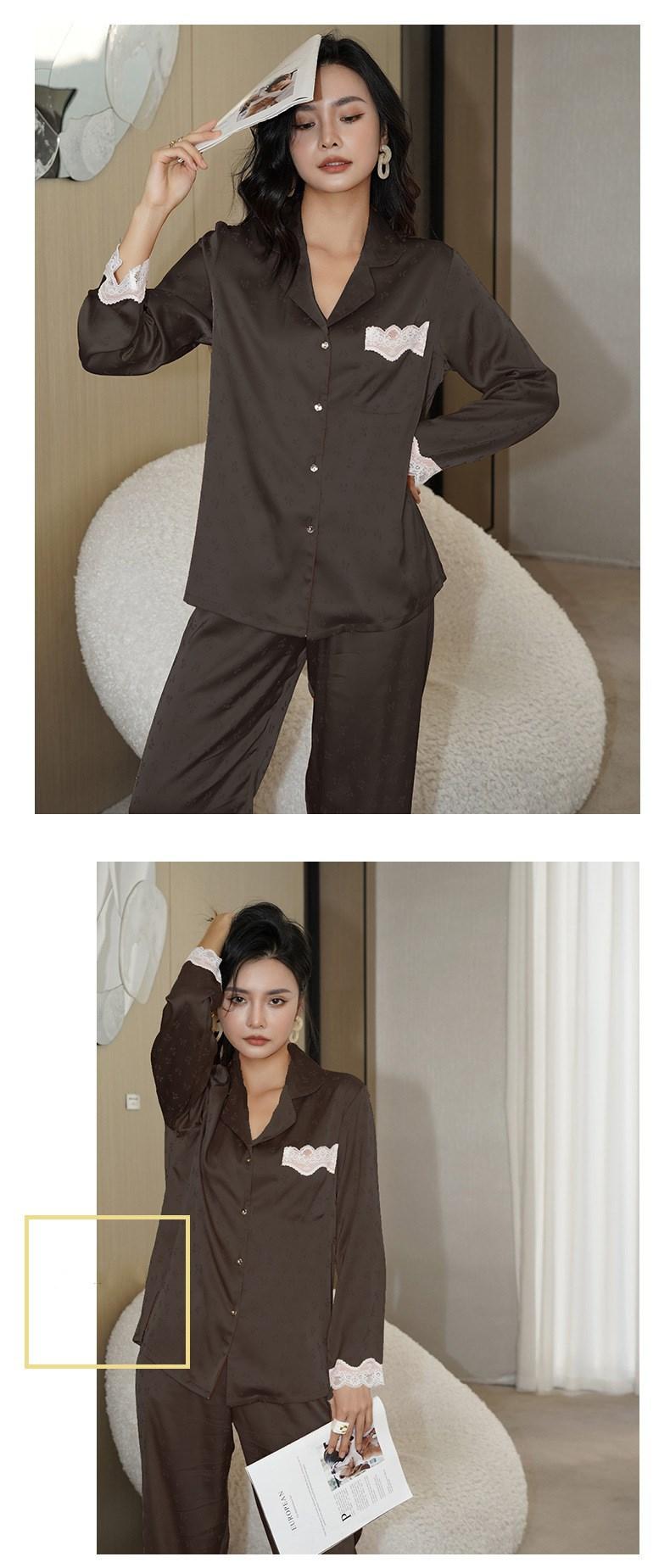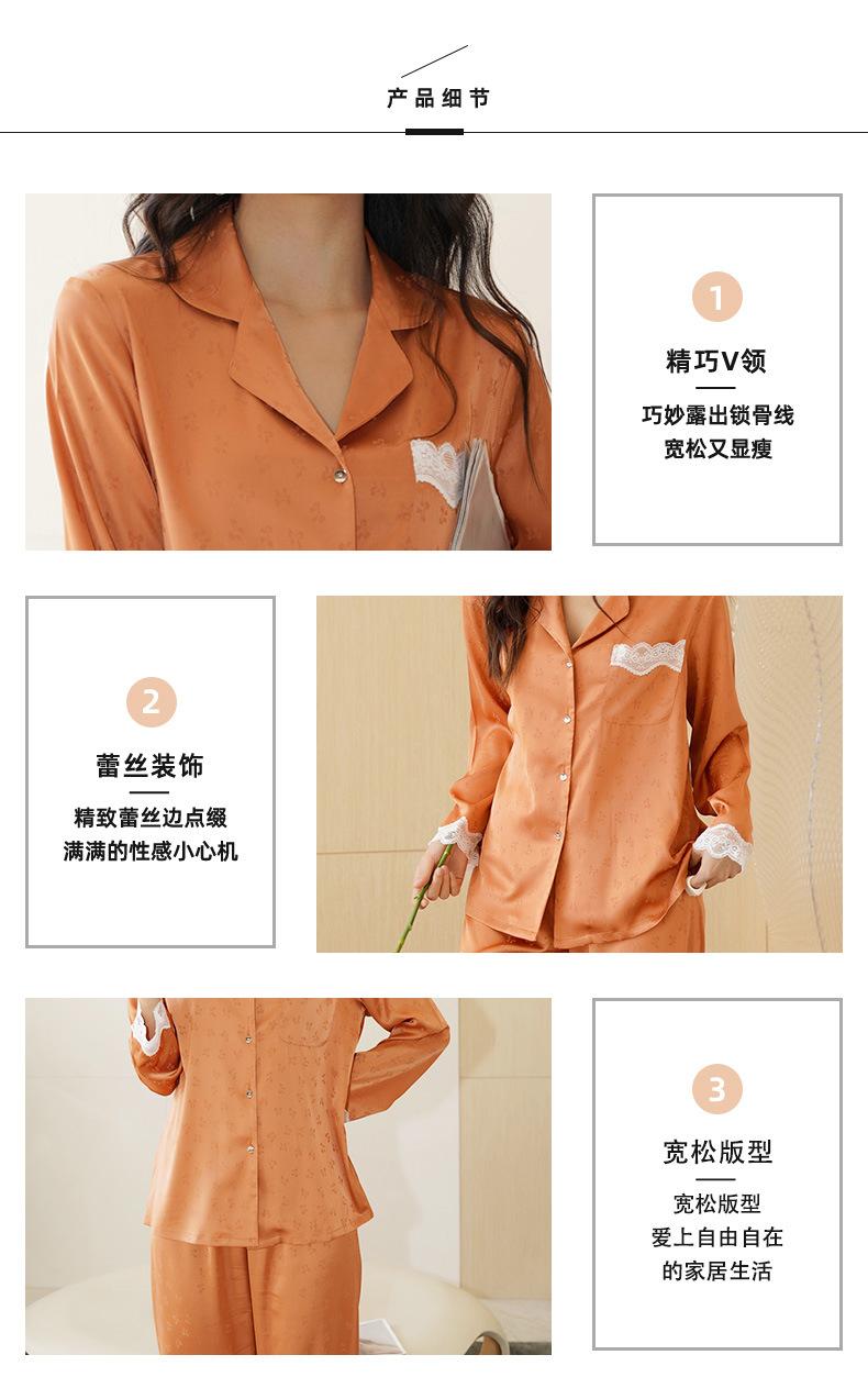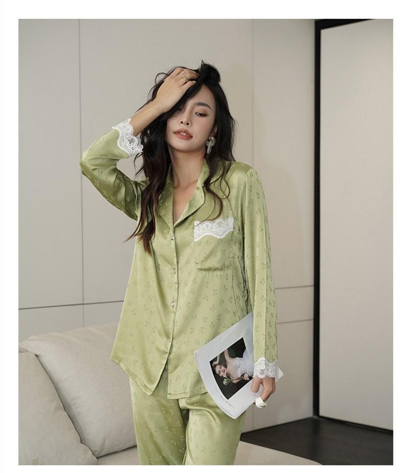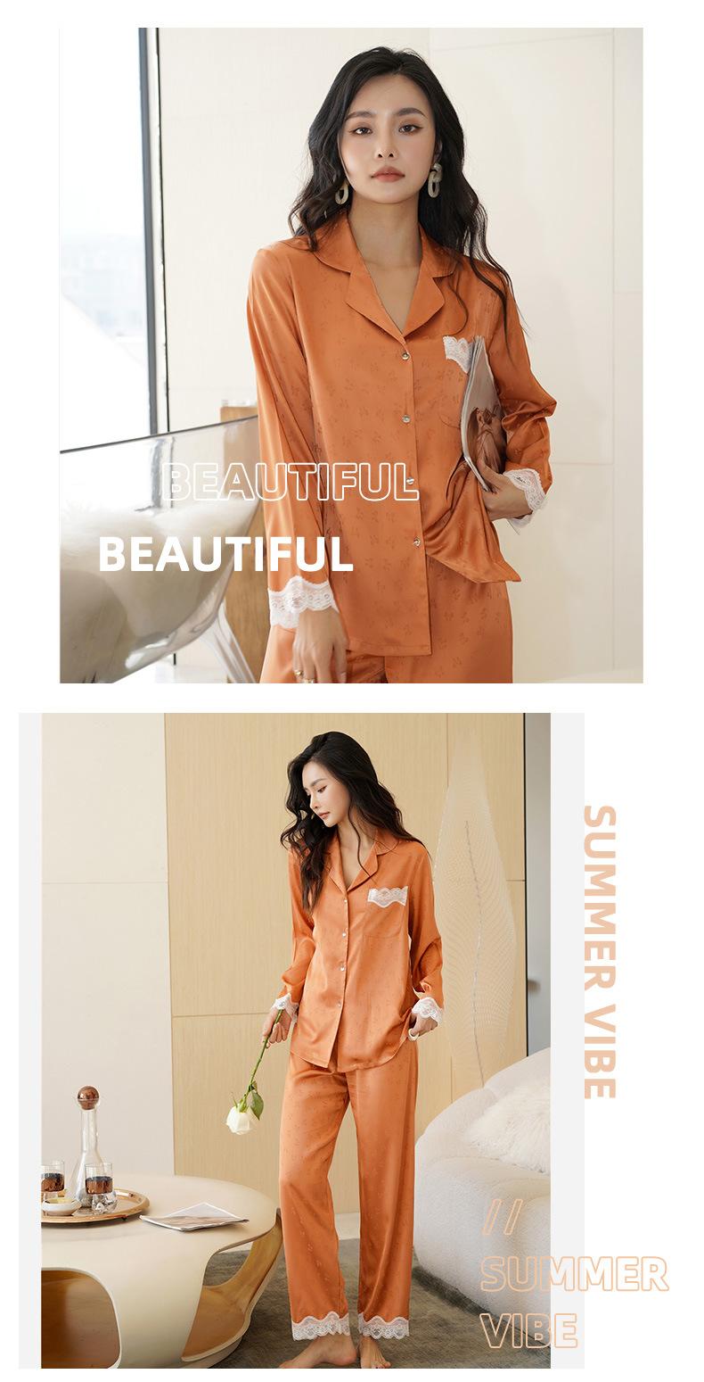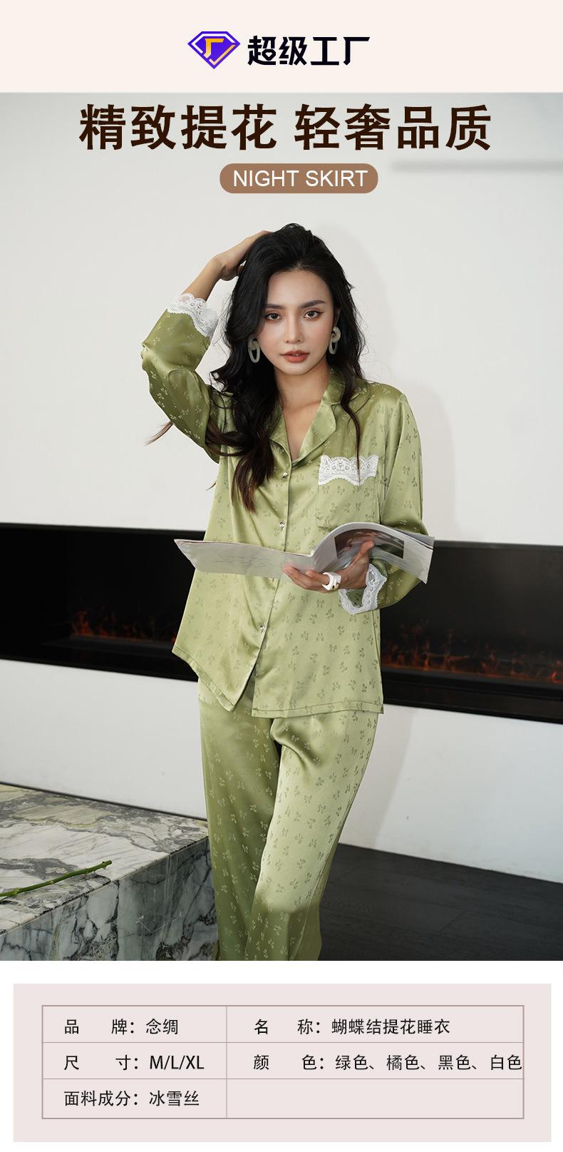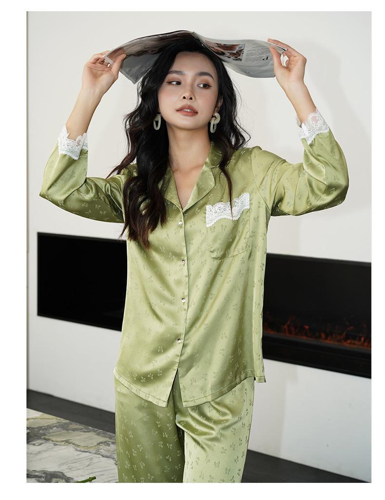 Pijamas de mujer primavera y otoño 2023 nuevo traje de seda de hielo fino de verano con lazo de encaje jacquard de manga larga ropa de hogar al por mayor