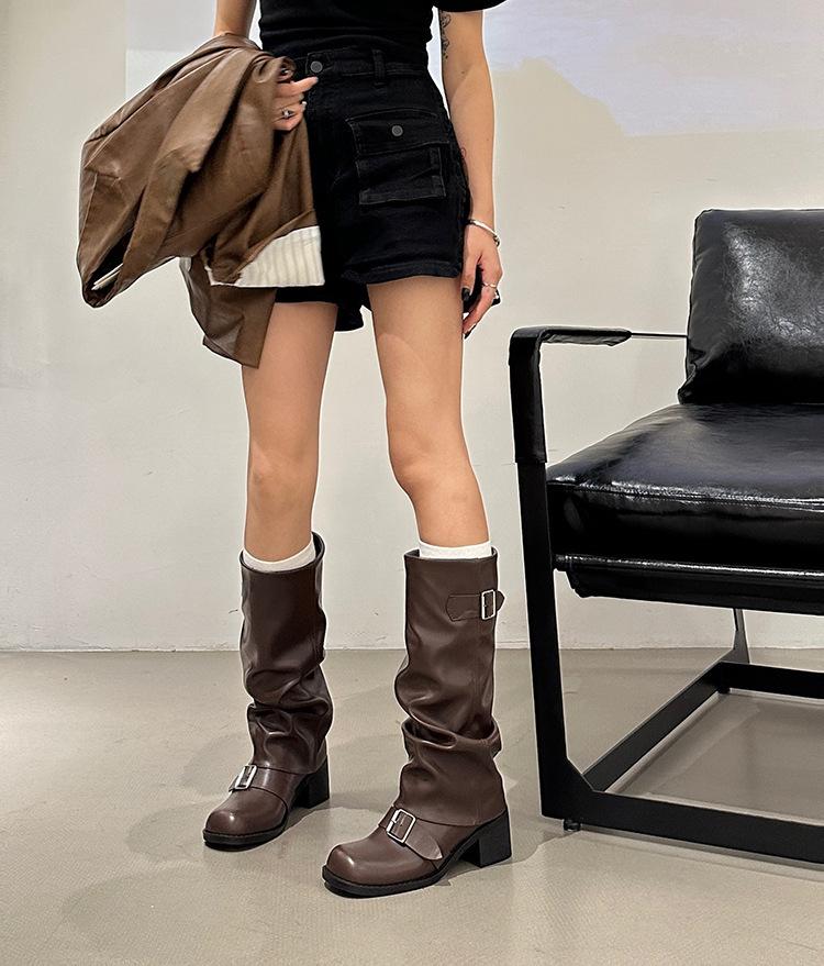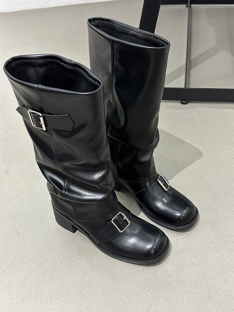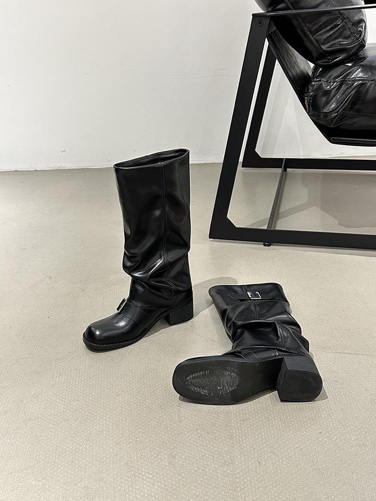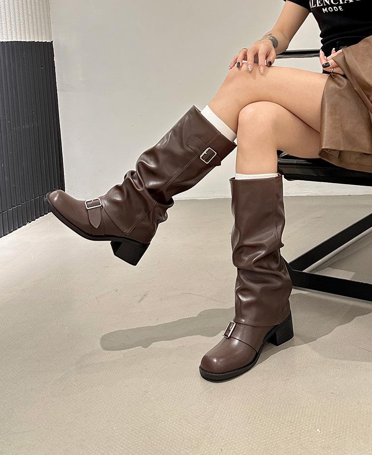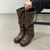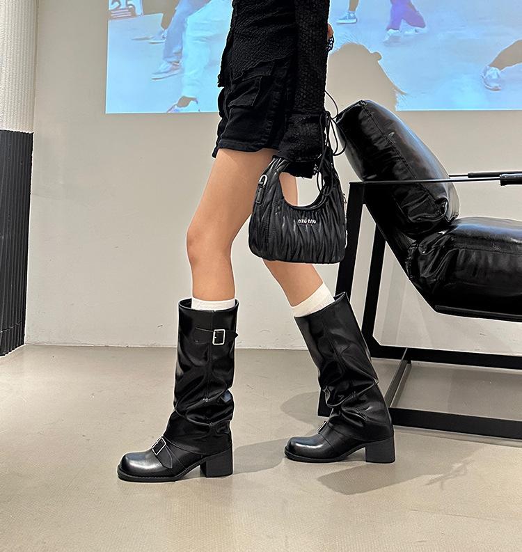 Botas hasta la rodilla para mujer tacón grueso 2023 otoño e invierno nuevas botas de mujer botas europeas y americanas botas largas punta redonda botas Western Knight