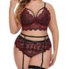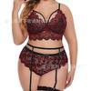 Lencería Sexy de Talla Grande de Venta Caliente Europea y Americana Transfronteriza Suministro de Ebay Tentación Sexy Encaje Liguero Traje de Tres Puntos