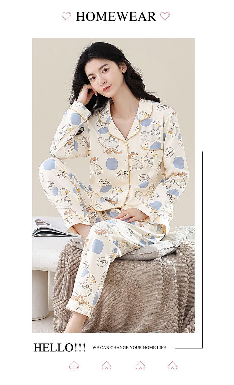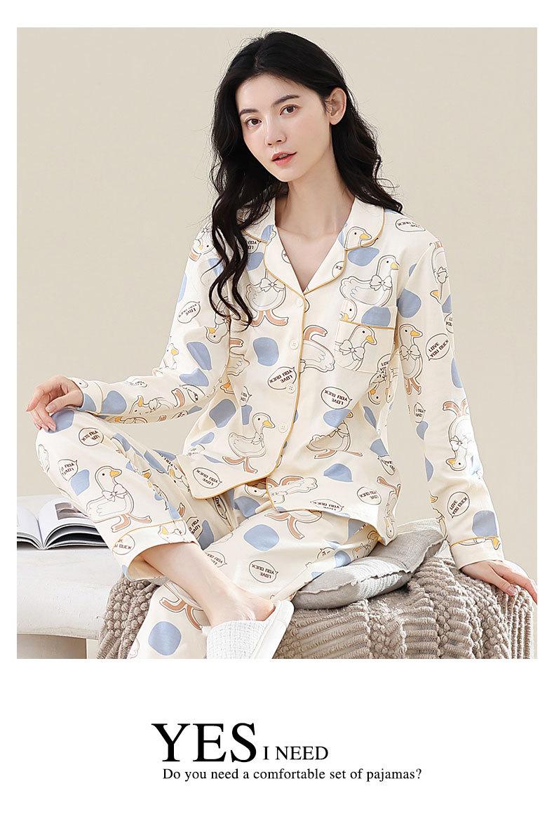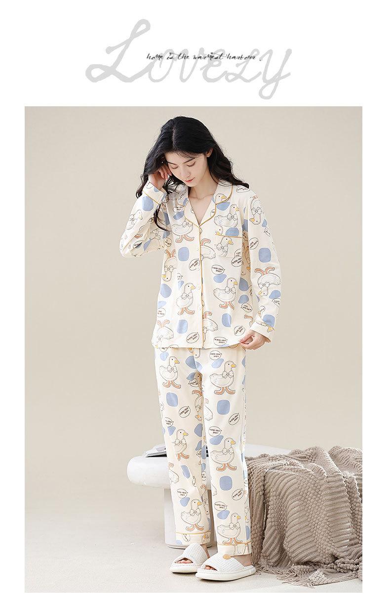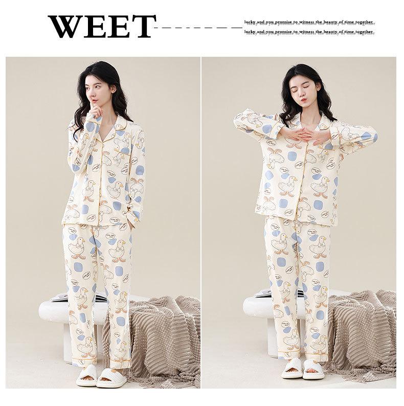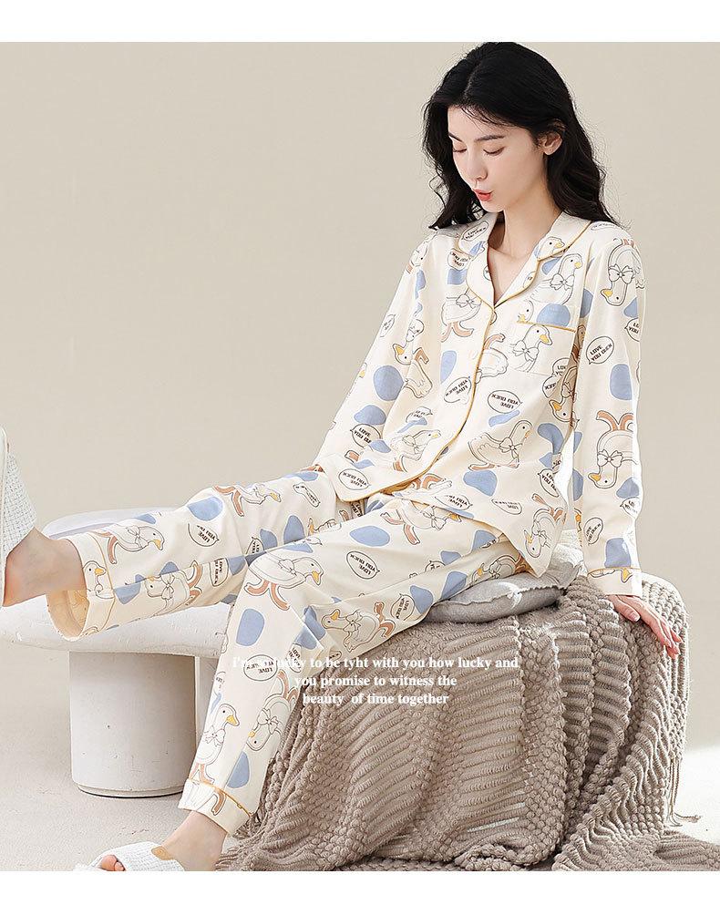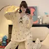 Pijama de manga larga de algodón de primavera y otoño para mujer, dulce y linda chica de dibujos animados que puede salir a casa y usar traje