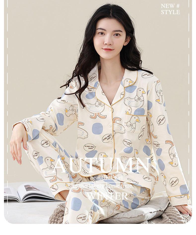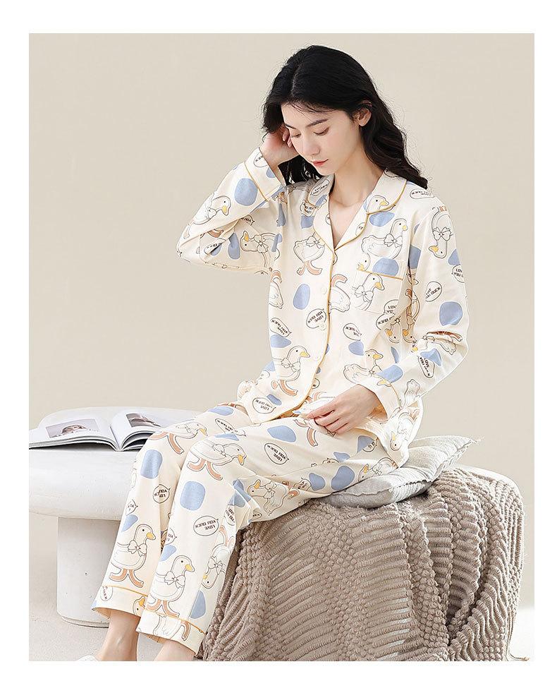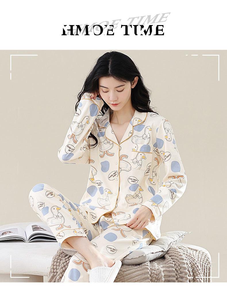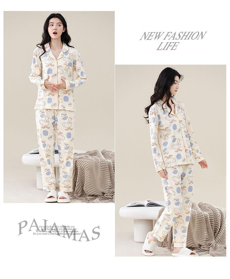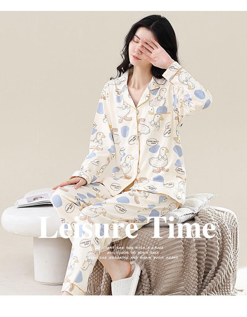 Pijama de manga larga de algodón de primavera y otoño para mujer, dulce y linda chica de dibujos animados que puede salir a casa y usar traje