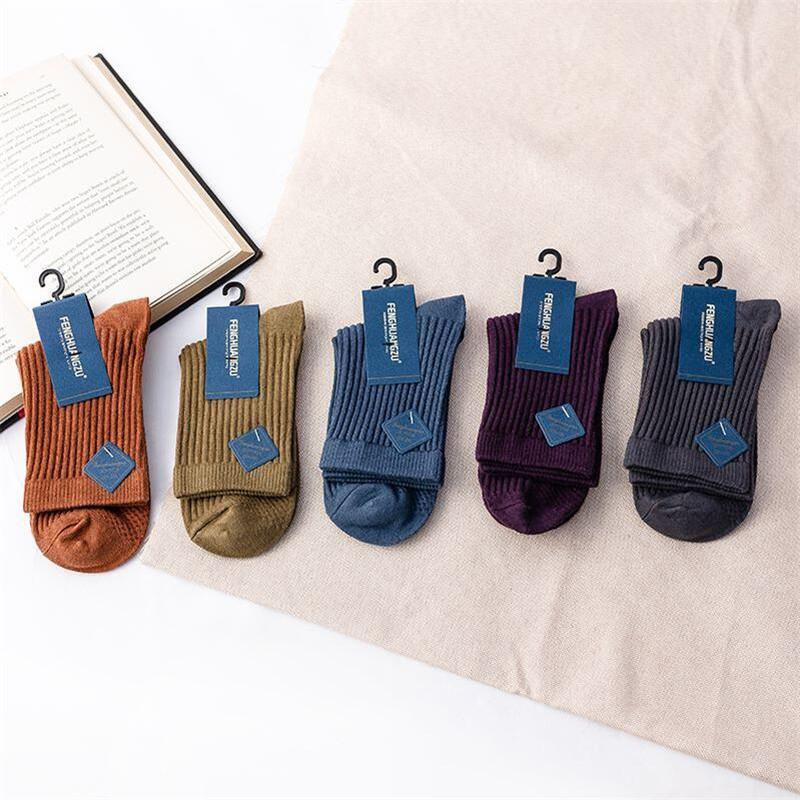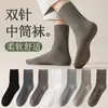 Calcetines de algodón de primavera y otoño para hombre, calcetines de otoño e invierno hasta media pantorrilla, calcetines de hombre de doble aguja, transpirables y absorbentes del sudor, calcetines clásicos de negocios para hombre, al por mayor