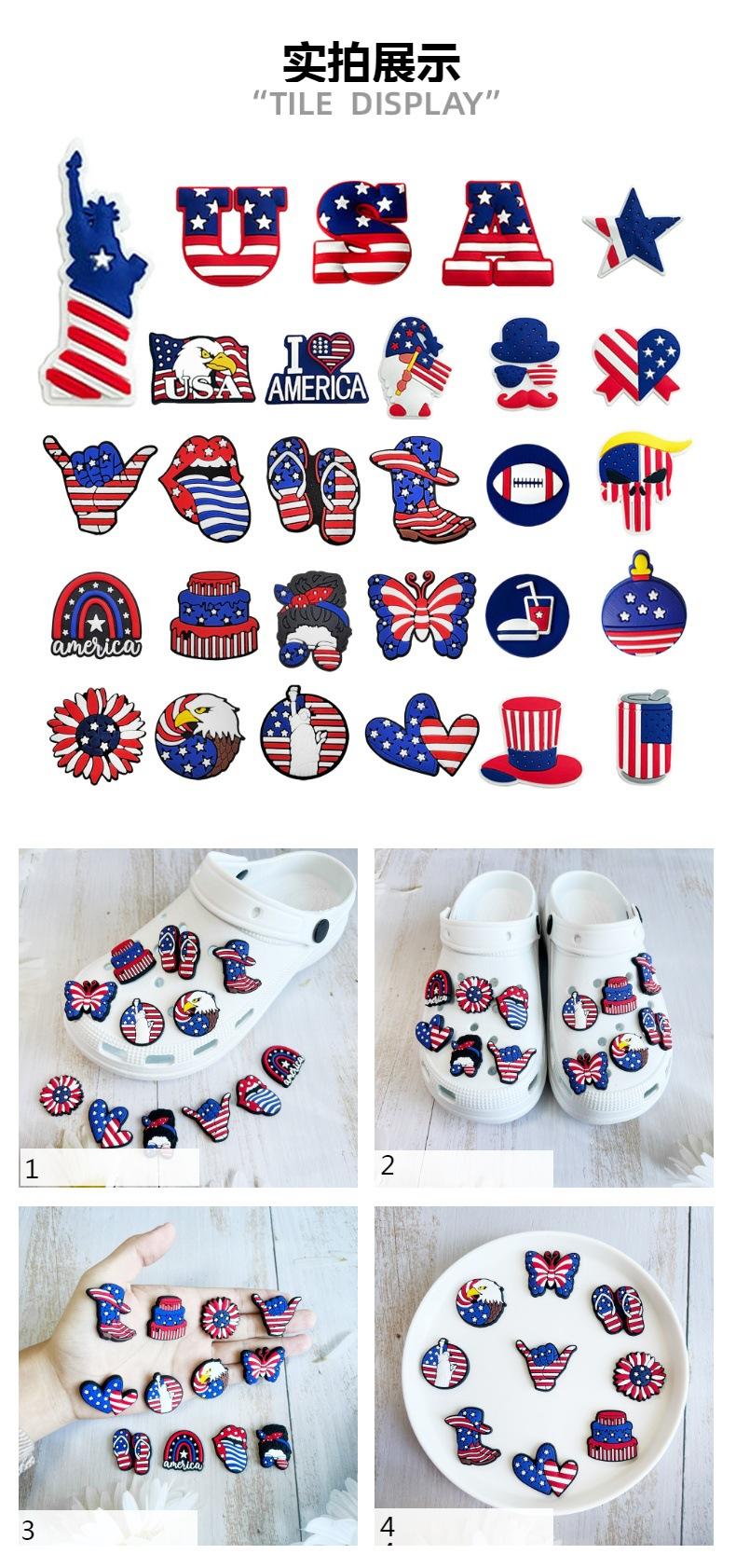 Zapatos con agujeros accesorios DIY jibbitz removibles hebilla para zapatos croc flor para zapatos con agujeros flor para zapatos Día de la Independencia de Estados Unidos flor para zapatos