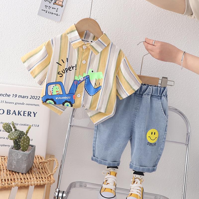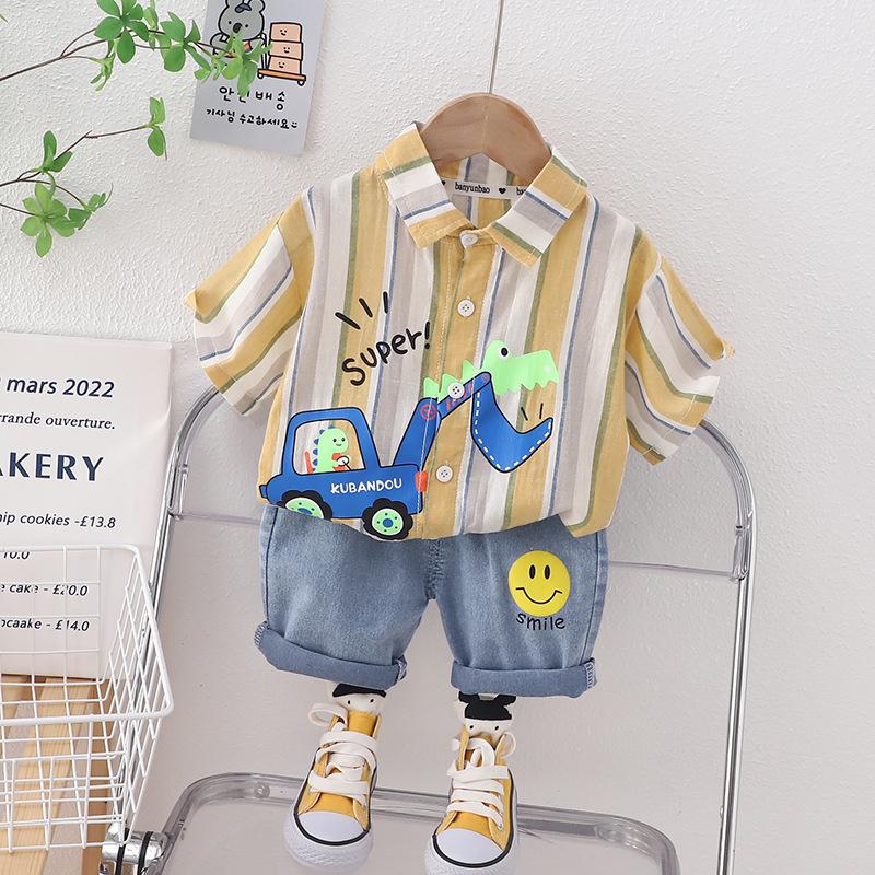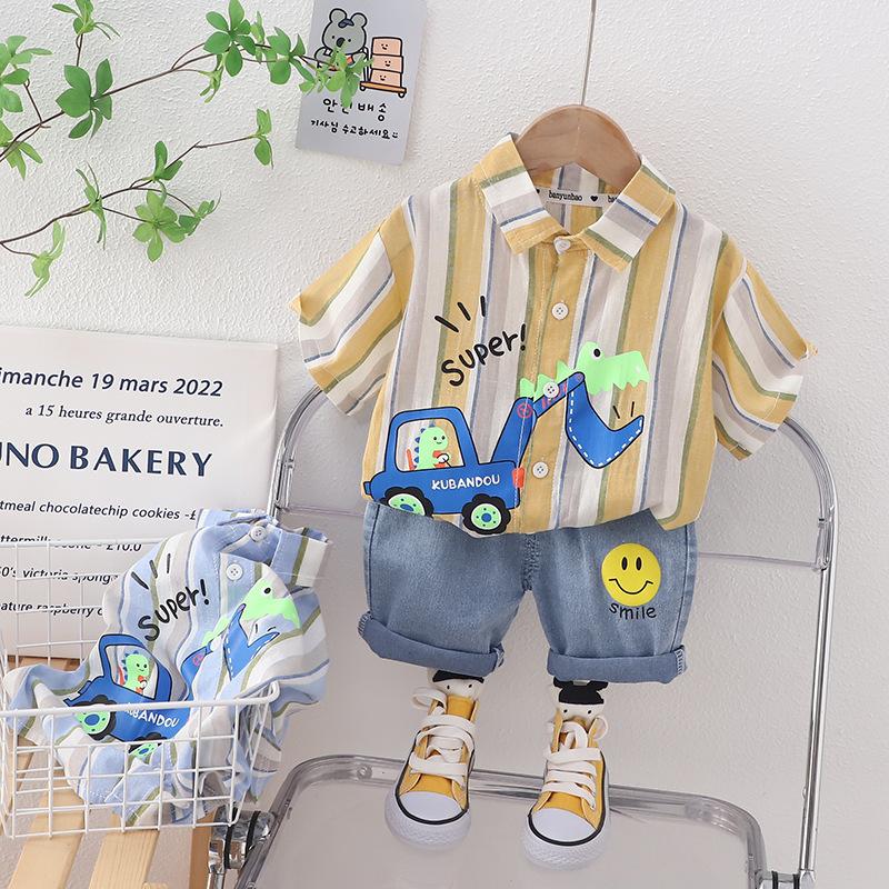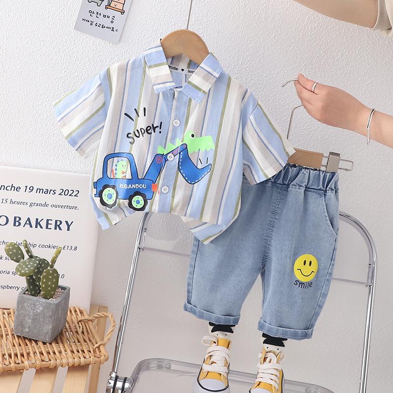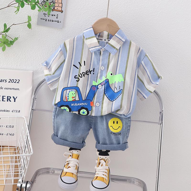 2023 nuevo traje refrescante de manga corta con dibujos animados para niños y niñas, pantalones cortos de verano para niños, versión coreana fina y transpirable