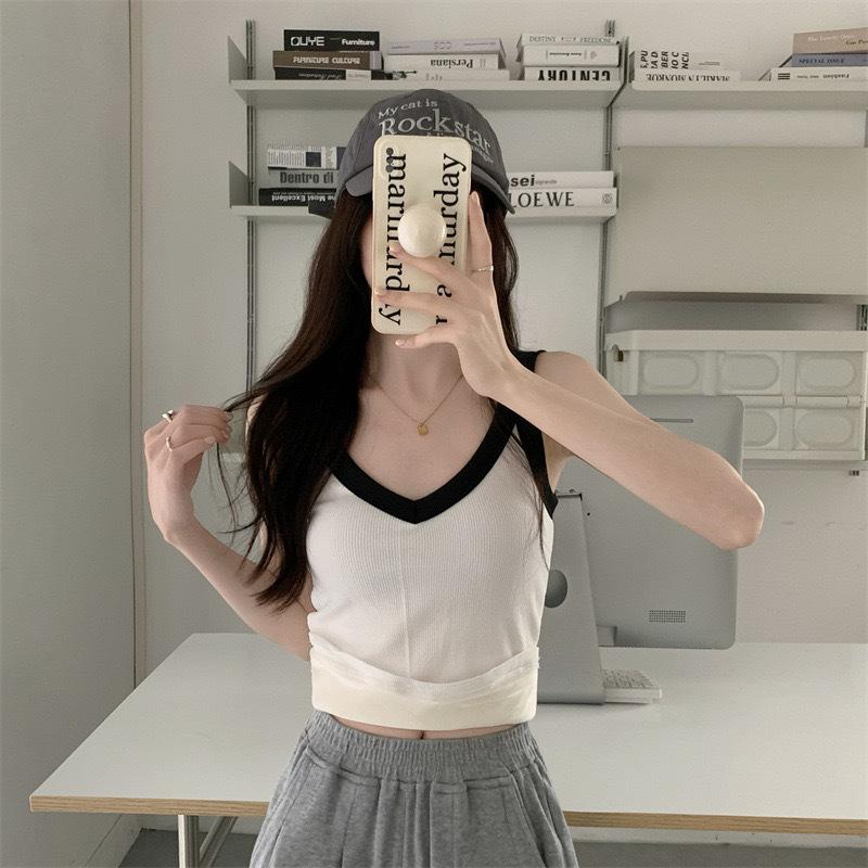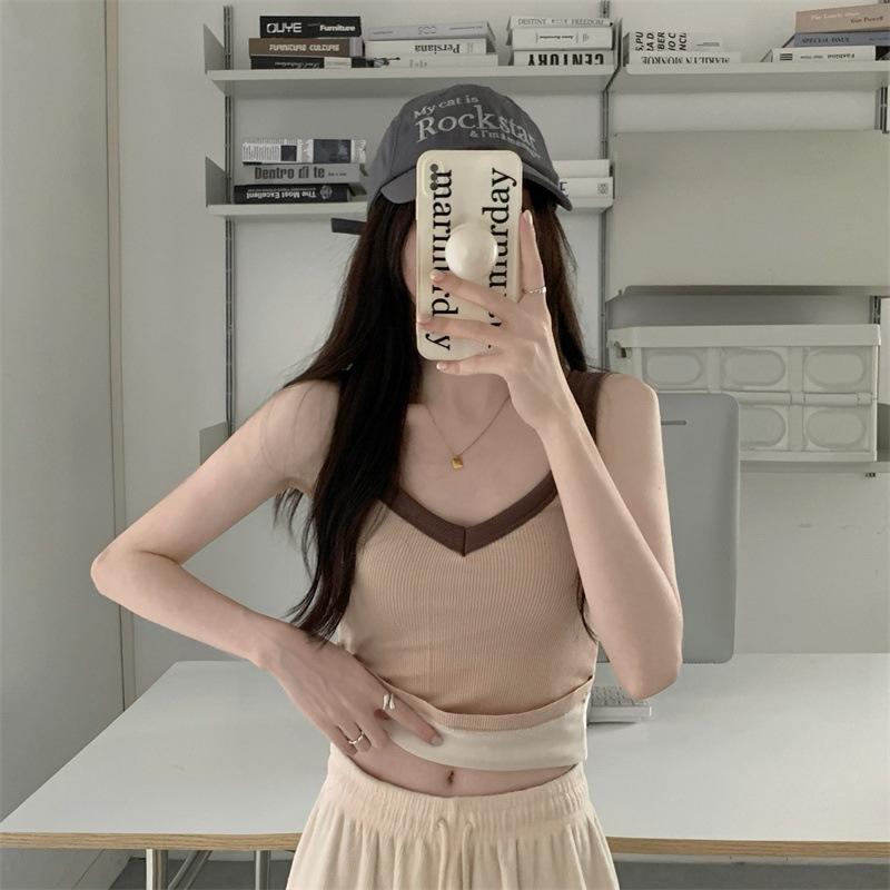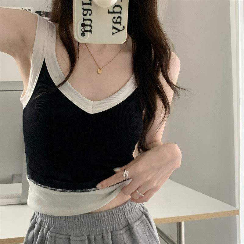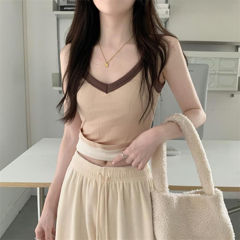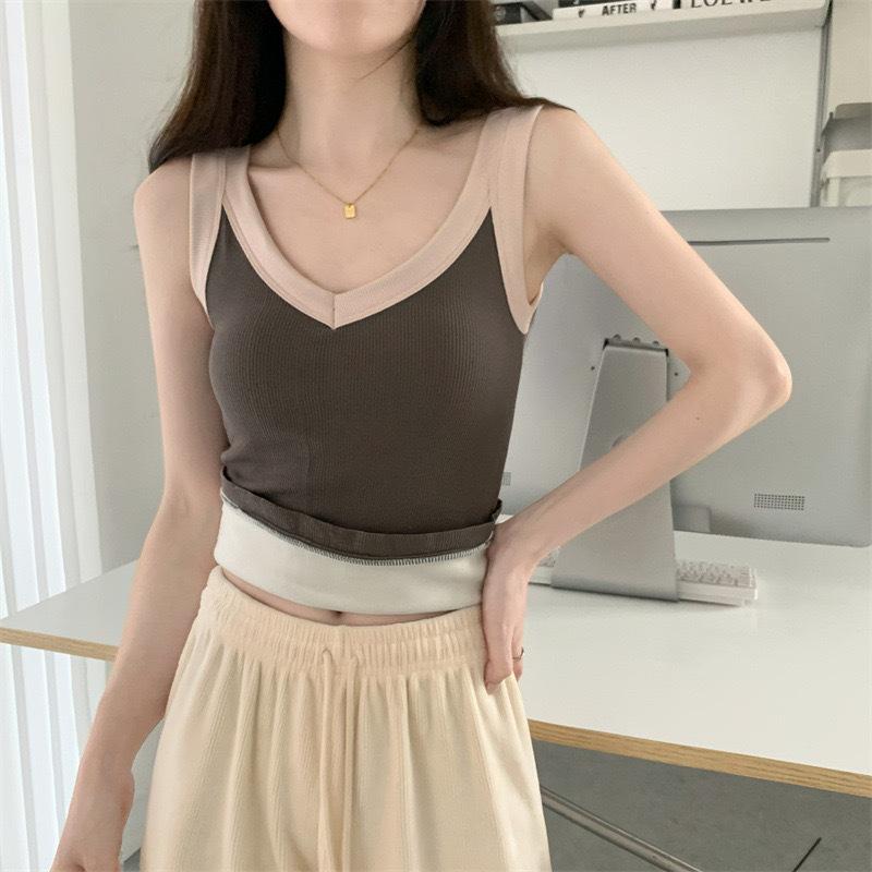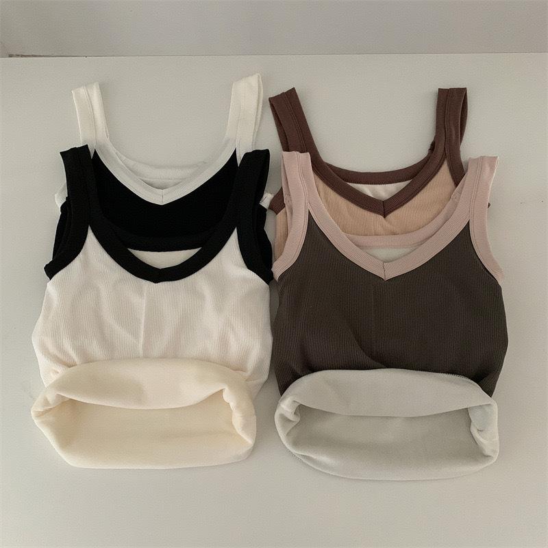 Chaleco térmico de color contrastante estilo coreano para mujer, otoño e invierno, con forro polar grueso para uso interior y exterior, ropa interior delgada para usar debajo