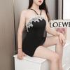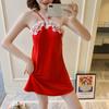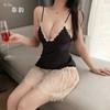 Falda Corta Pijama Nuevo para Mujer Verano Deseo Puro Sexy Camisón con Tirantes Halter Encaje Pechos Pequeños Estilo Caliente Delgado Moderno