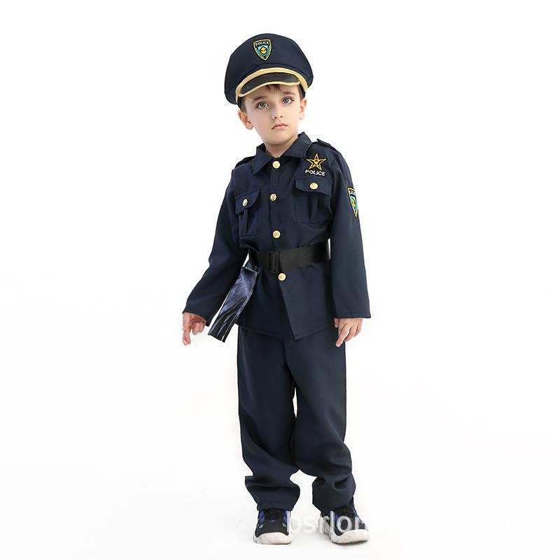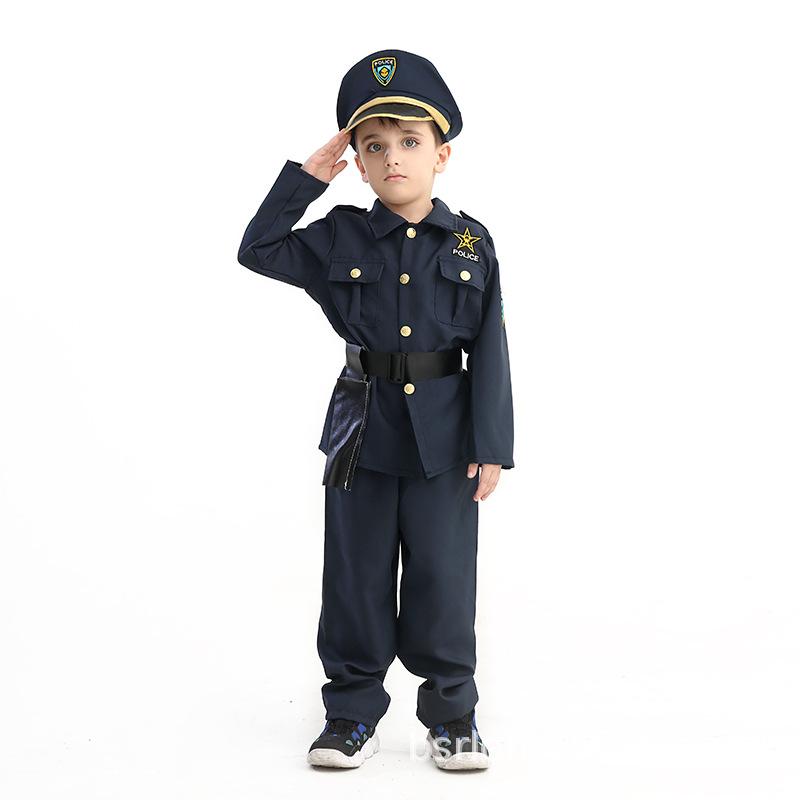 Disfraz de Halloween para niños, uniforme de policía con estrella de cinco puntas, traje de policía, traje de actuación, disfraz para niños