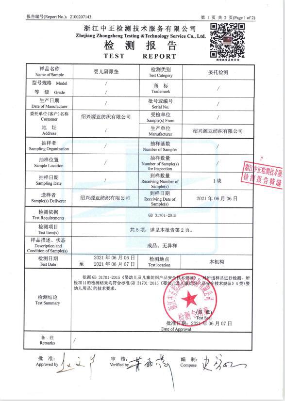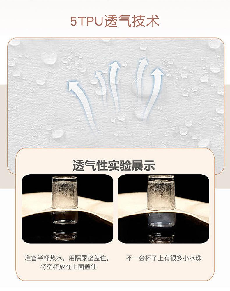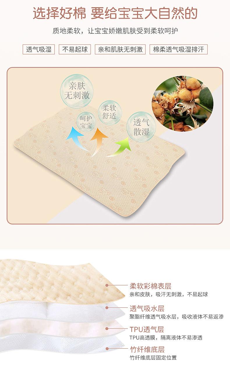Algodón de color + capa absorbente de fibra de poliéster + película de TPU + tela de rizo