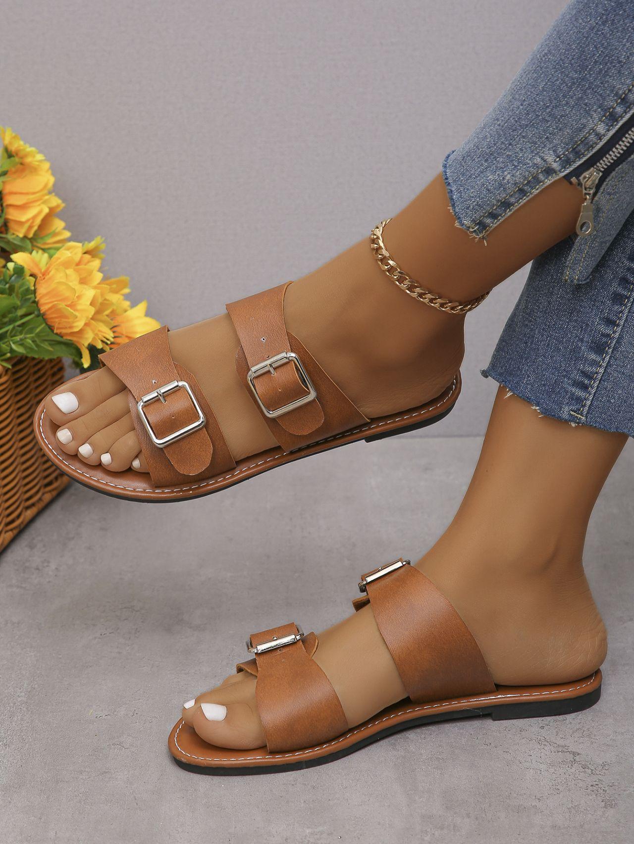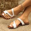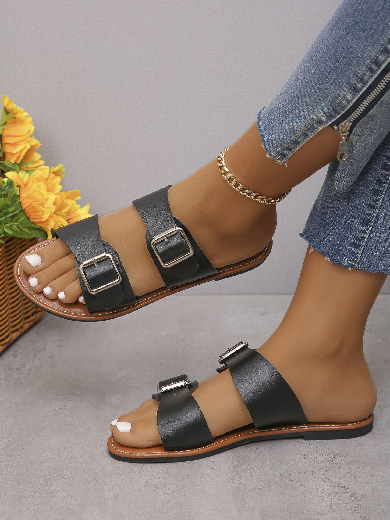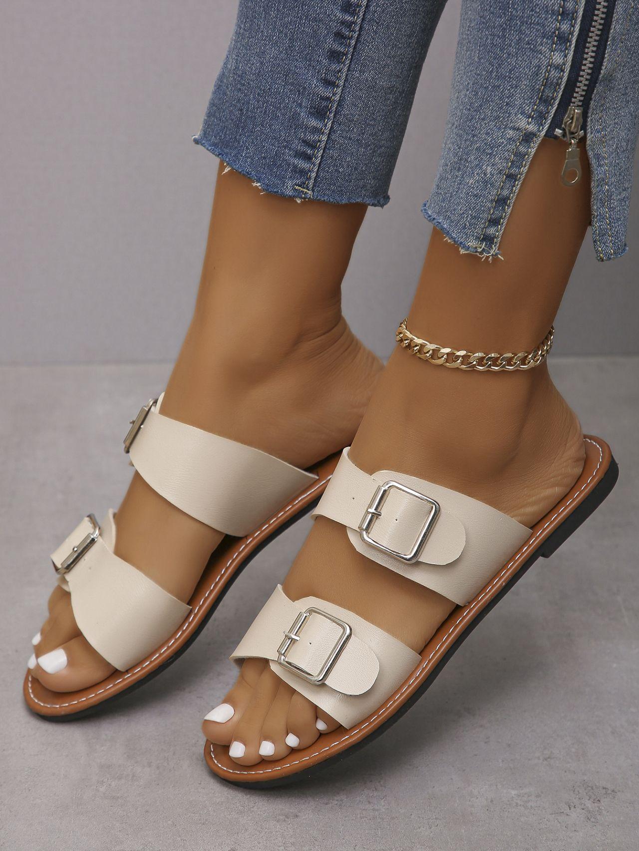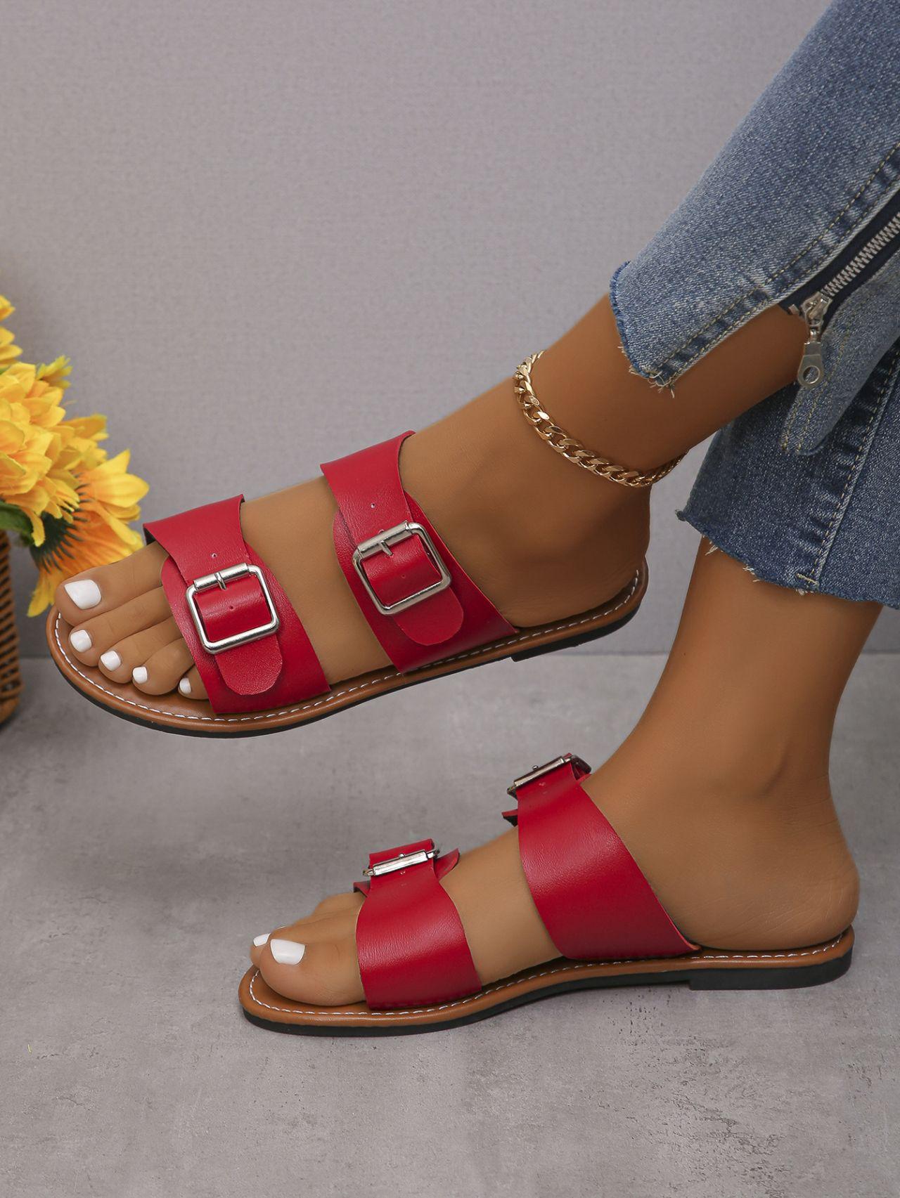 Pantuflas de Talla Grande para Comercio Exterior 2025 Verano Nuevo Pantuflas Europeas y Americanas Hebilla de Cinturón Doble de una Palabra Pantuflas de Mujer Planas Casuales