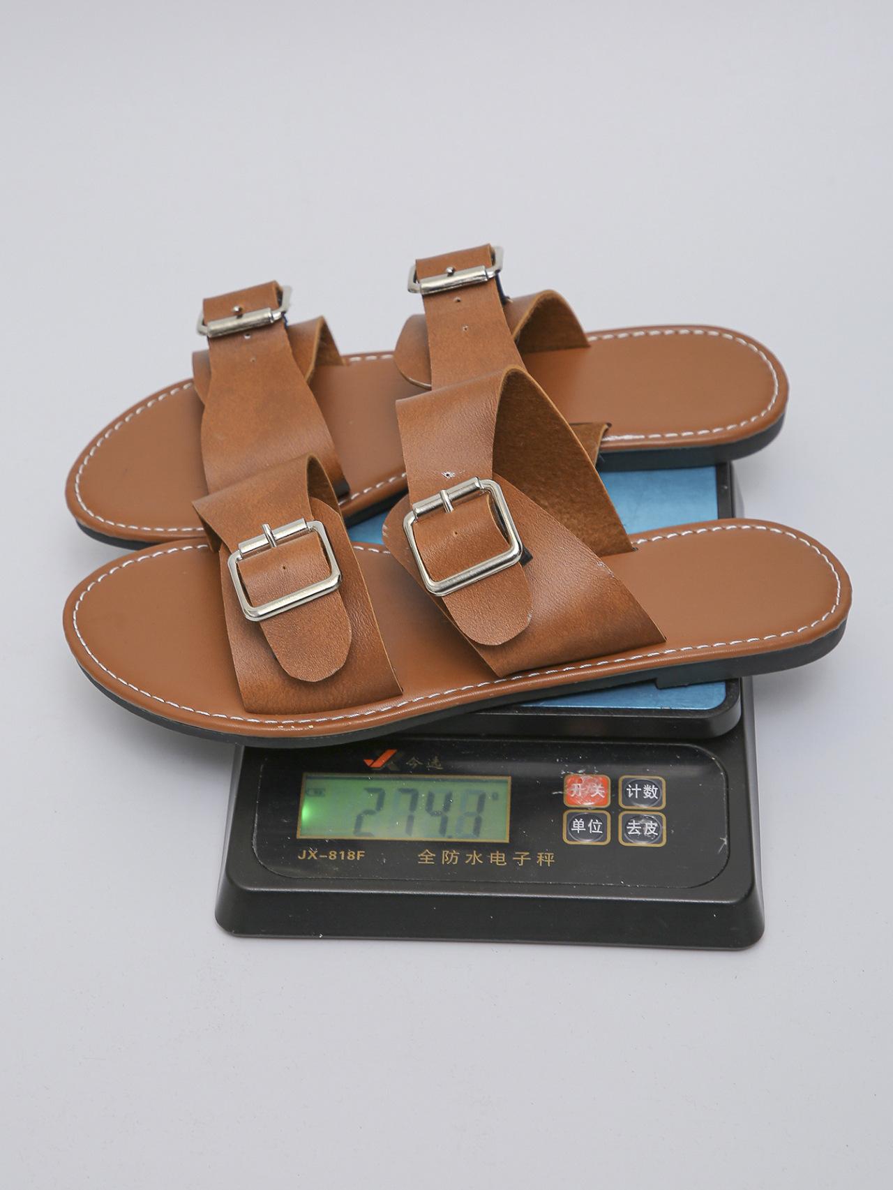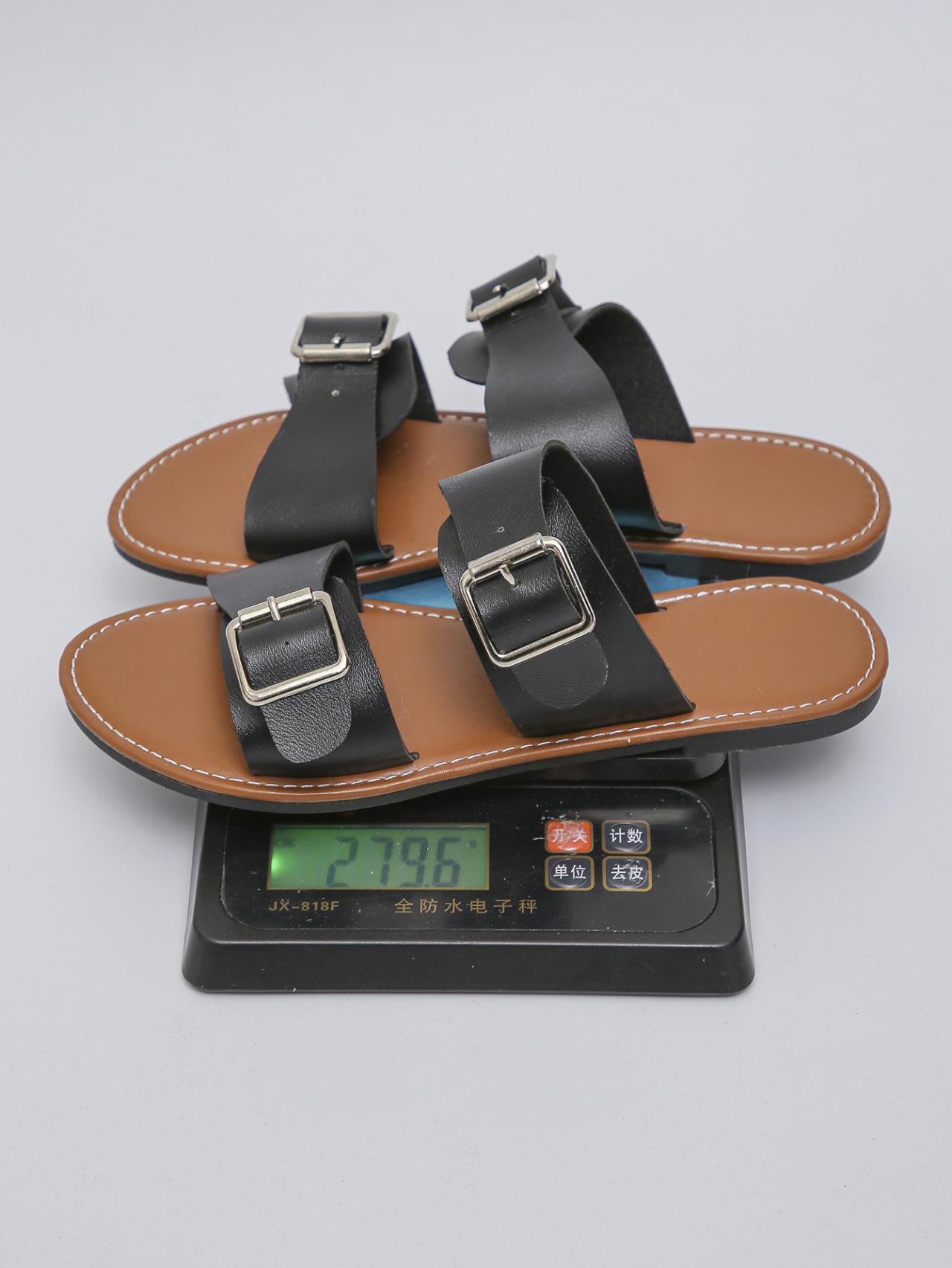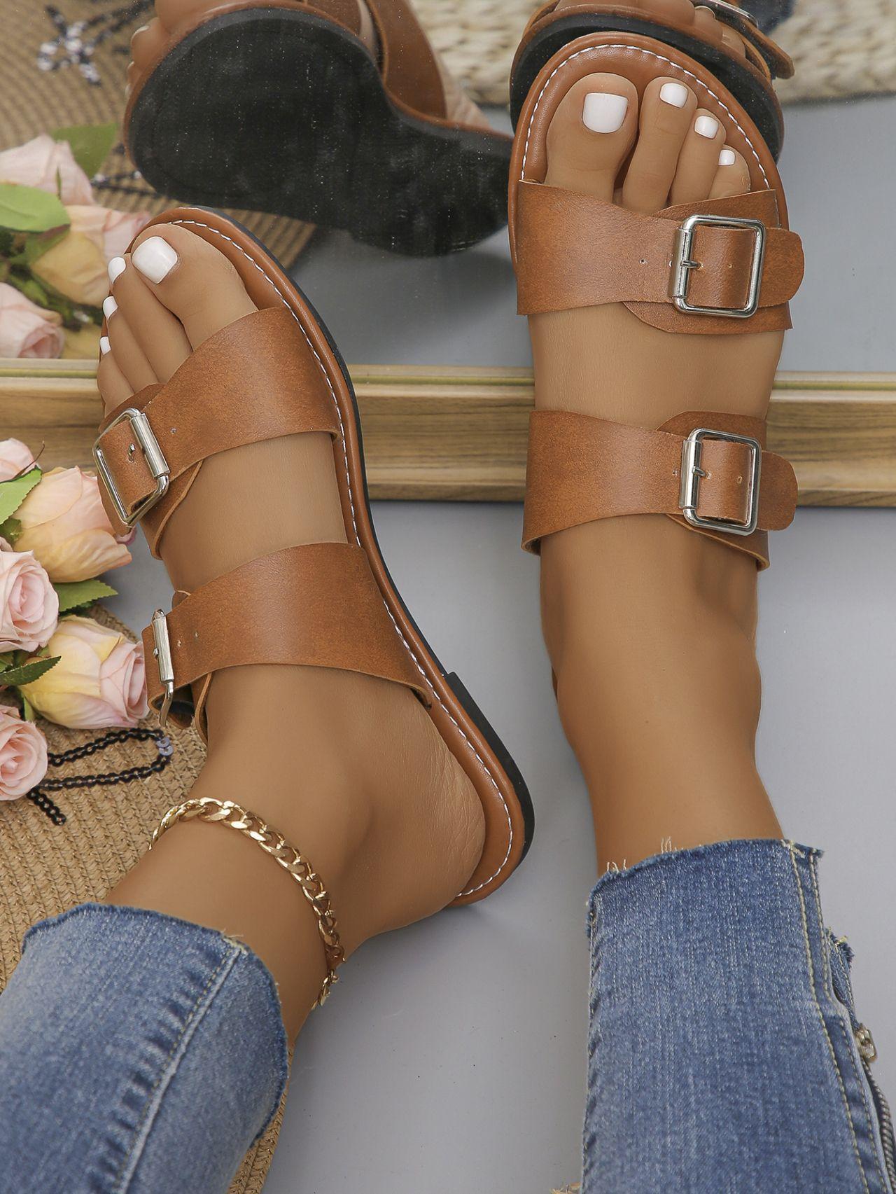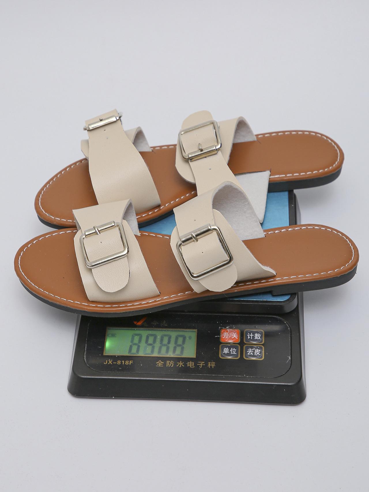 Pantuflas de Talla Grande para Comercio Exterior 2025 Verano Nuevo Pantuflas Europeas y Americanas Hebilla de Cinturón Doble de una Palabra Pantuflas de Mujer Planas Casuales