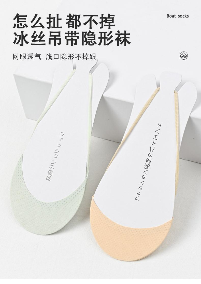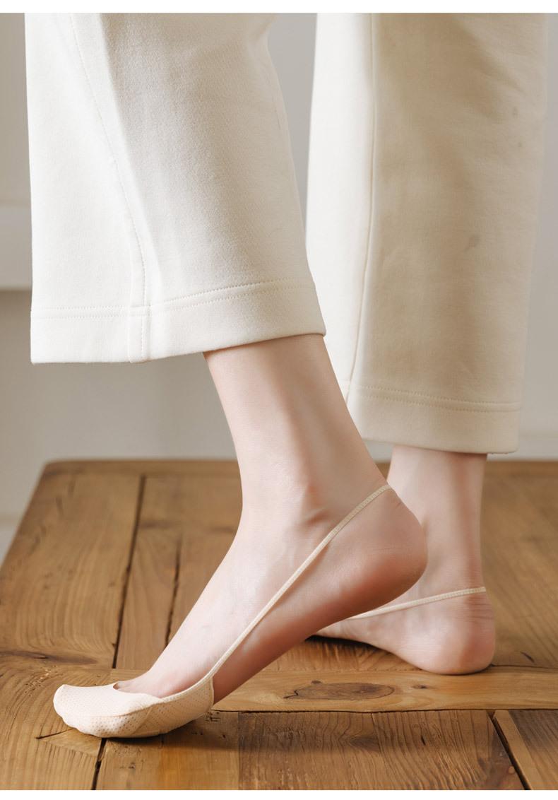 Calcetines de seda de hielo de verano para mujer, de boca poco profunda, finos, con media palma y almohadilla de algodón, con tiras y tacones altos.
