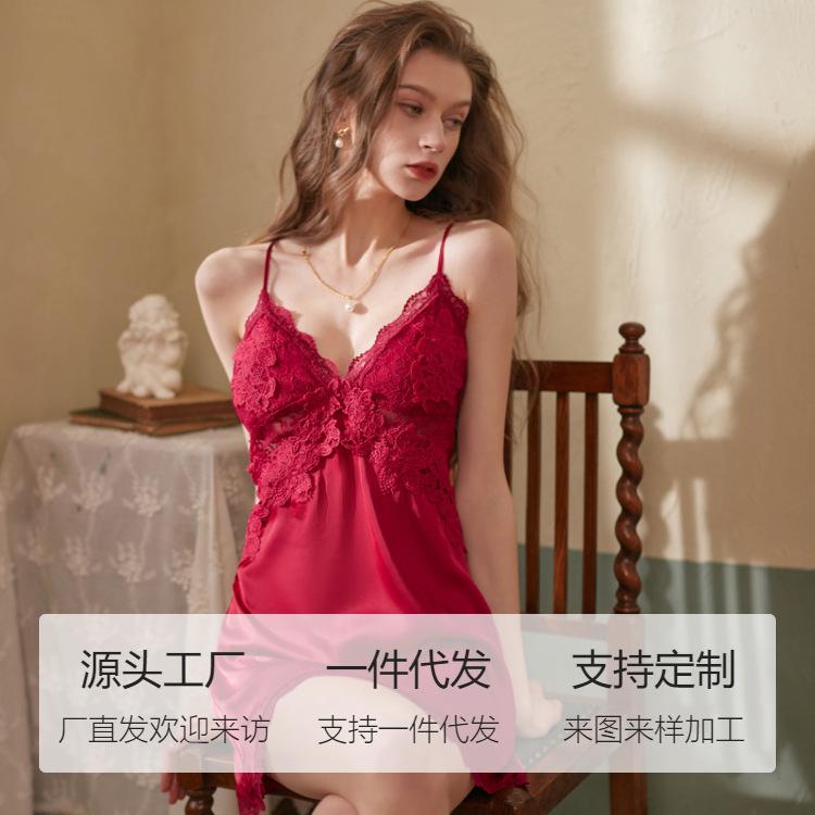 Camisón de tirantes para mujer, ropa de verano para el hogar, nueva, con almohadilla para el pecho, seda de hielo, fina, pura, de alta gama, pijama sexy