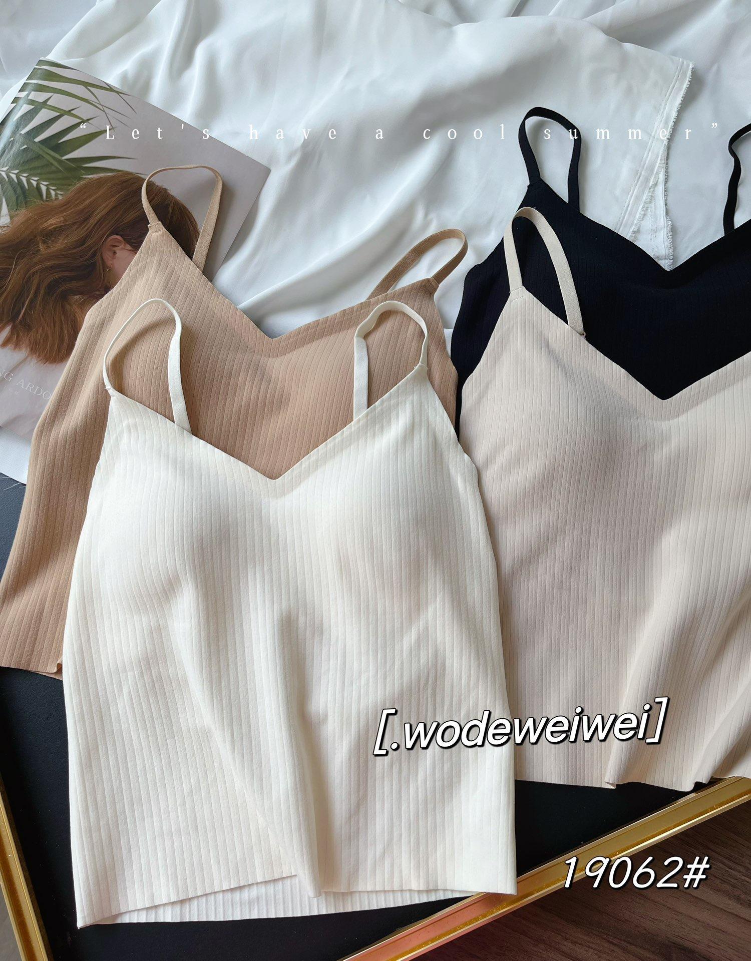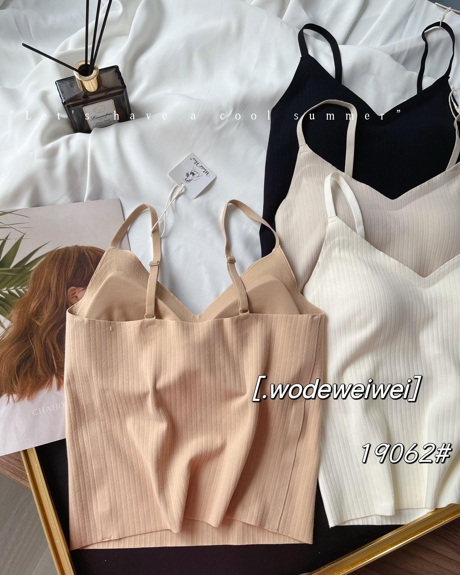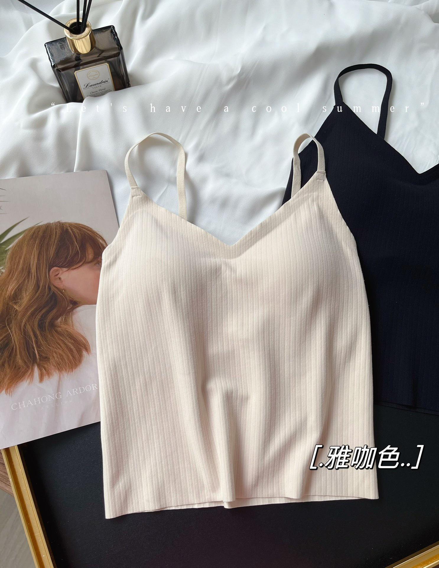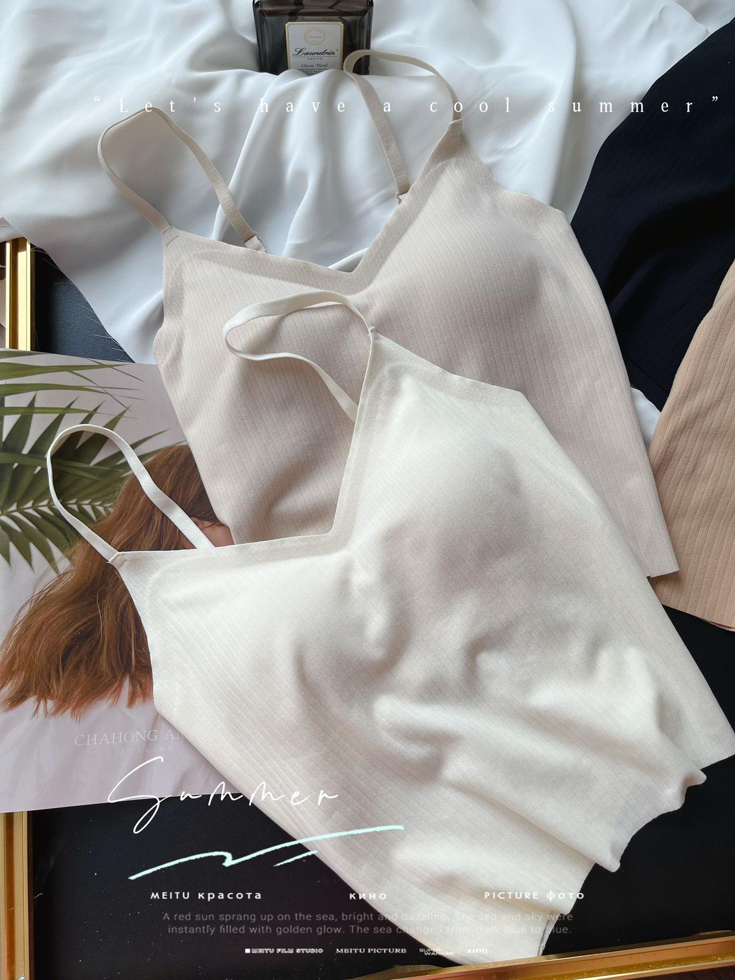 Sujetador sexy de cuello en V sin costuras y versátil con copa fija integrada, camisola cepillada cálida y agradable para la piel para mujer