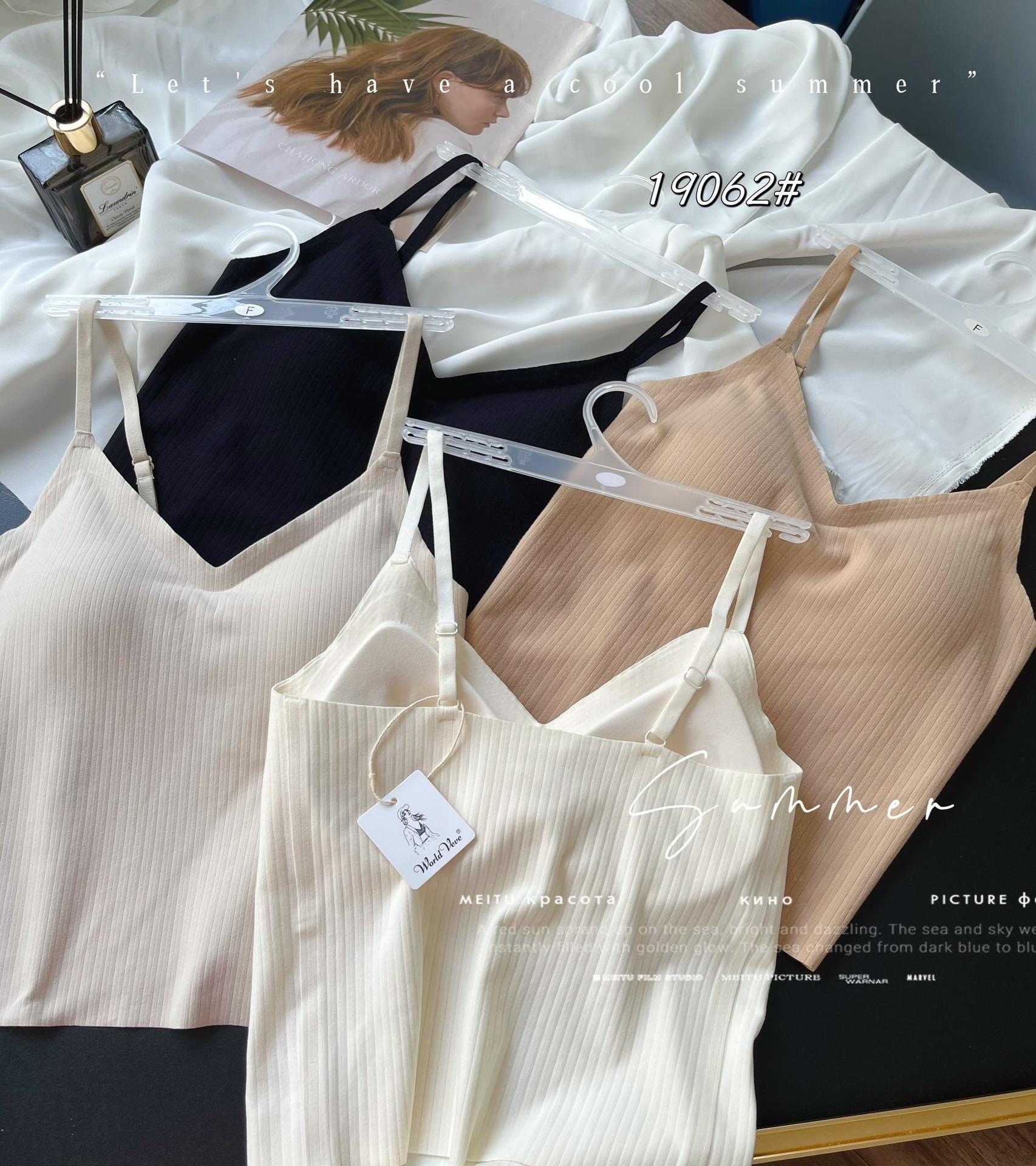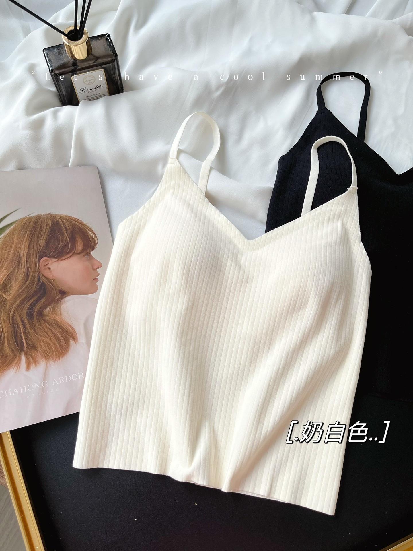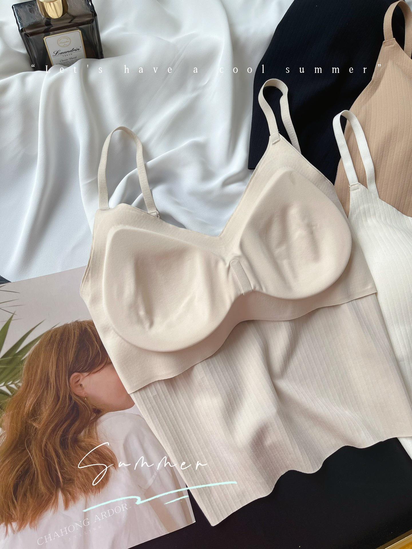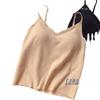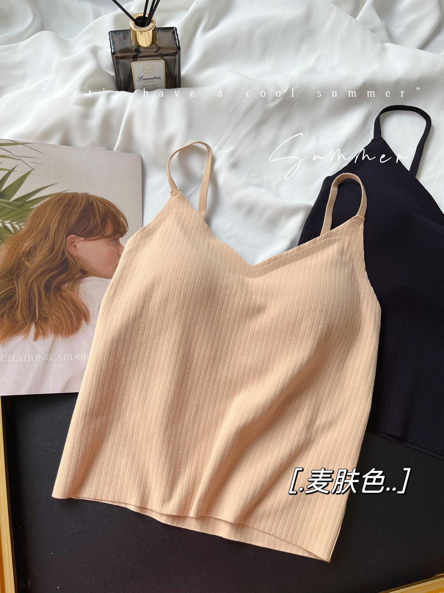 Sujetador sexy de cuello en V sin costuras y versátil con copa fija integrada, camisola cepillada cálida y agradable para la piel para mujer
