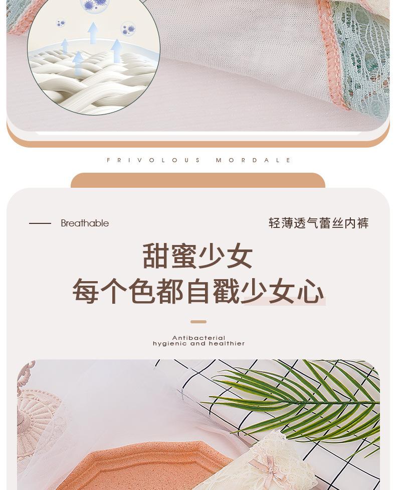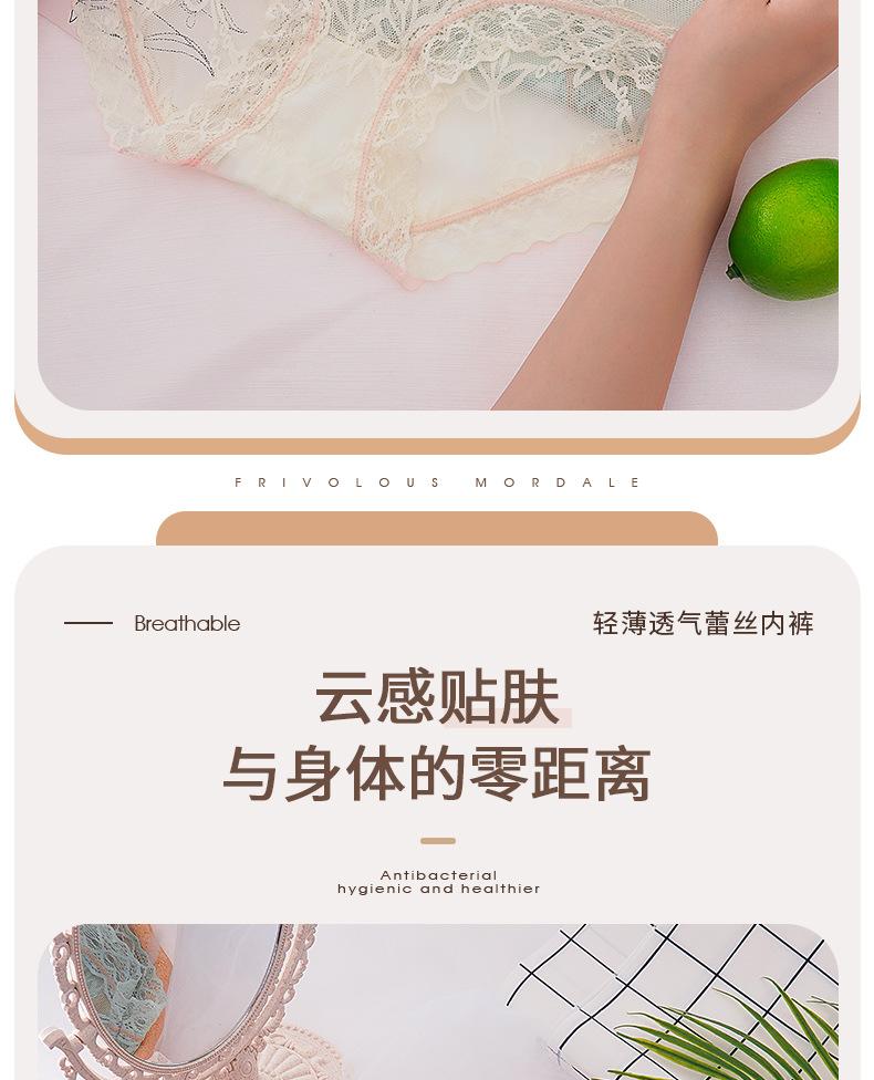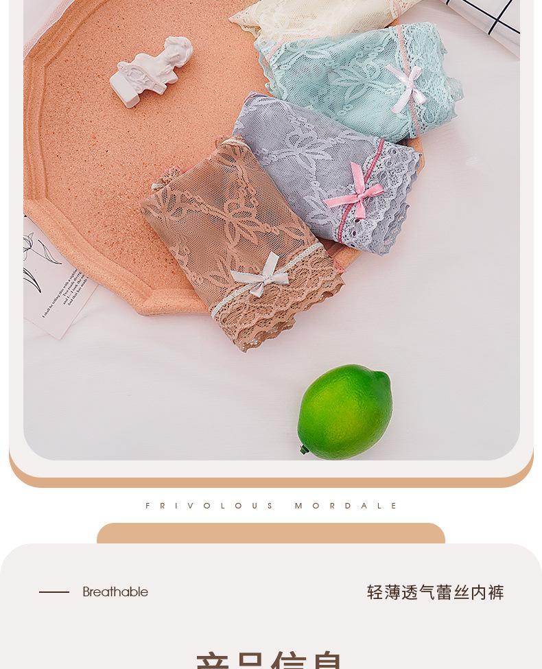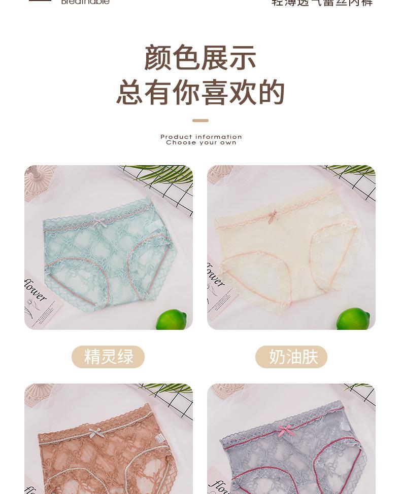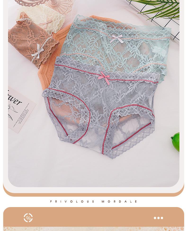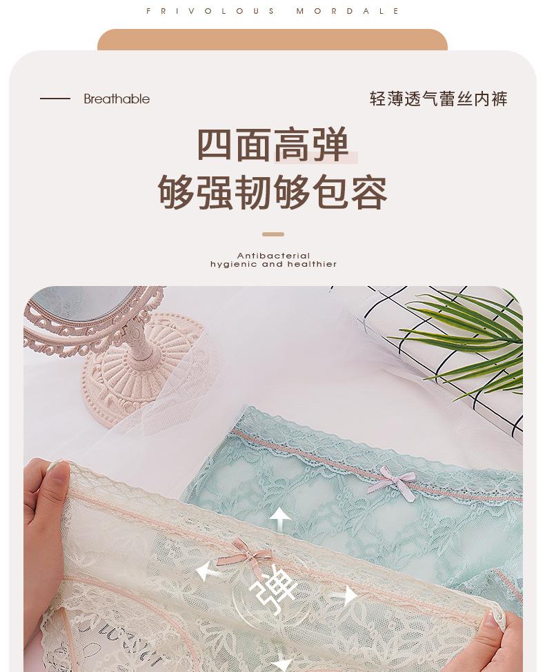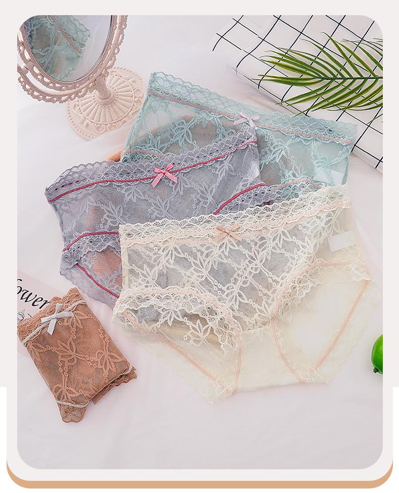 Ropa interior de encaje francés para mujer de cintura media con lazo, calzones lindos de algodón puro antibacteriano en la entrepierna, briefs sexis transpirables