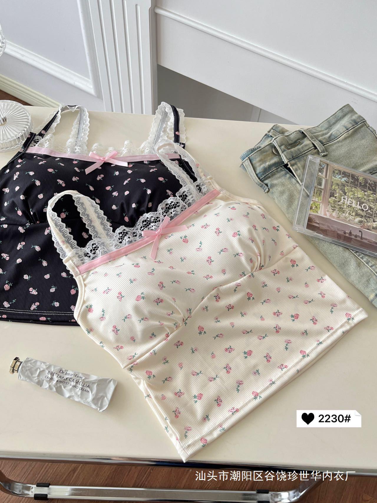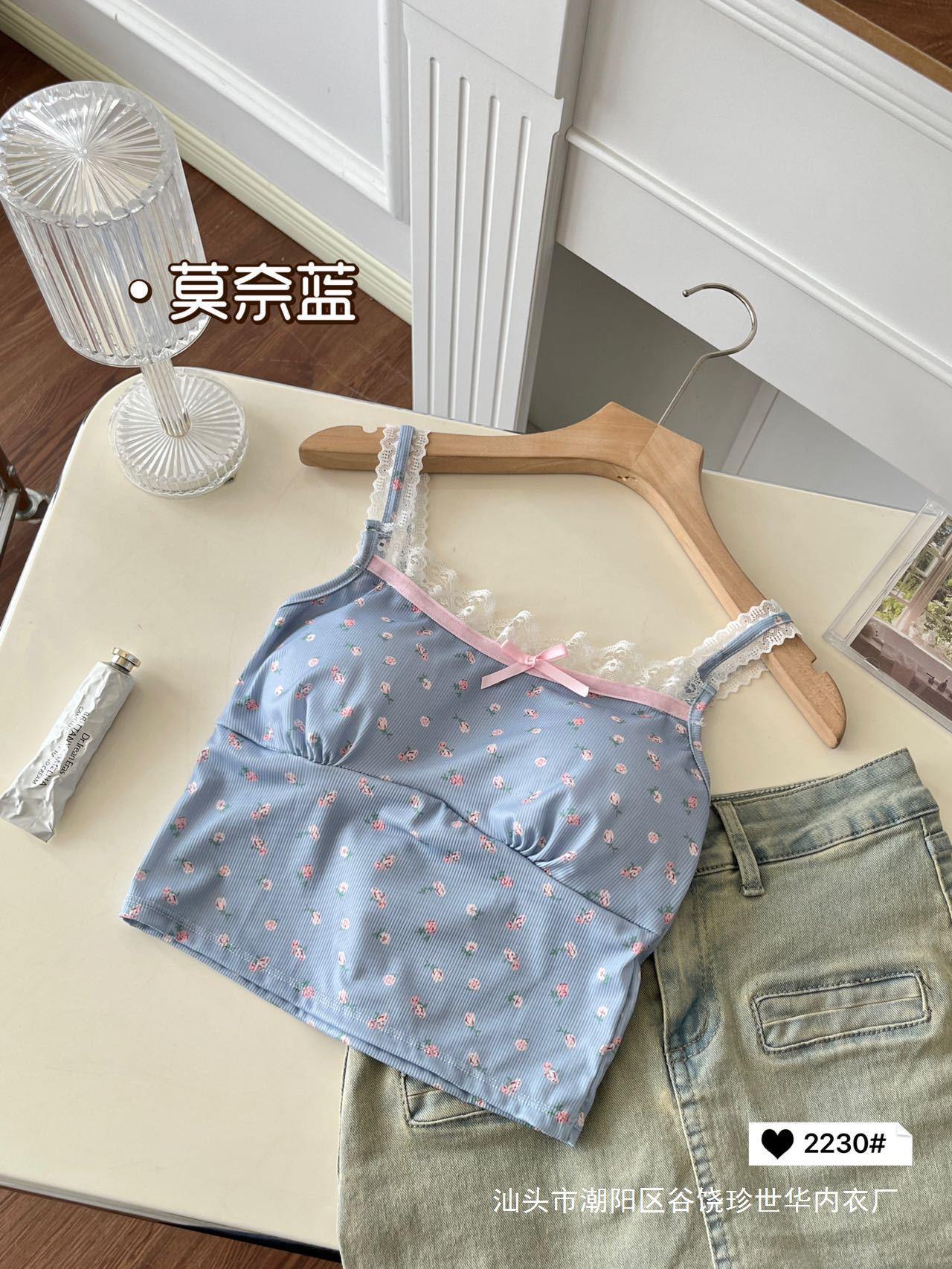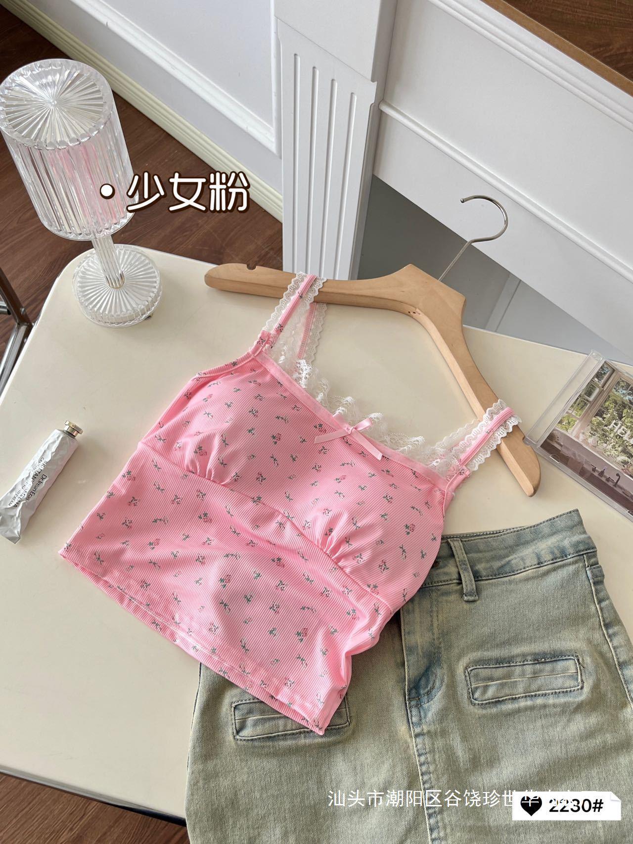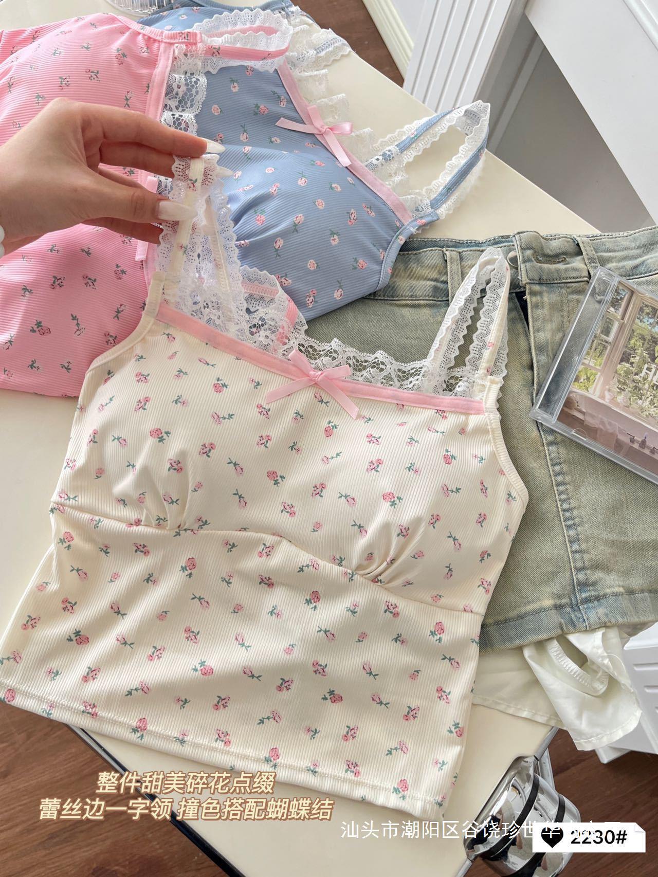 Deseo Puro Lazo Dulce Camisola Floral Pequeña de Encaje para Verano de Mujer Encaje Sexy Adelgazante Corto Top Exterior