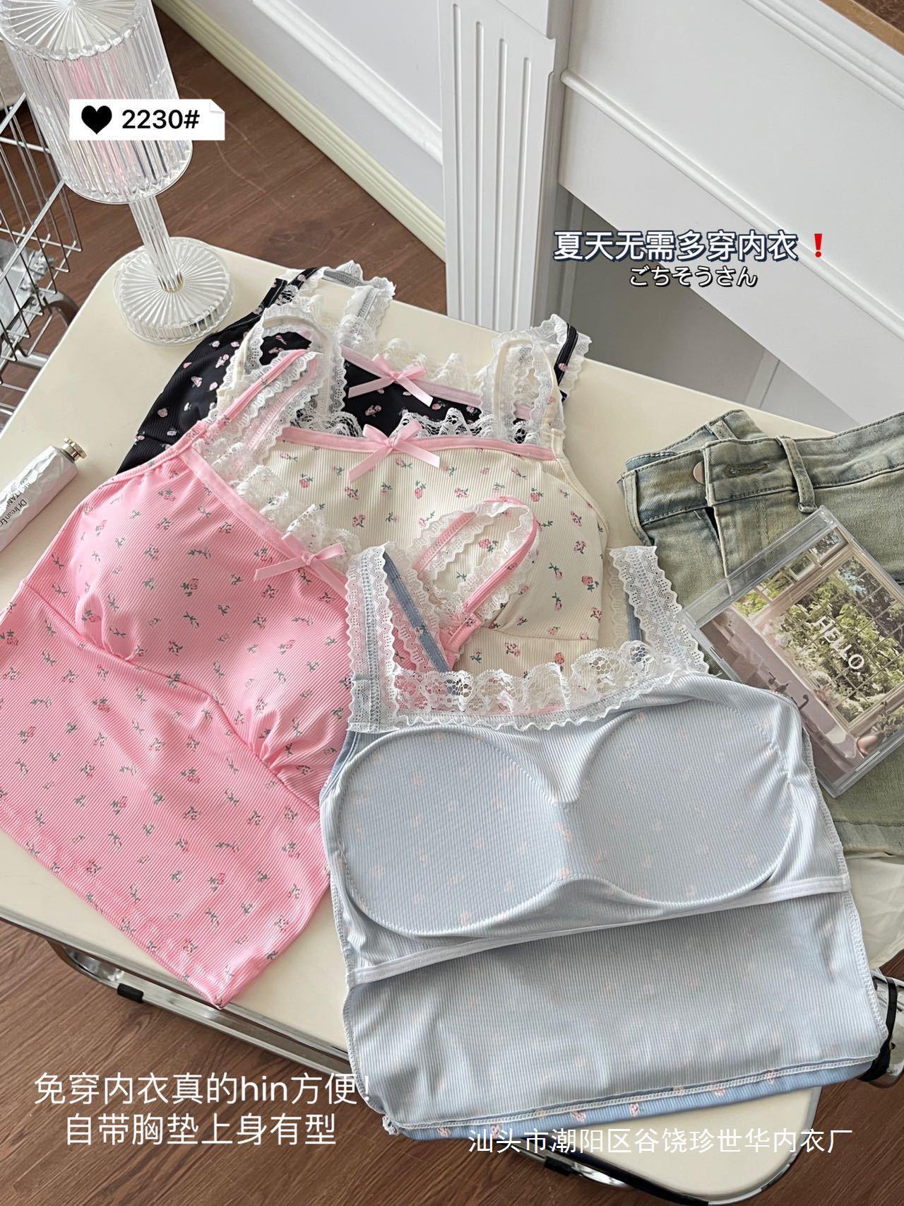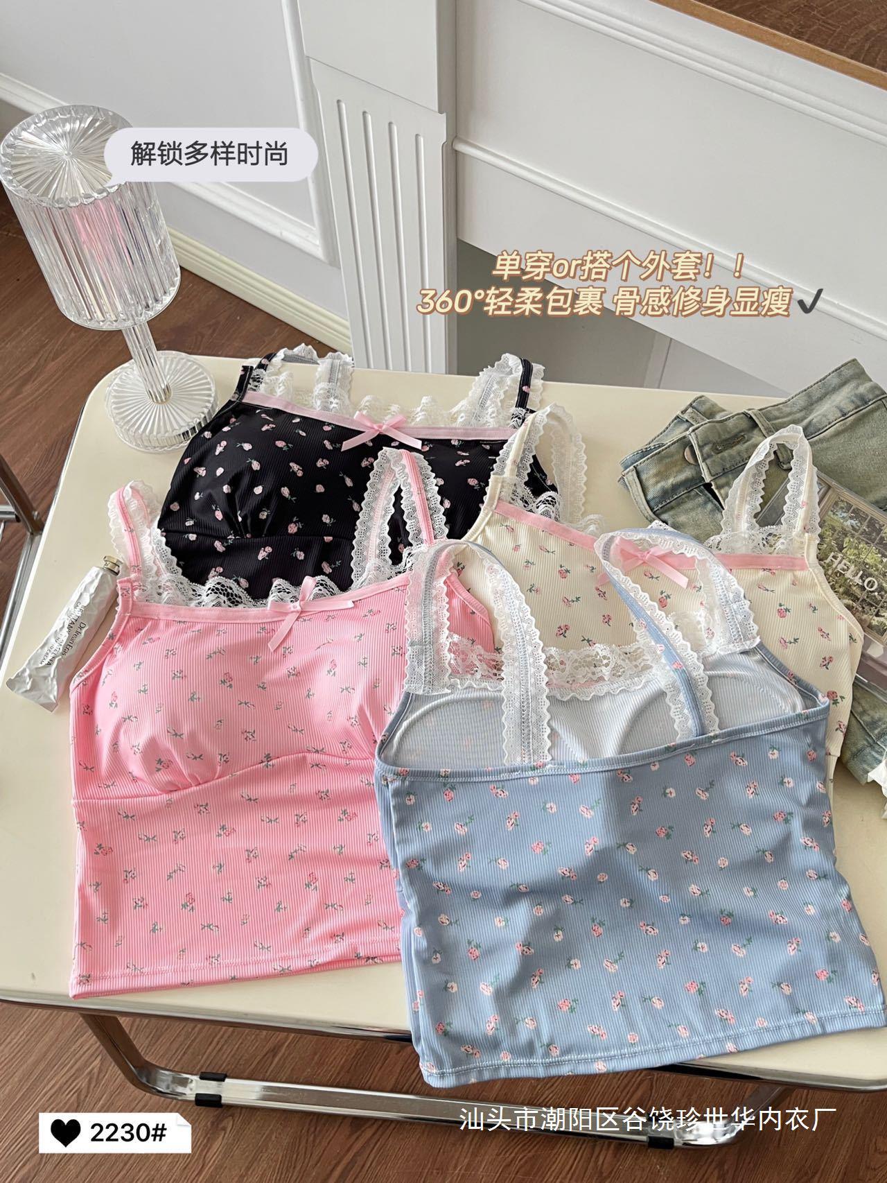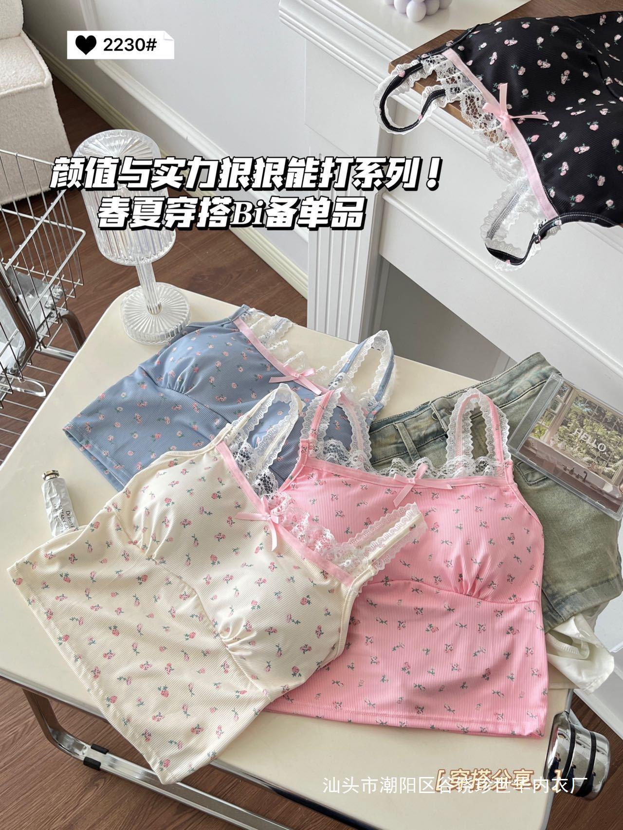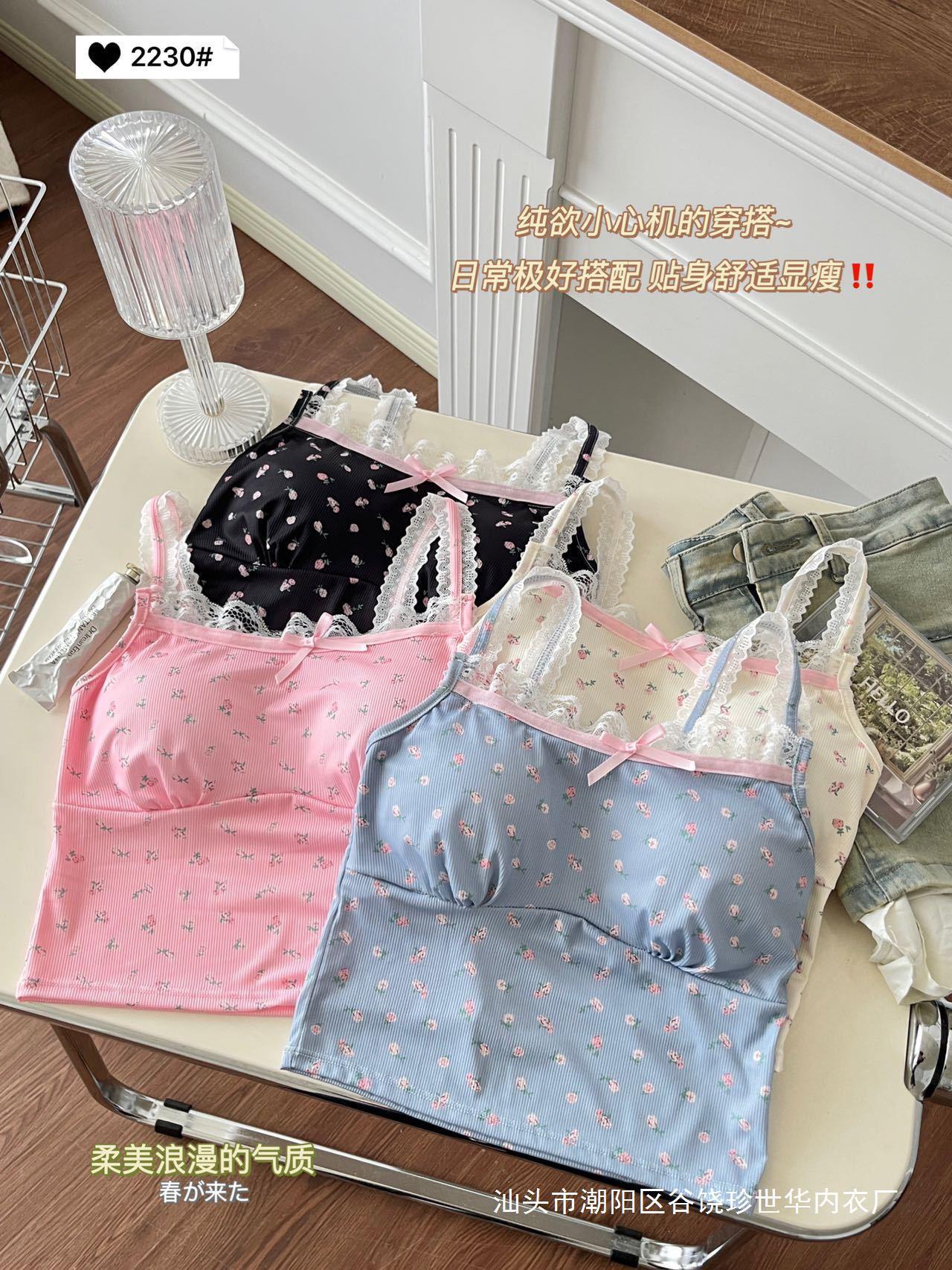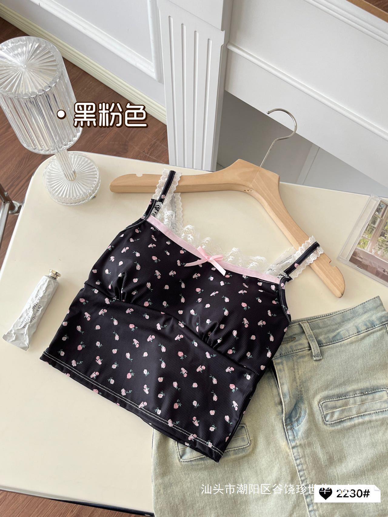 Deseo Puro Lazo Dulce Camisola Floral Pequeña de Encaje para Verano de Mujer Encaje Sexy Adelgazante Corto Top Exterior