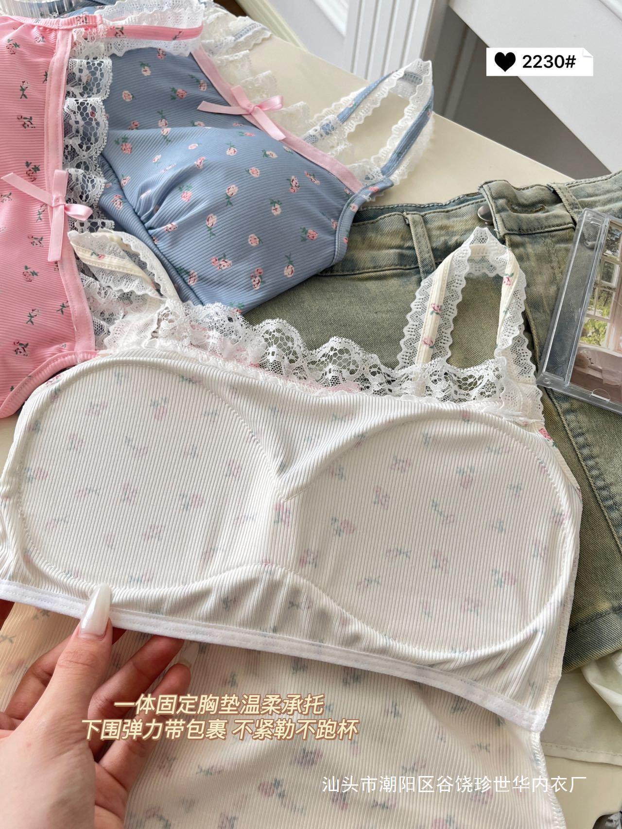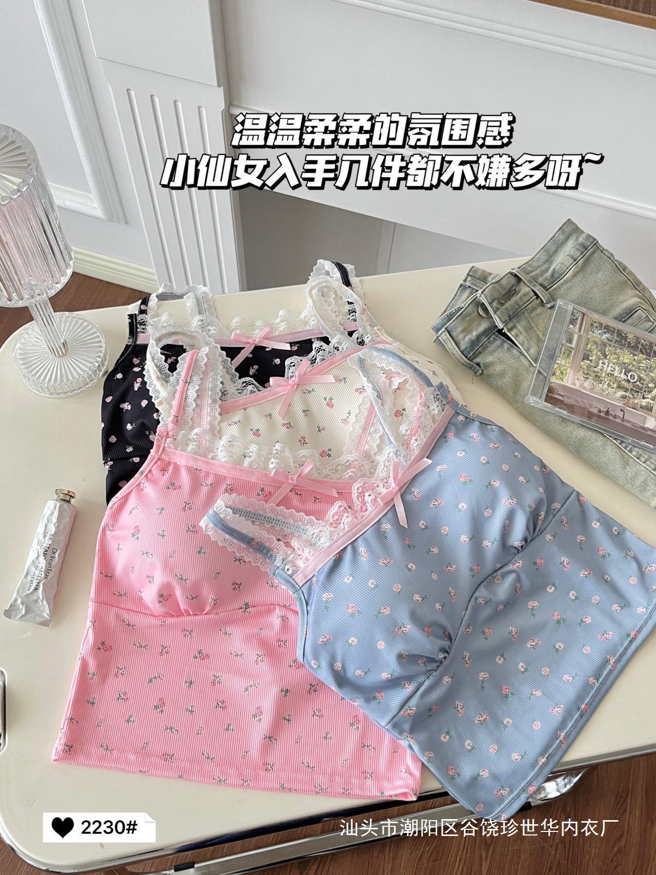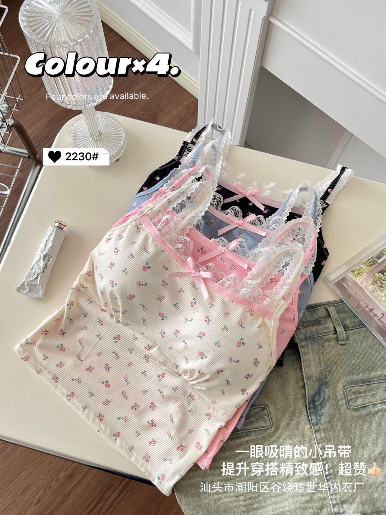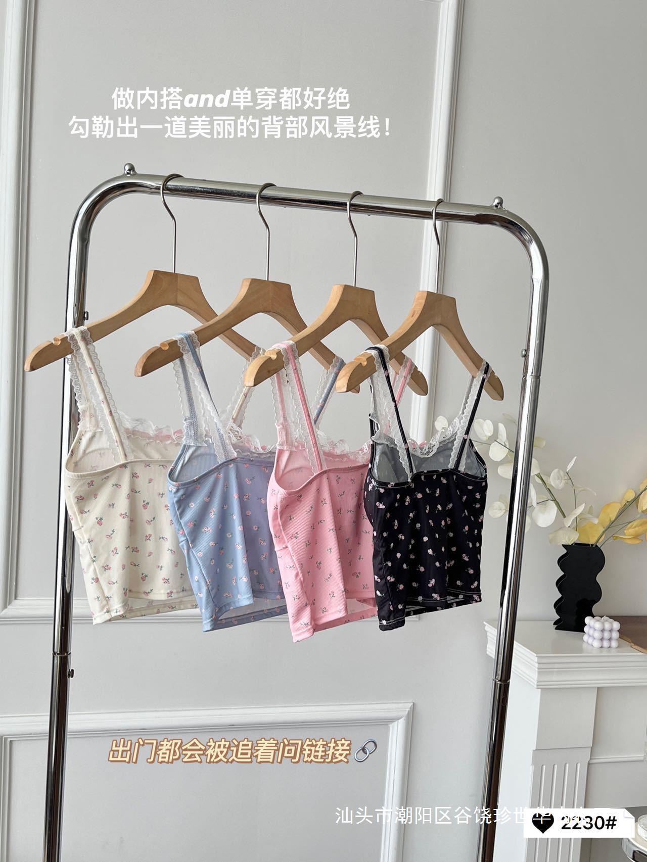 Deseo Puro Lazo Dulce Camisola Floral Pequeña de Encaje para Verano de Mujer Encaje Sexy Adelgazante Corto Top Exterior
