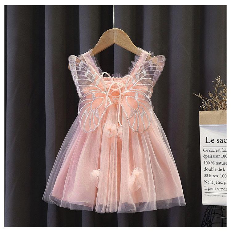Vestido de Verano para Niñas vestido 2025 Nuevo Vestido de Princesa Ángel de Malla Vestido de Cumpleaños para Niños Vestido Puff para Bebé