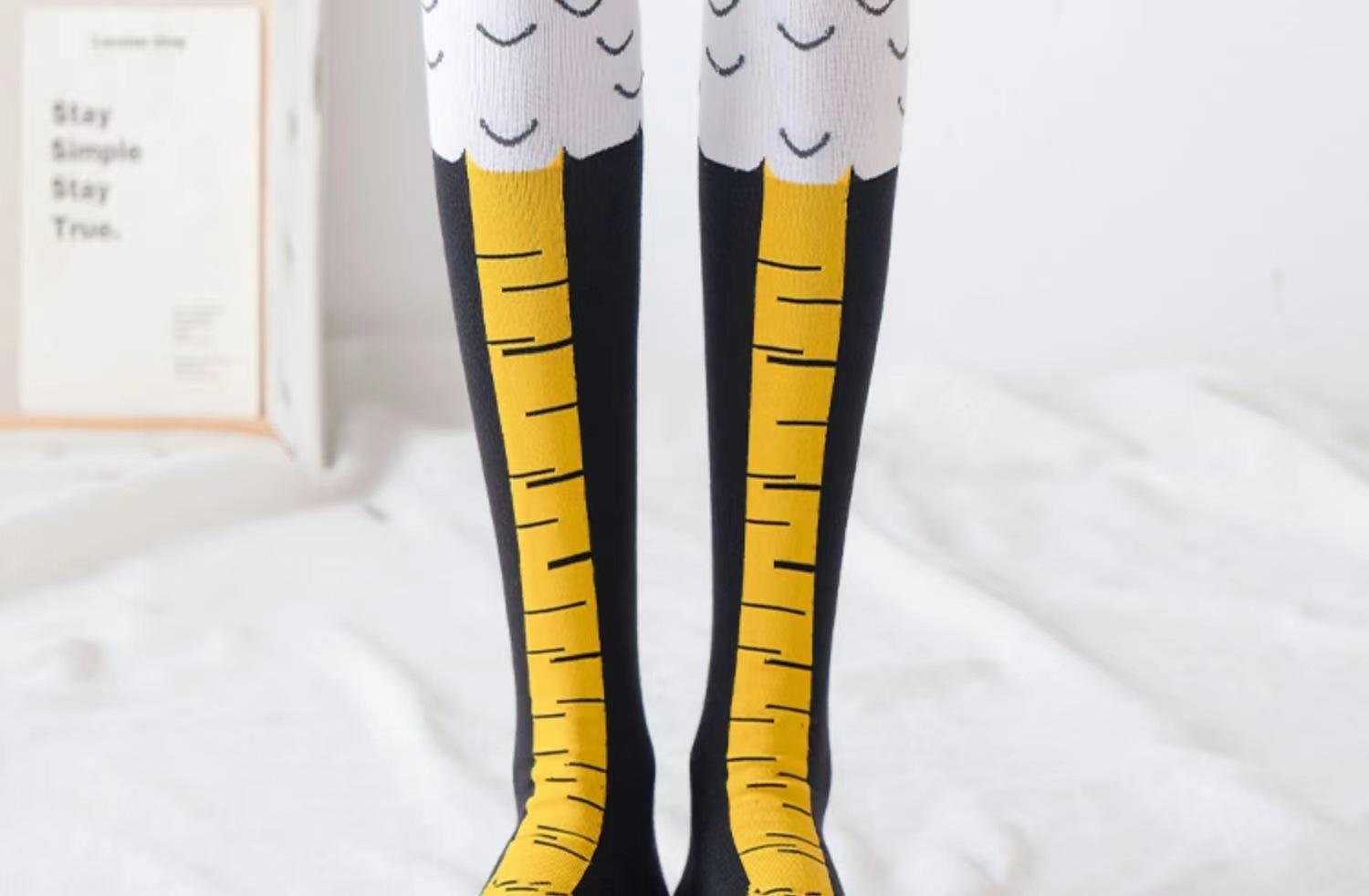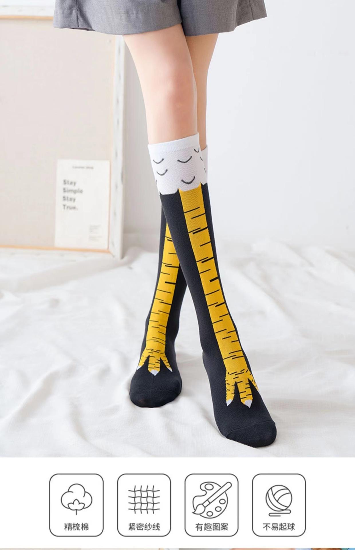 [rojo de internet] calcetines de patas de pollo para mujer calcetines interesantes hasta la rodilla patrón de avestruz rodilla pantorrilla otoño e invierno divertidos patas de pollo mayoreo