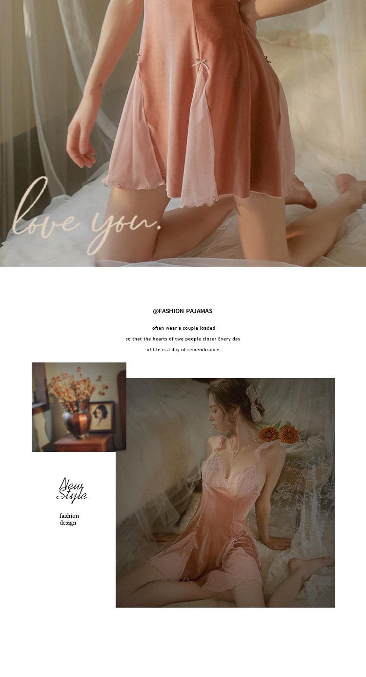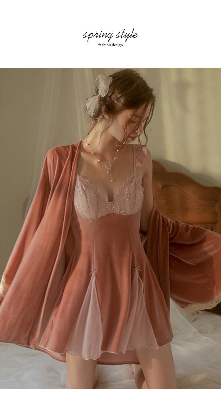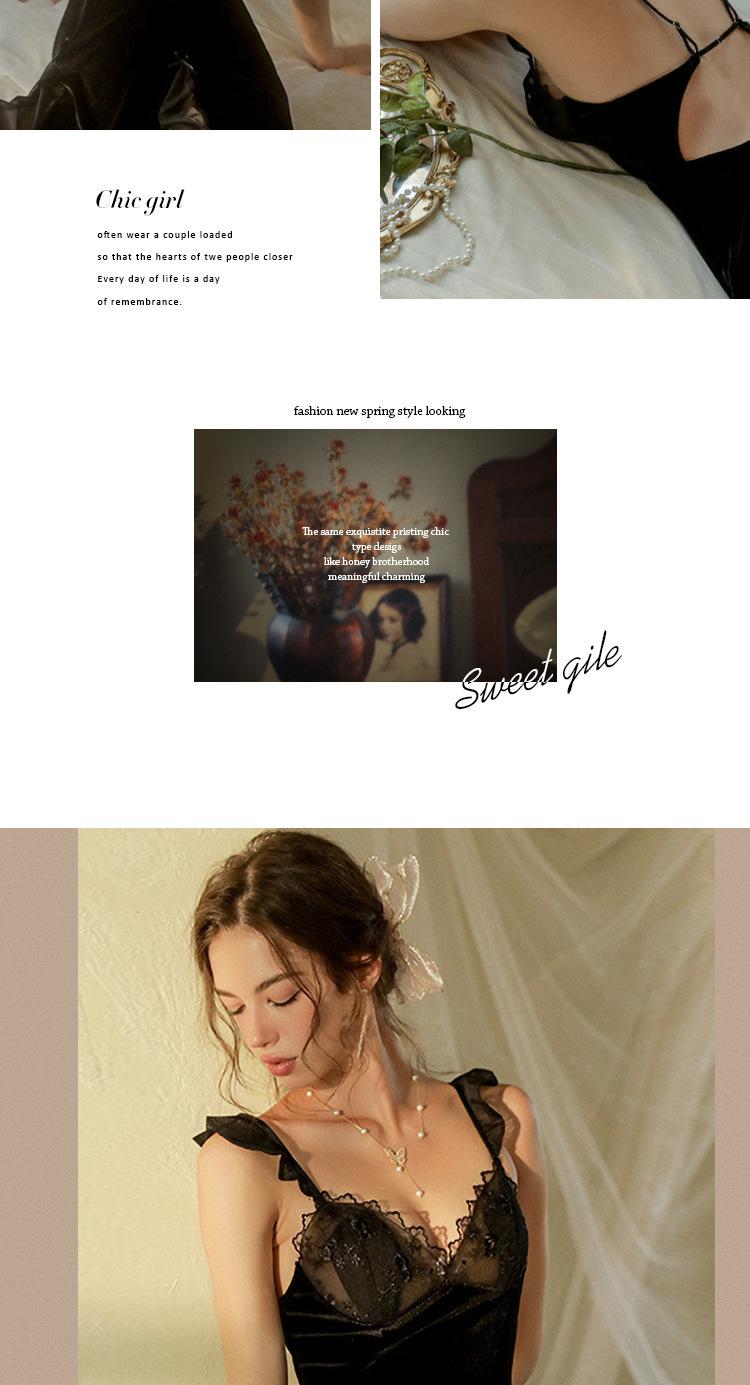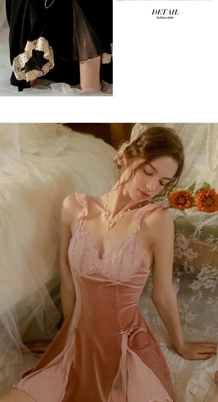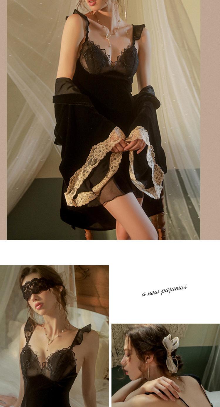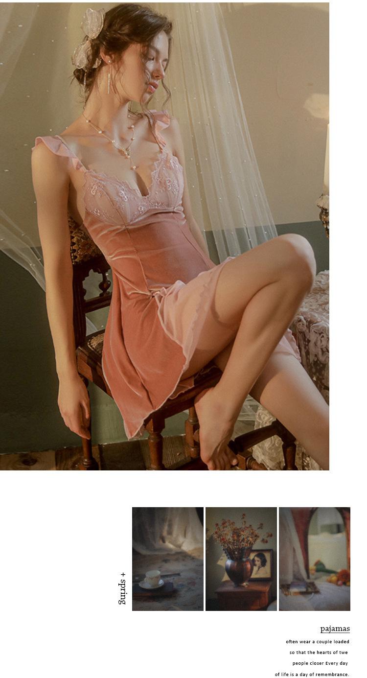 Pijama Sexy de Terciopelo Sense de Alta Gama para Mujer Otoño e Invierno Deseo Puro Camisón con Tirantes Camisón Ropa de Casa para Traje