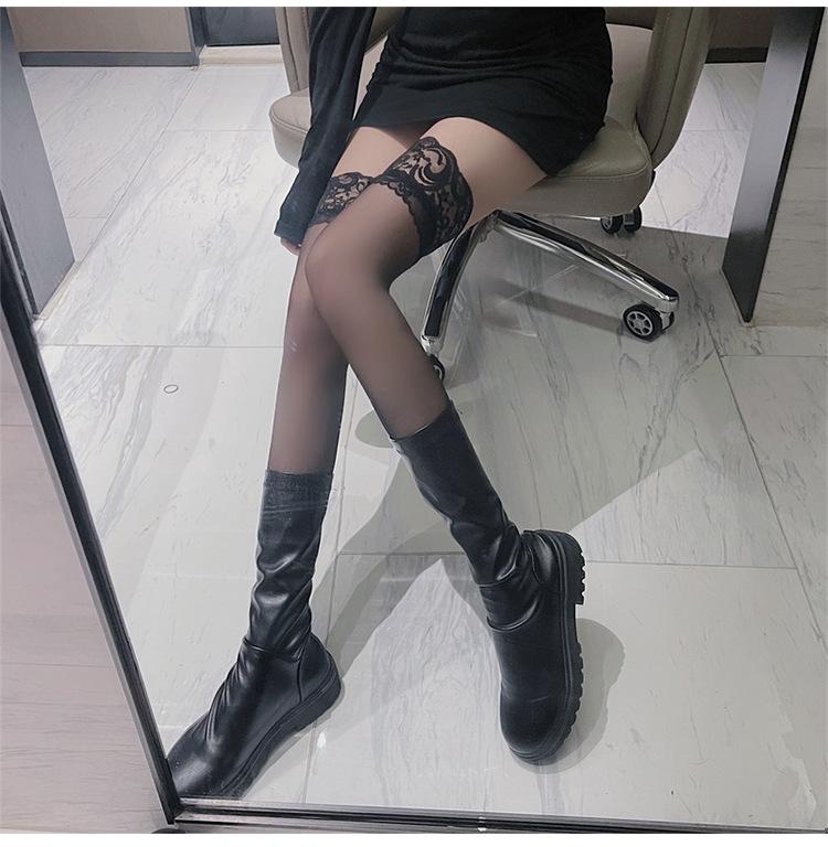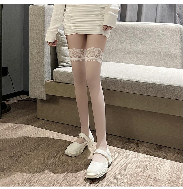 Medias hasta el muslo con borde de encaje para mujer, Medias negras sexys ultradelgadas hasta el muslo, Medias largas blancas, Medias negras de deseo puro para club nocturno